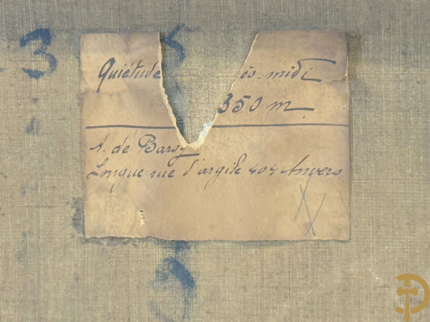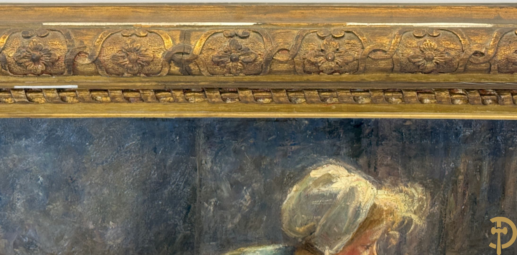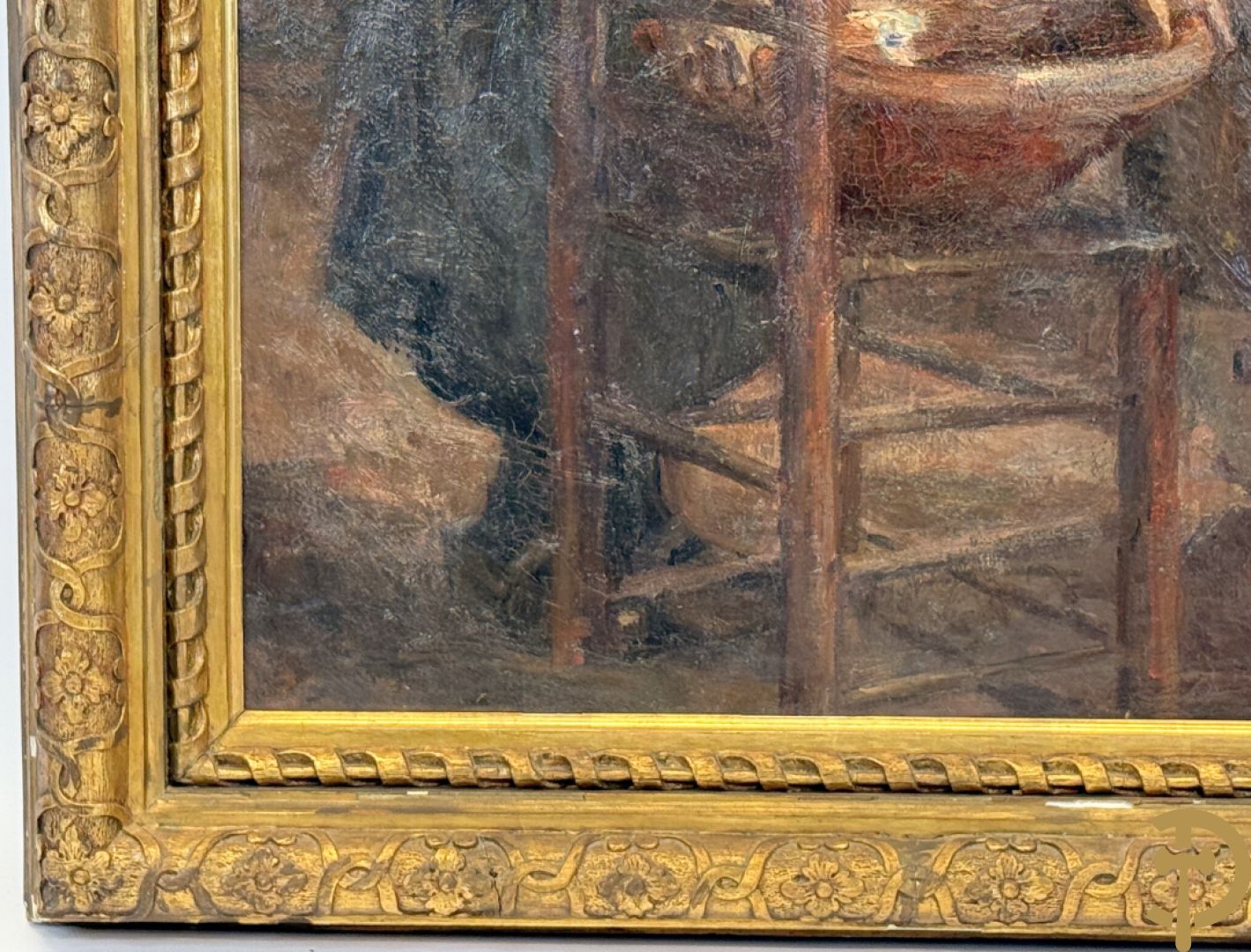 LOT 339 - DE BARSY A. getekend (Anna) 1878-1949 'Geanimeerde interieurscène met jonge moeder en kind in de wieg' olie op doek