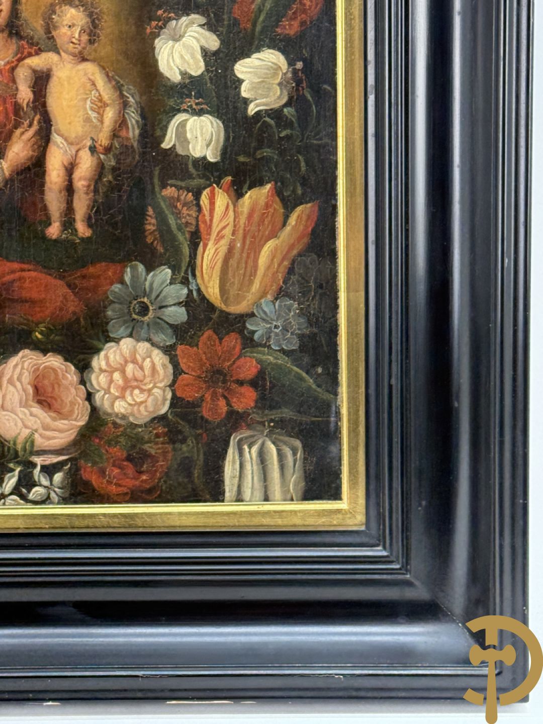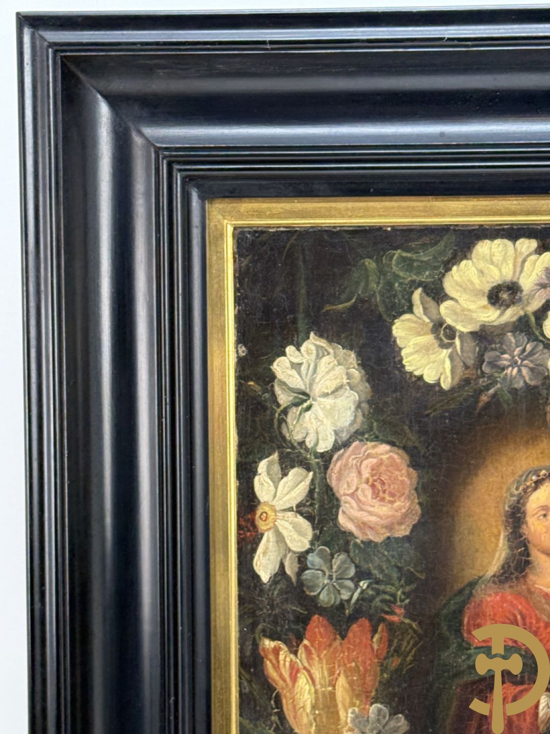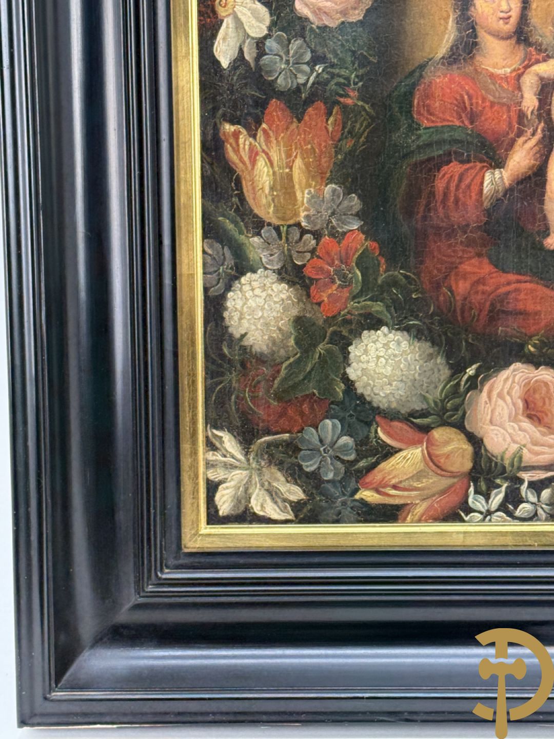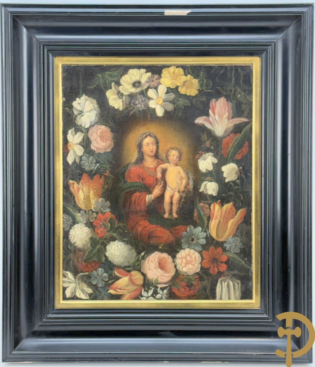 Ongetekend 'Madonna met kind omgeven door bloemenkrans' olie op doek