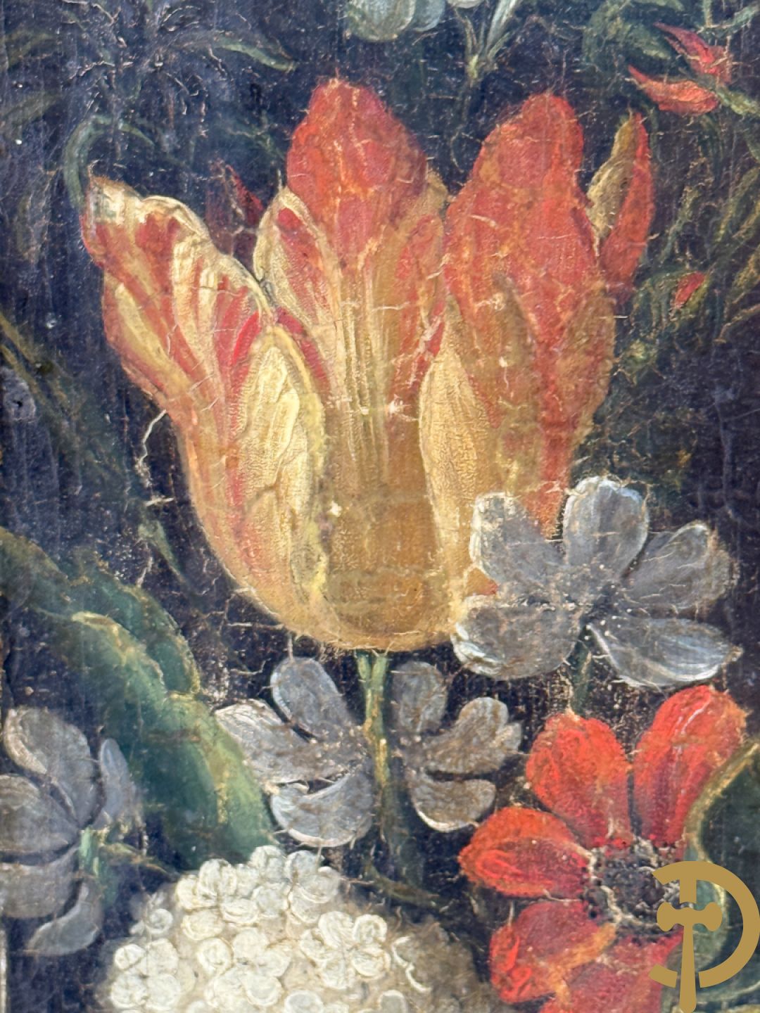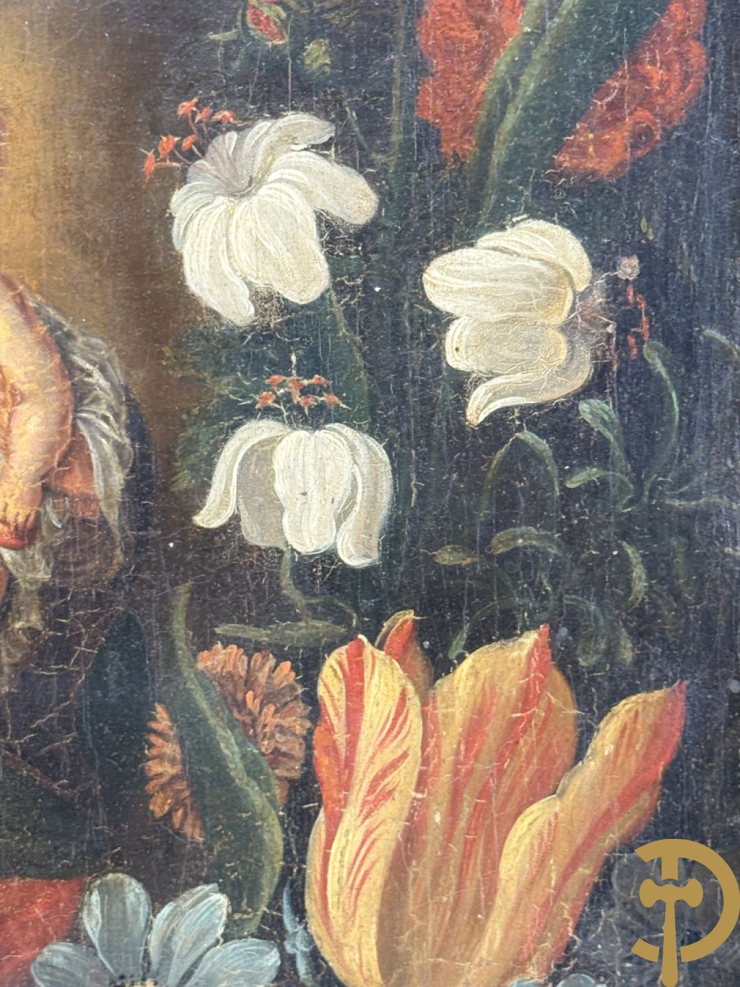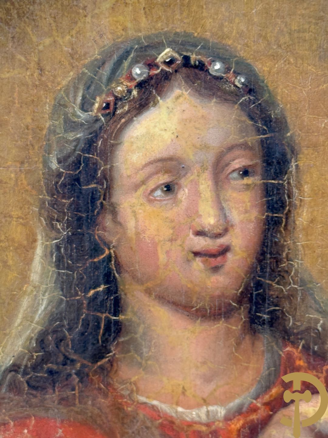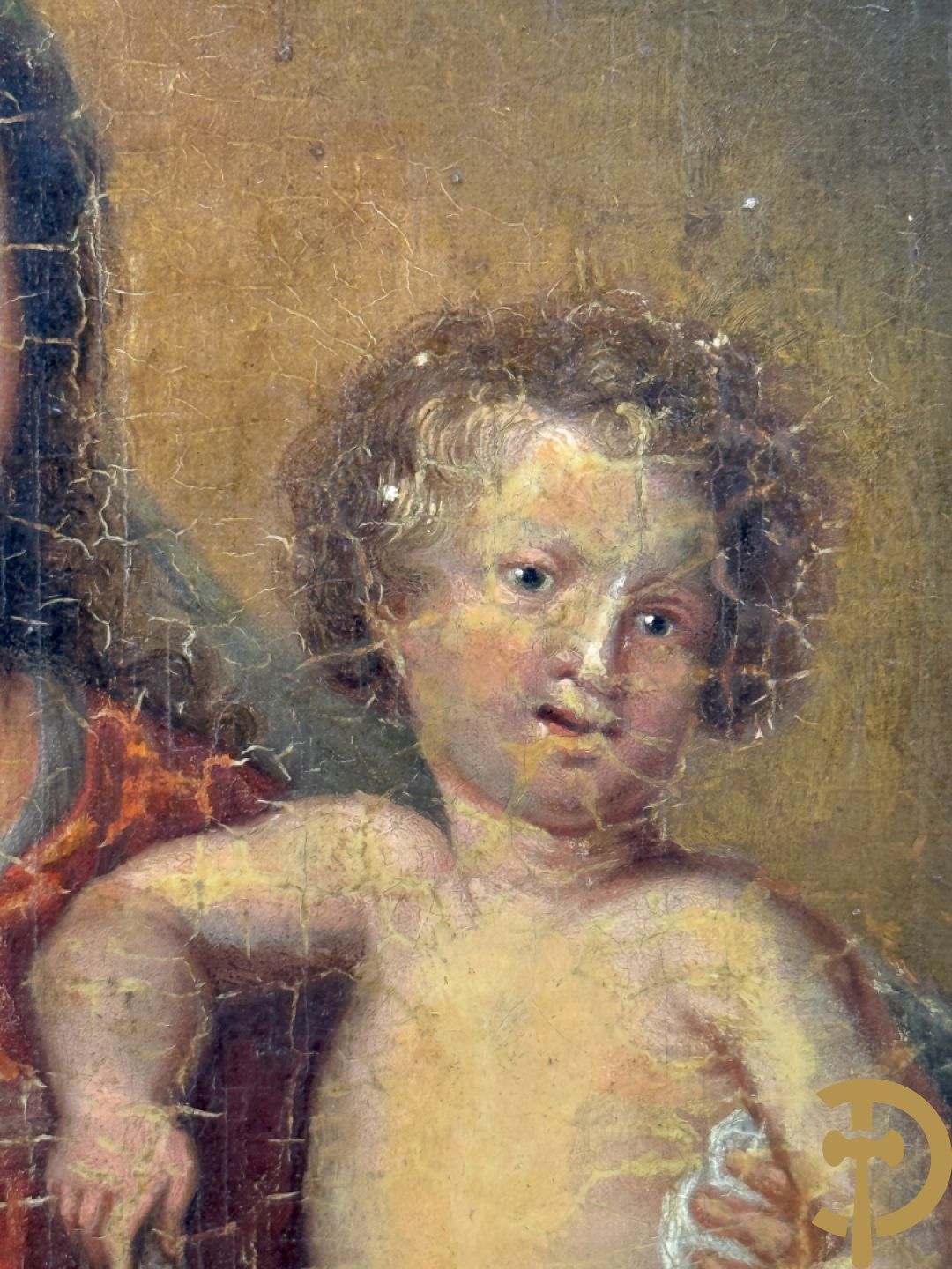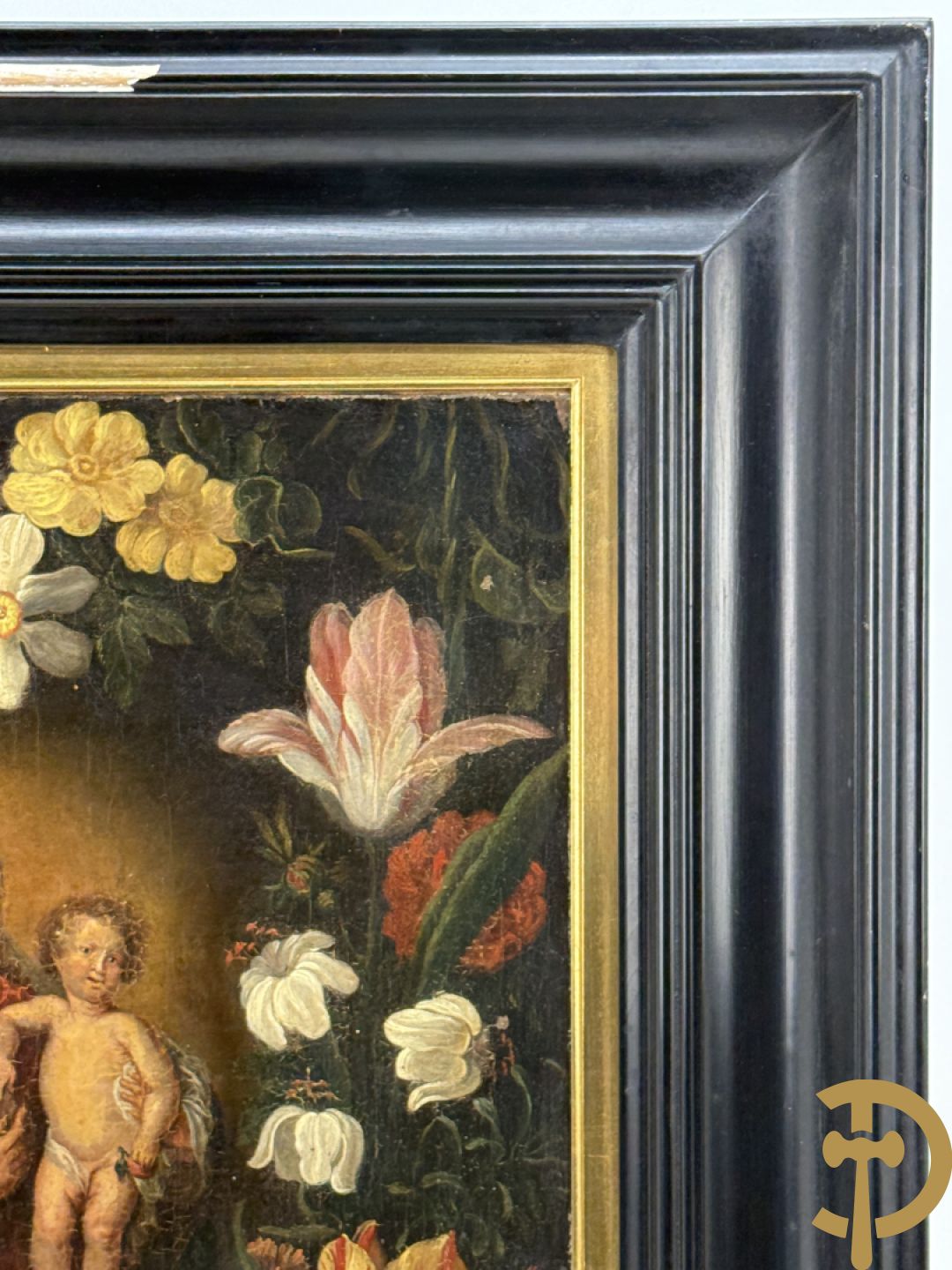 Ongetekend 'Madonna met kind omgeven door bloemenkrans' olie op doek