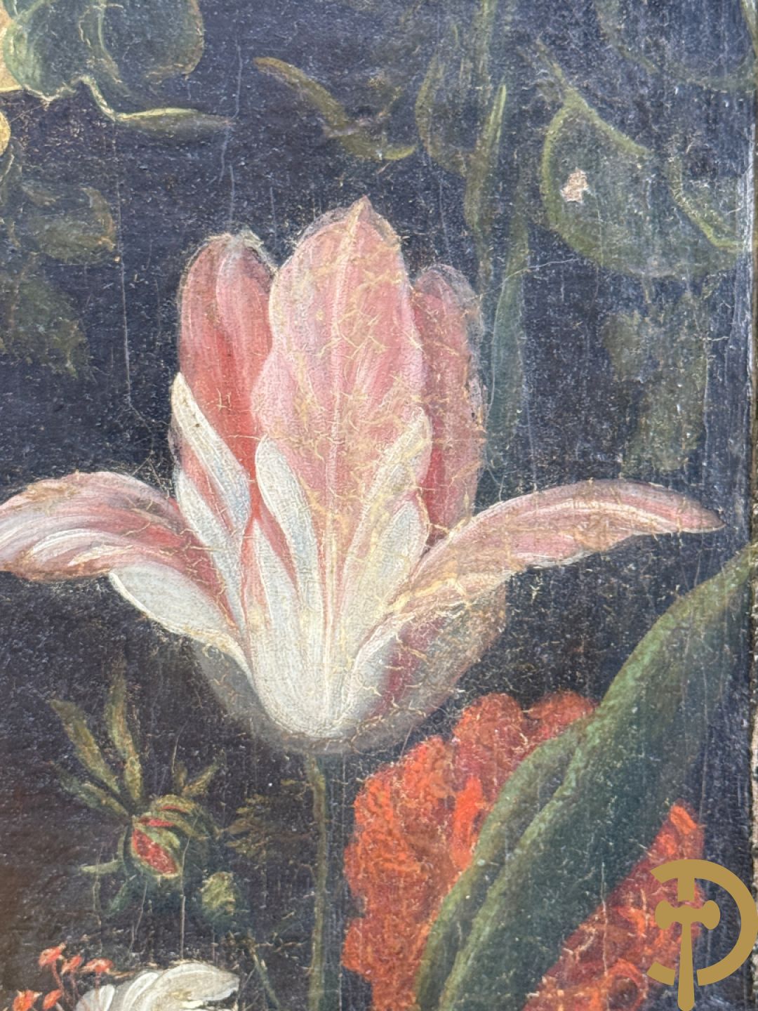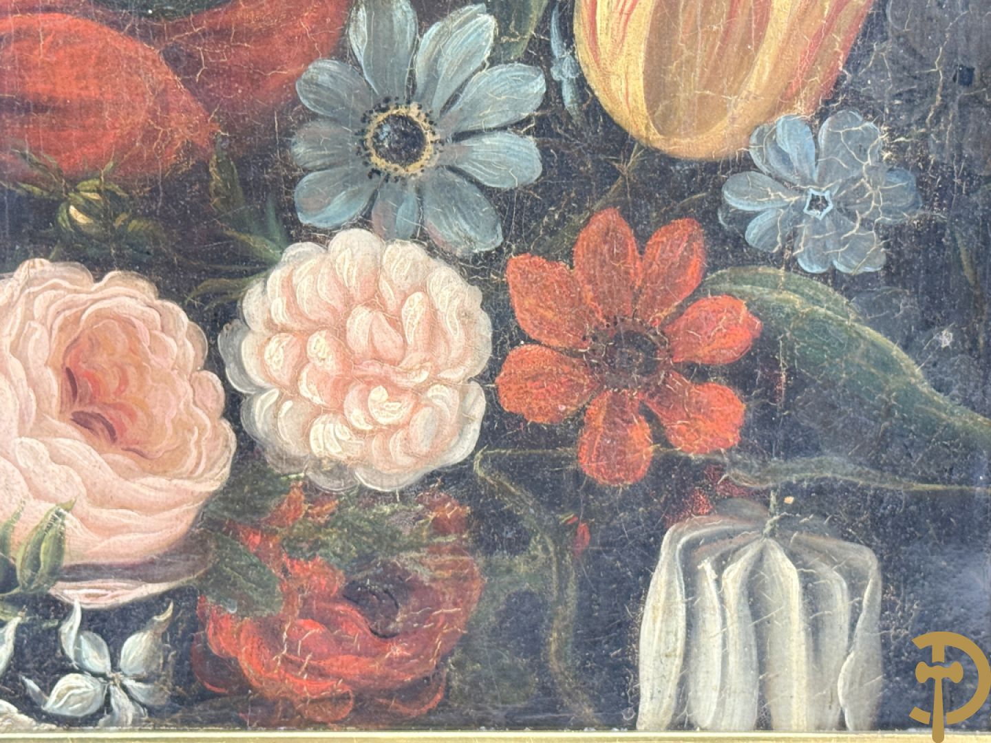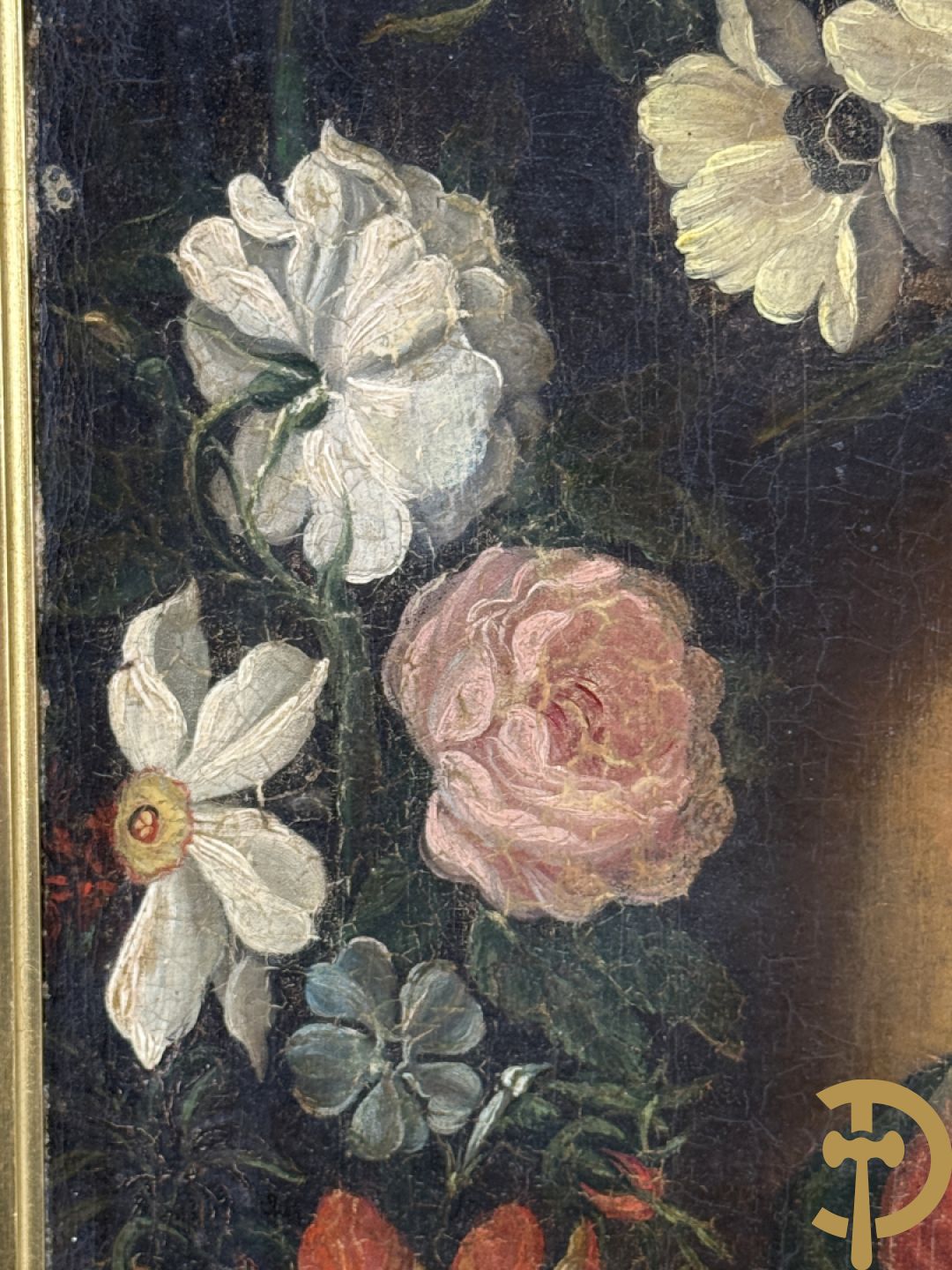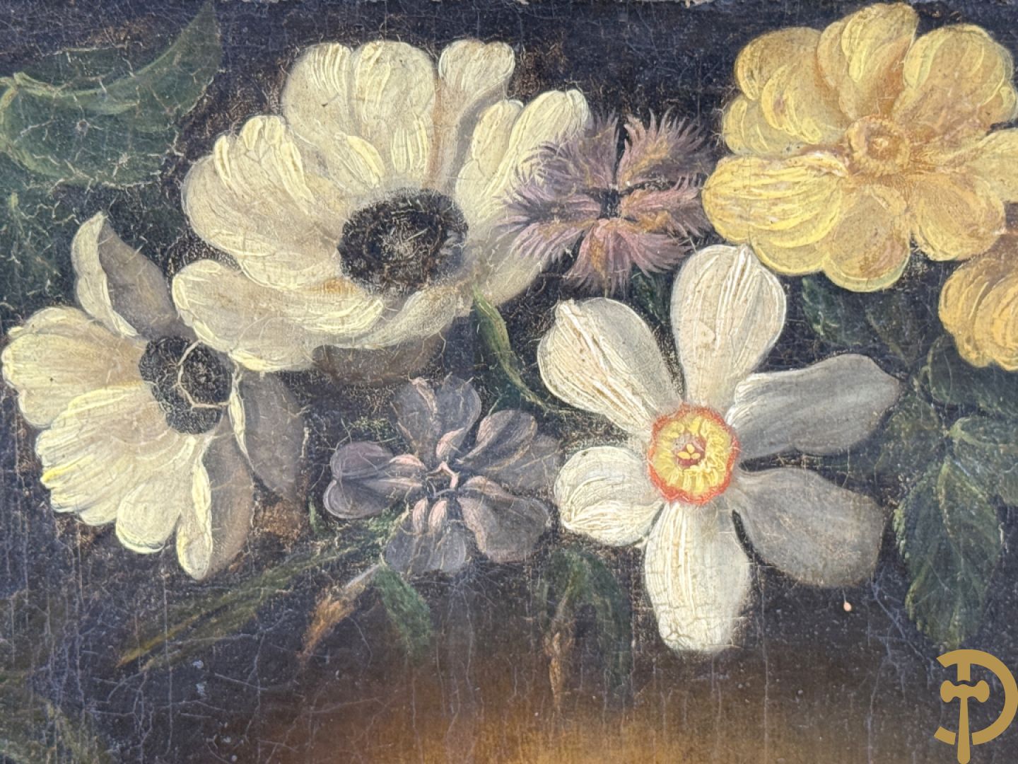 Ongetekend 'Madonna met kind omgeven door bloemenkrans' olie op doek