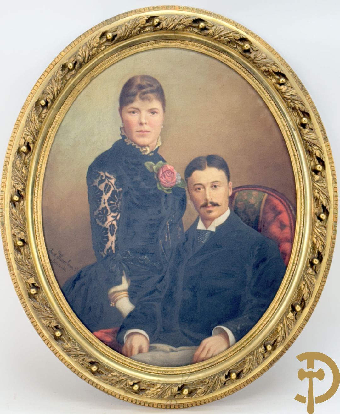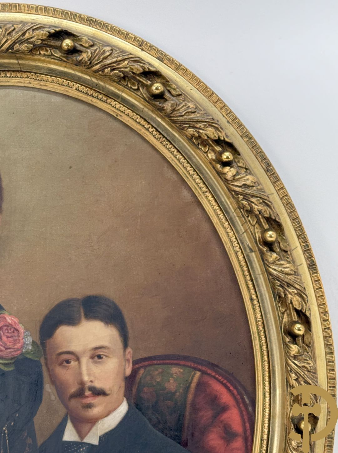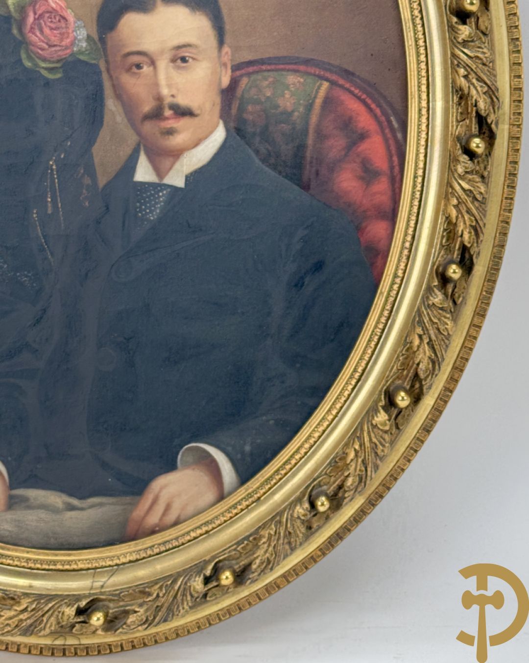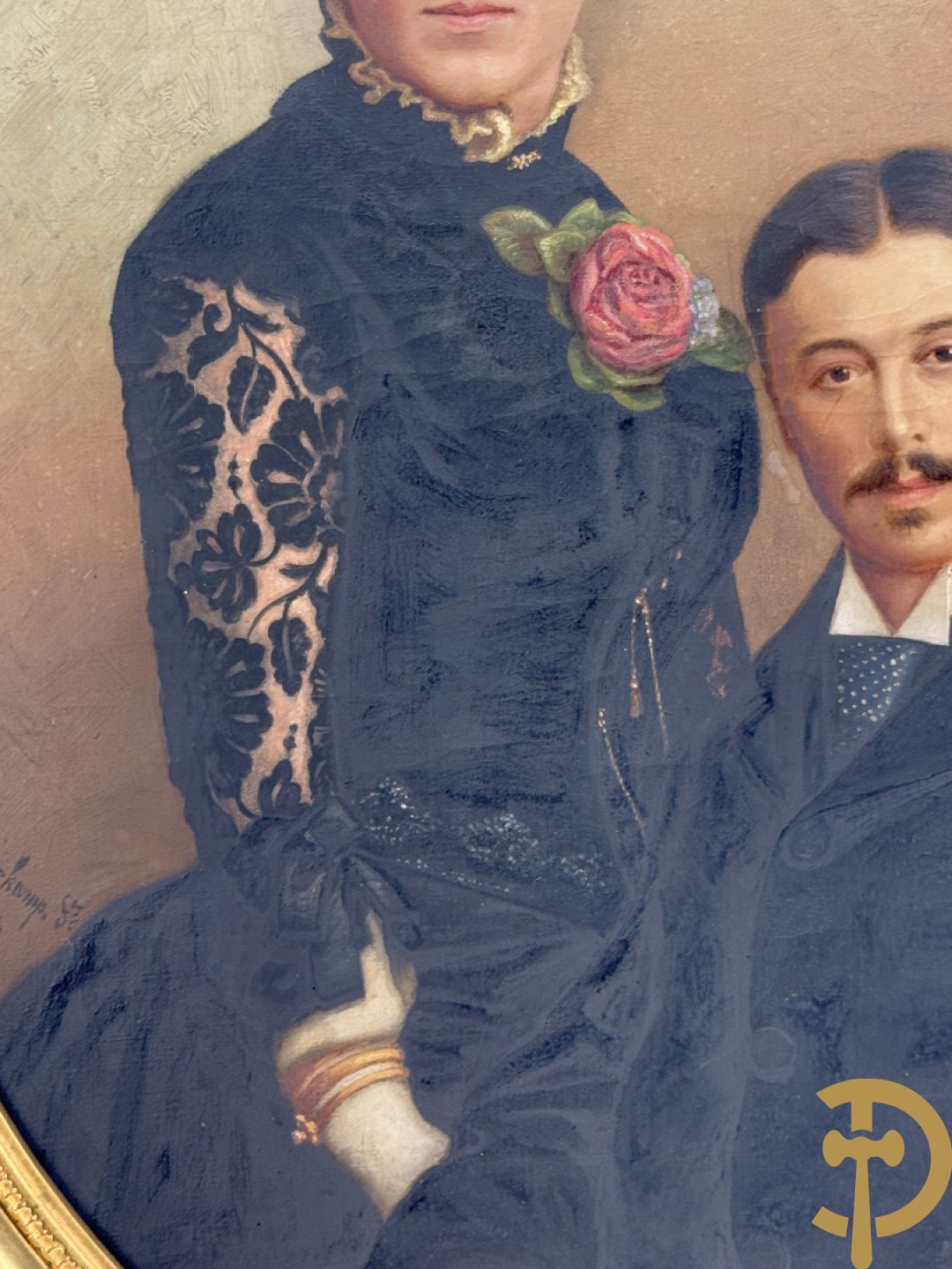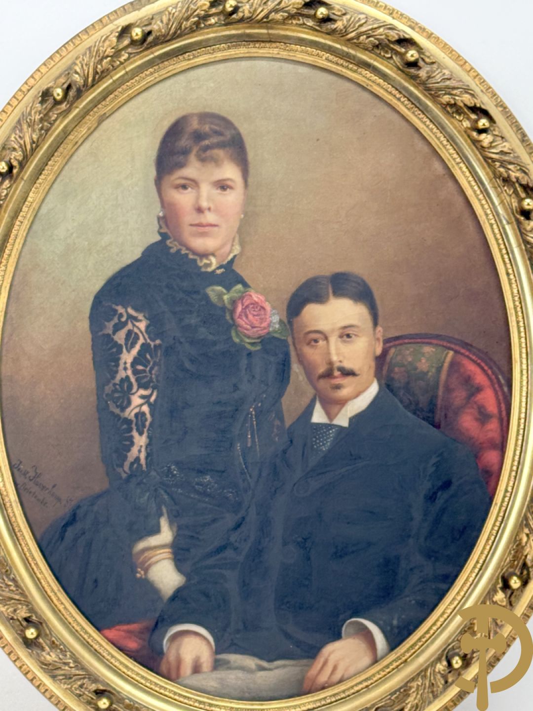 HAVERKAMP getekend 'Man en vrouw' ovaal 19e portret olie op doek
