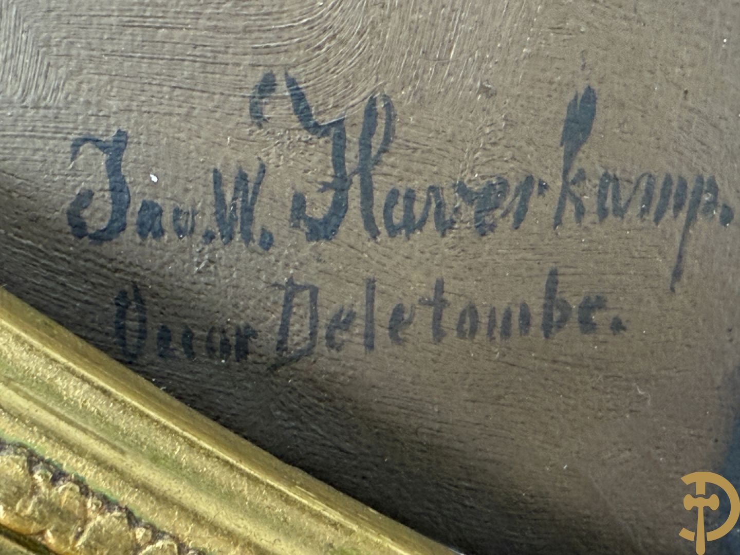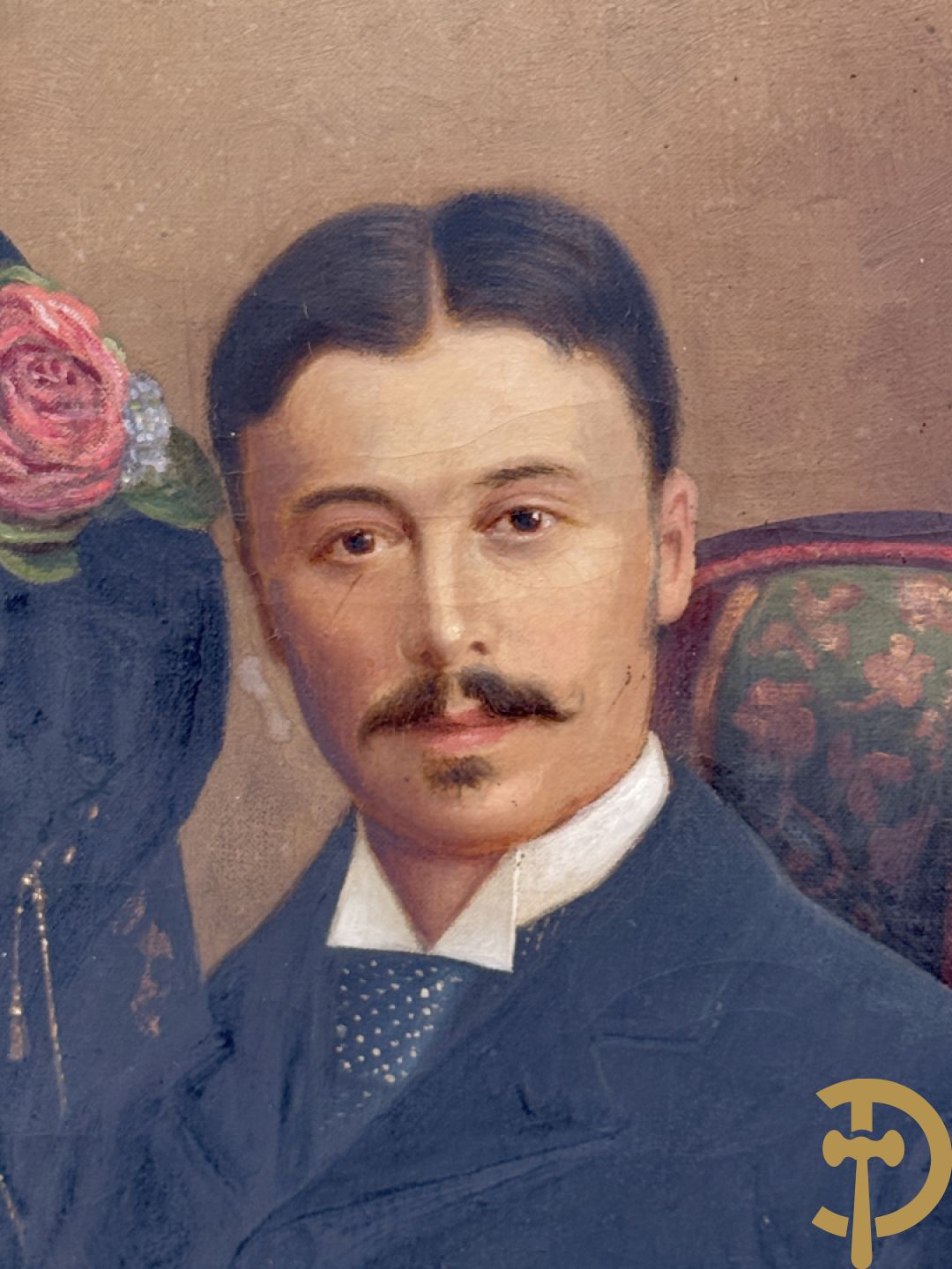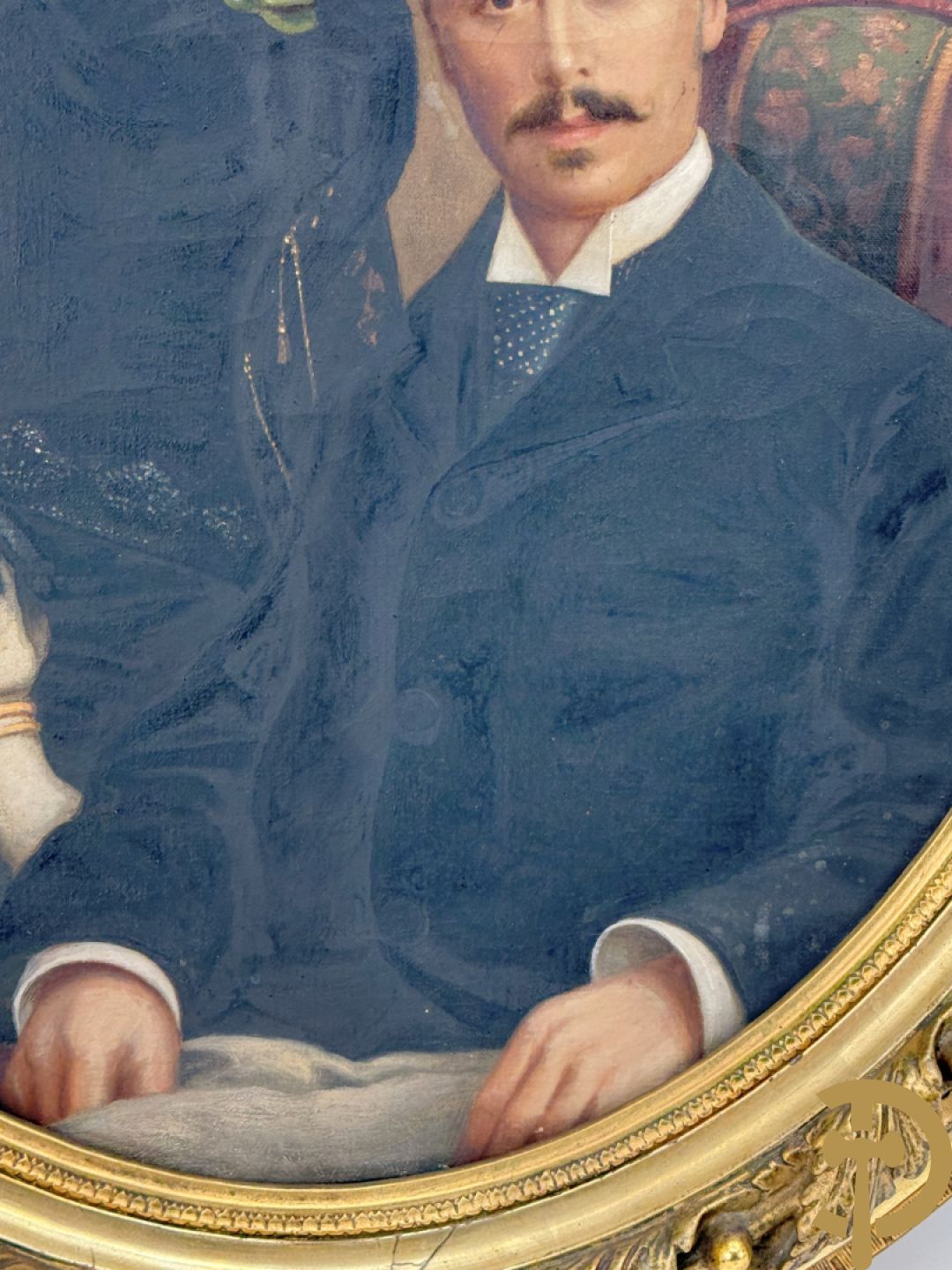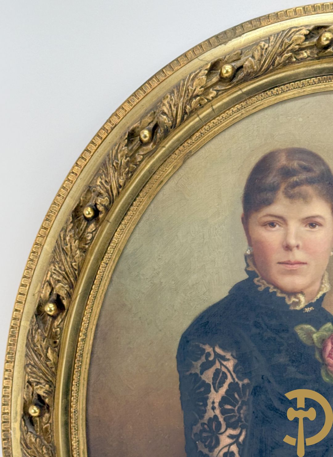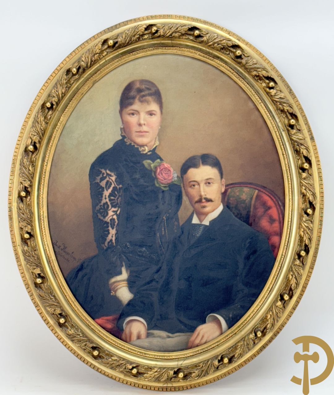HAVERKAMP getekend 'Man en vrouw' ovaal 19e portret olie op doek