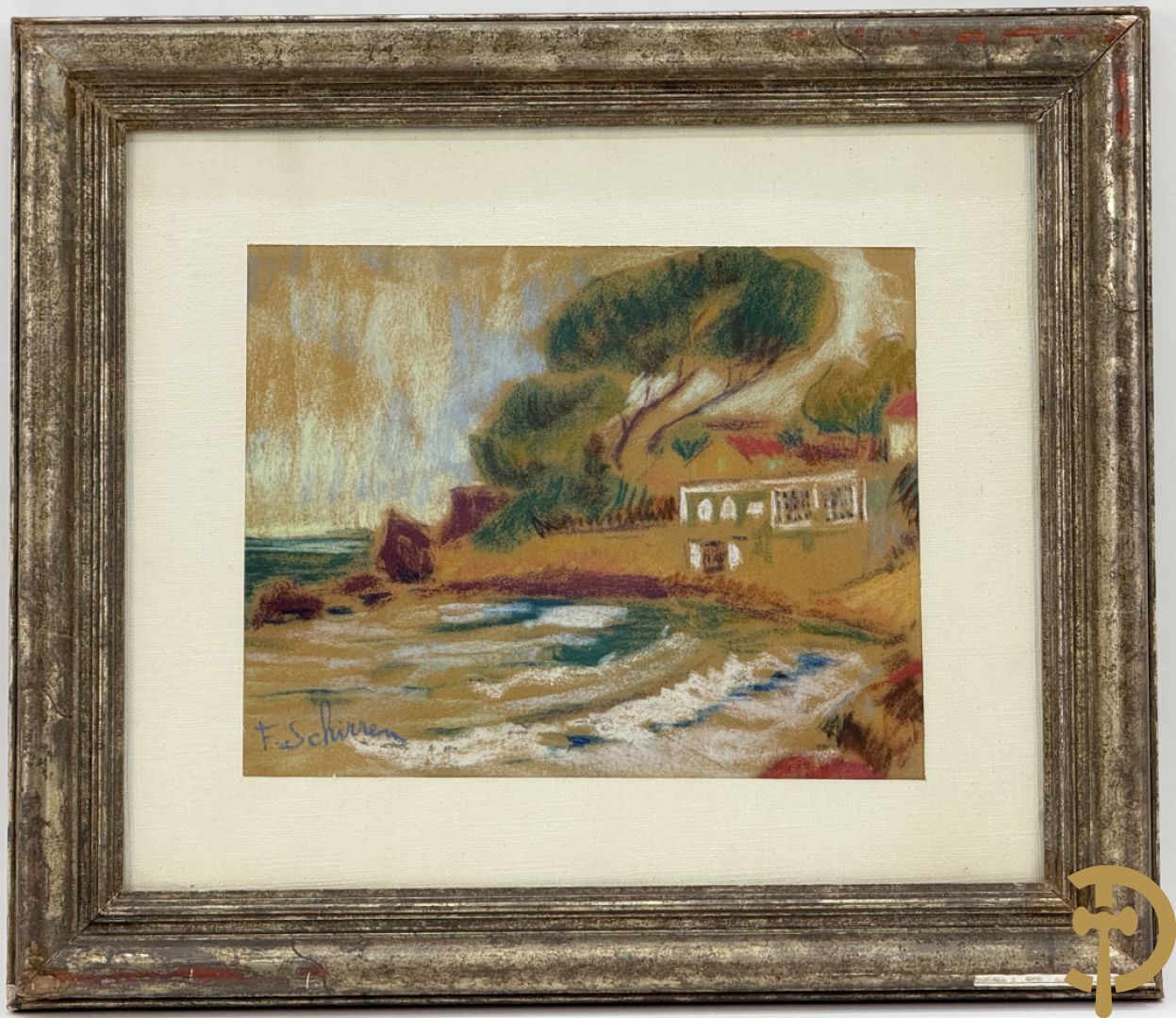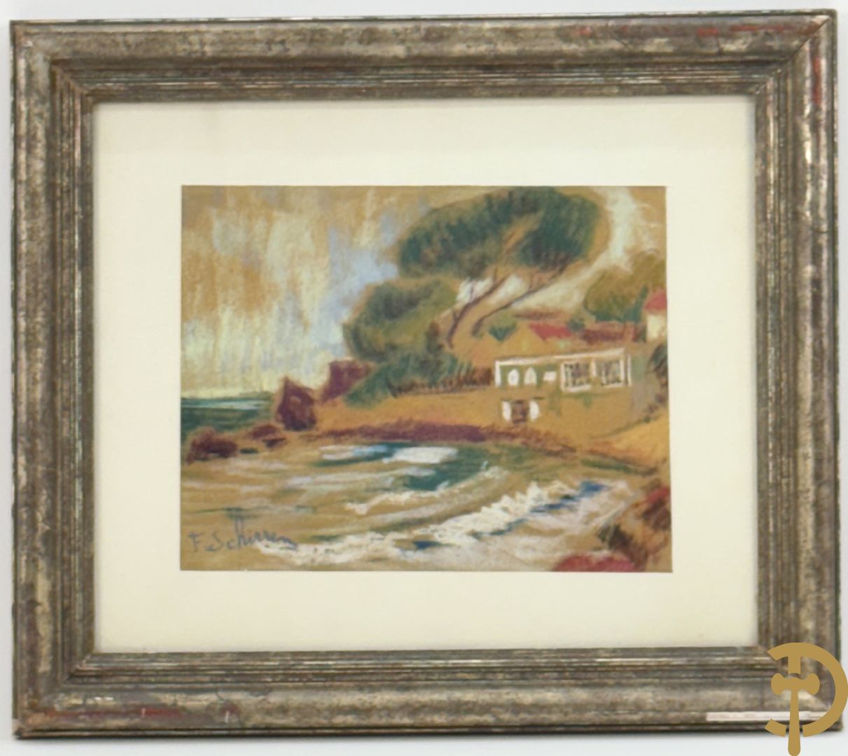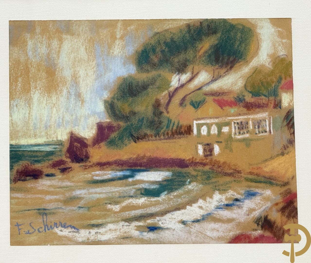 LOT 500 - SCHIRREN F.(Ferdinand) getekend 'Huis bij het strand' pastel