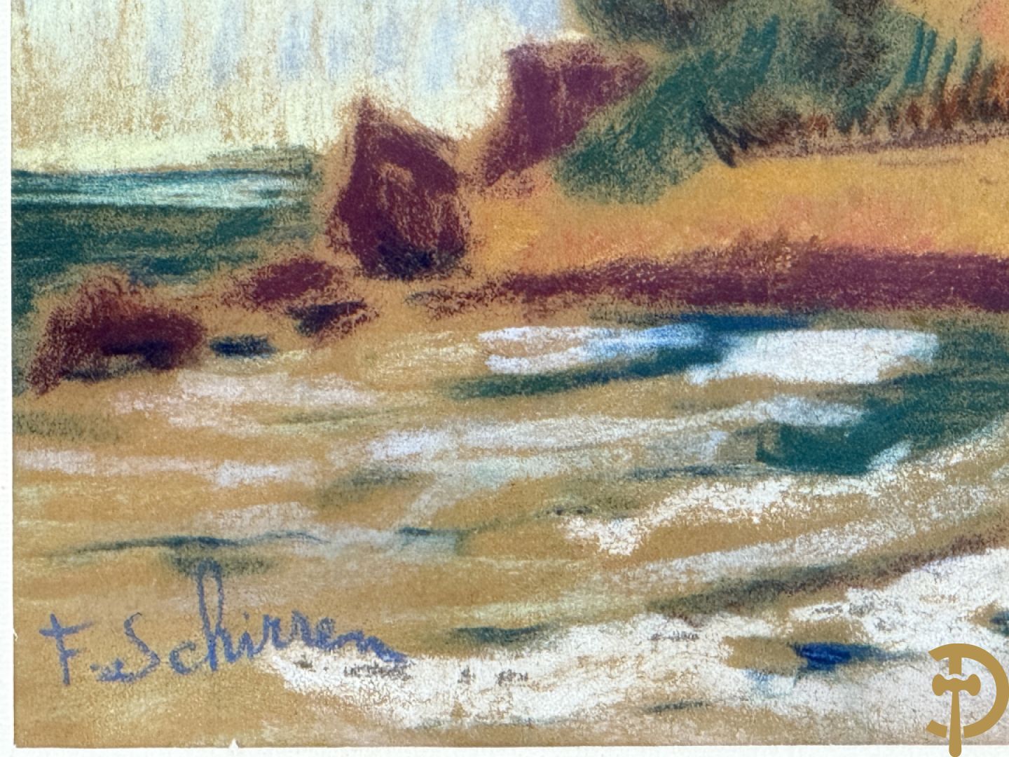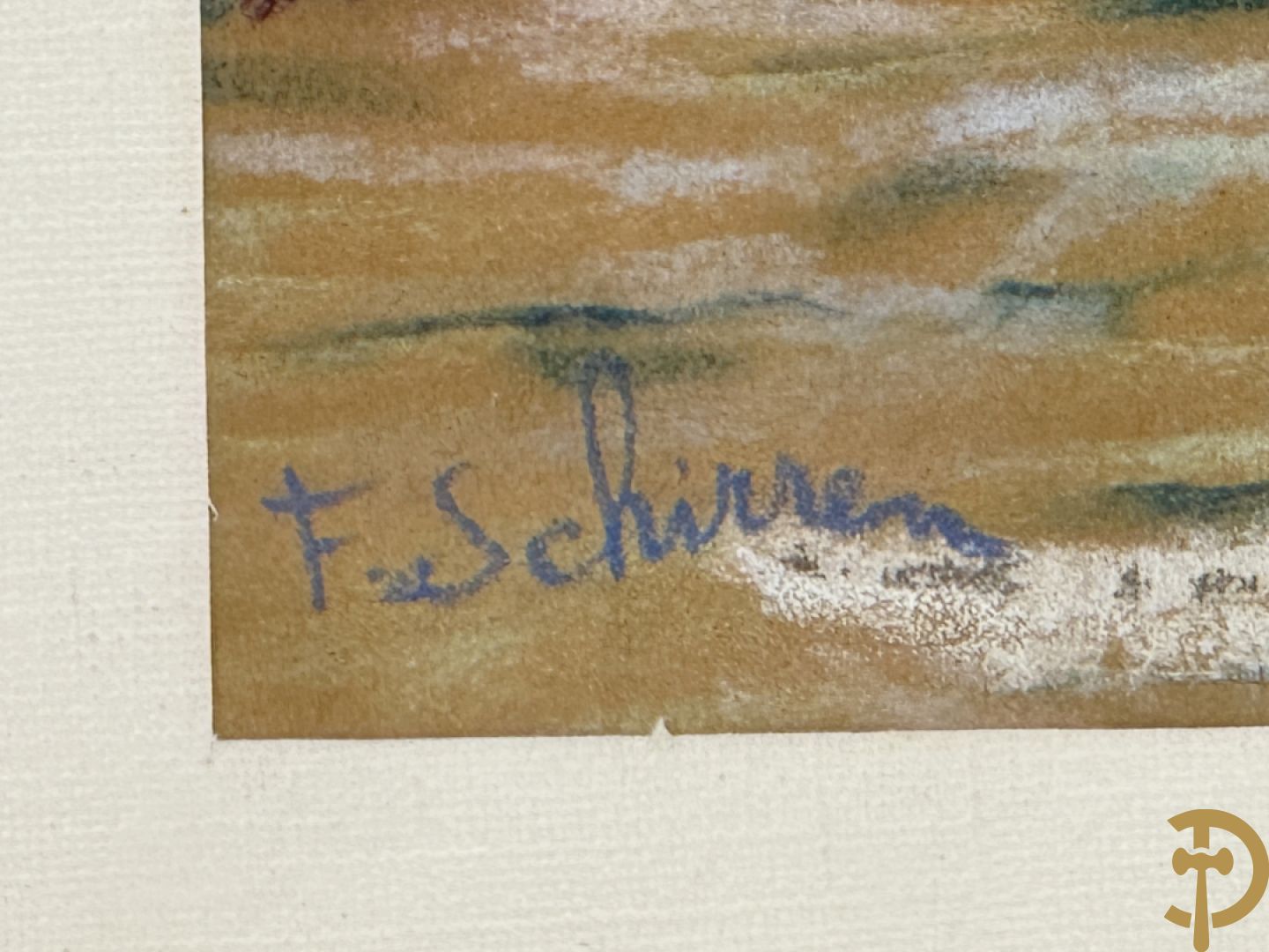 SCHIRREN F.(Ferdinand) getekend 'Huis bij het strand' pastel