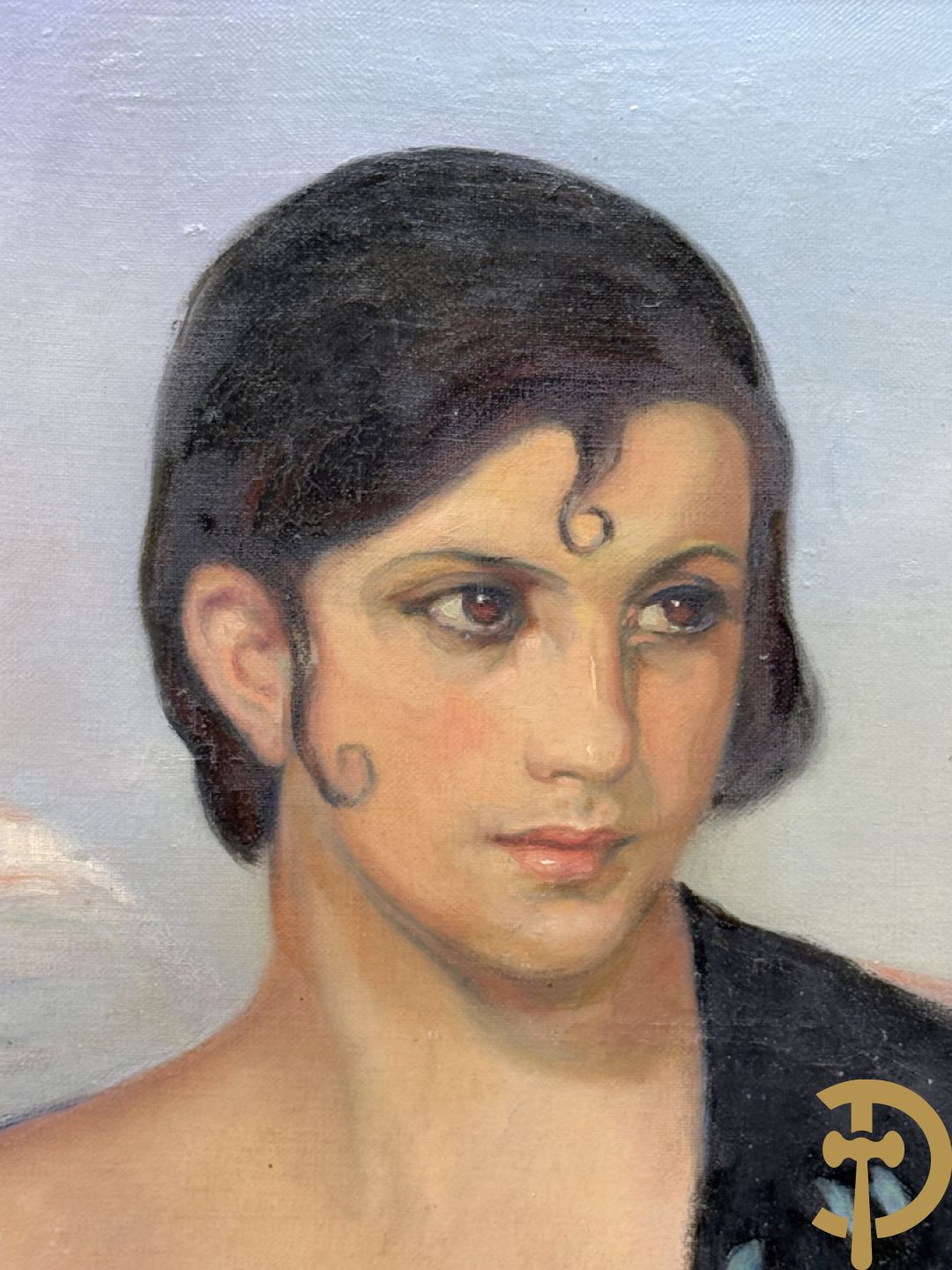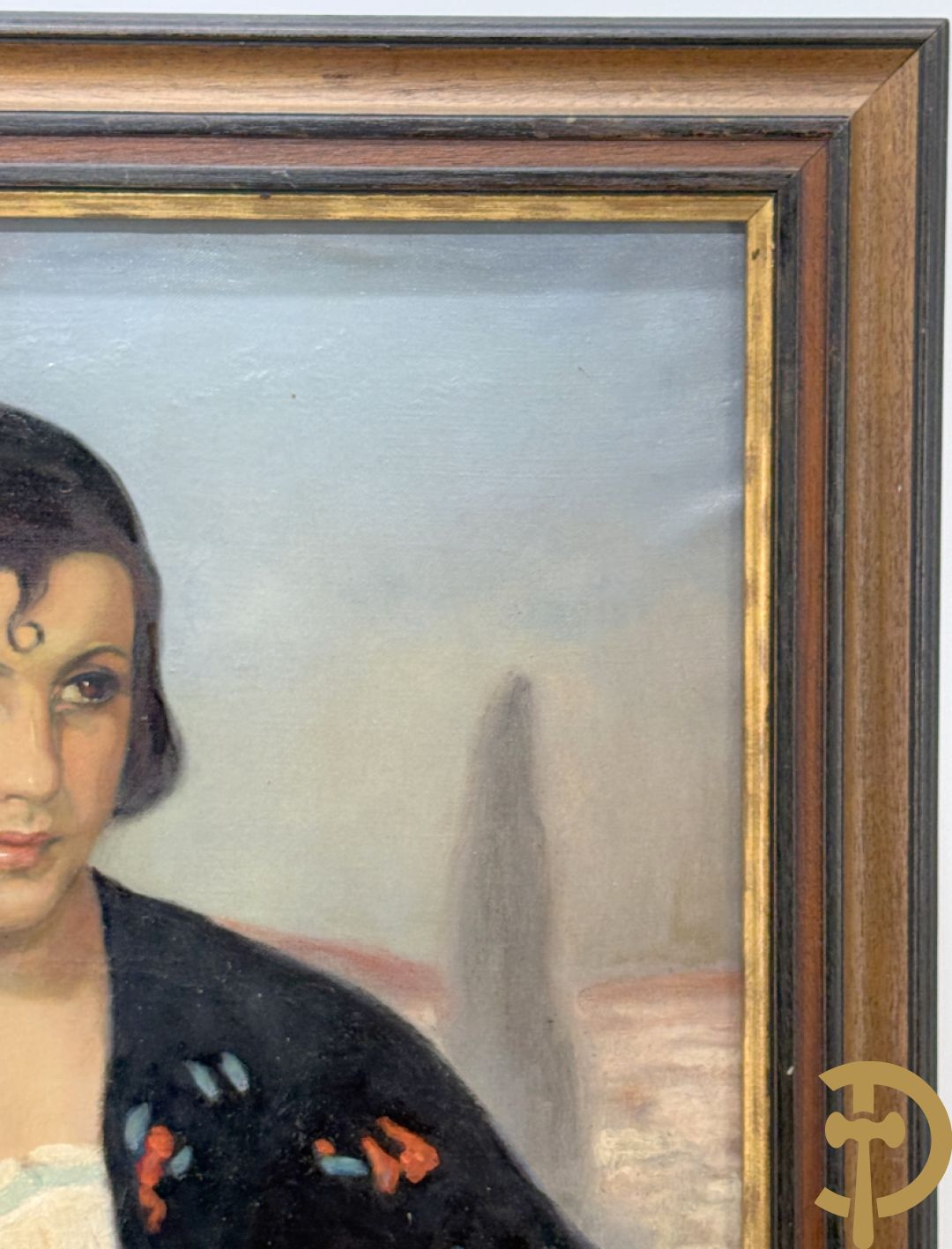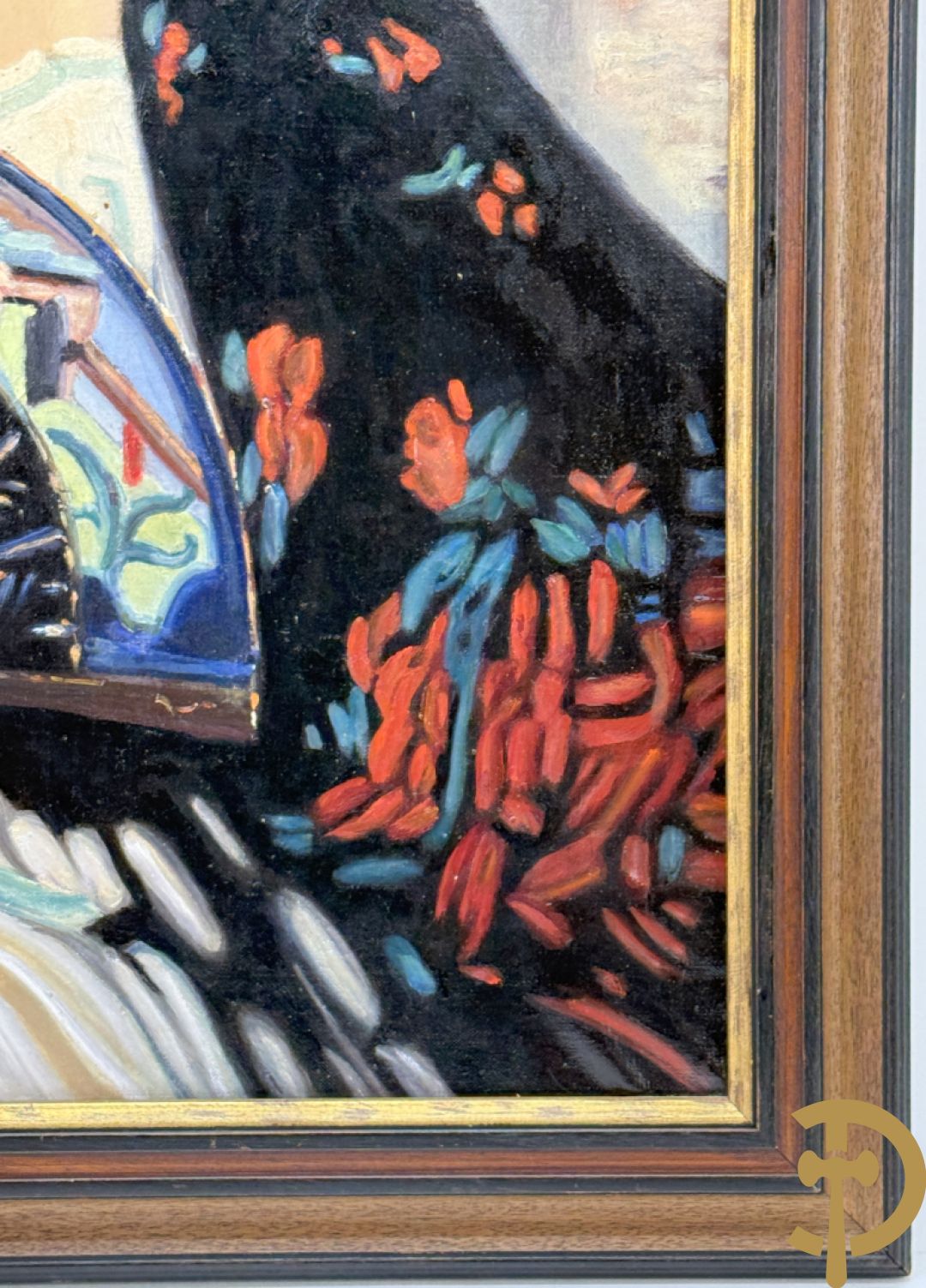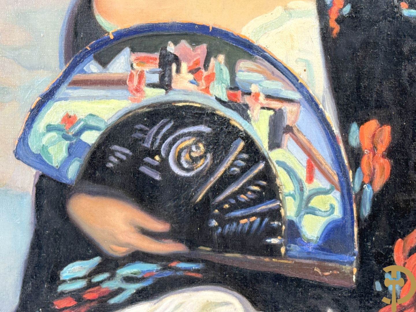 LOUTCHINSKY E. getekend 'Elegante dame met waaier' olie op doek