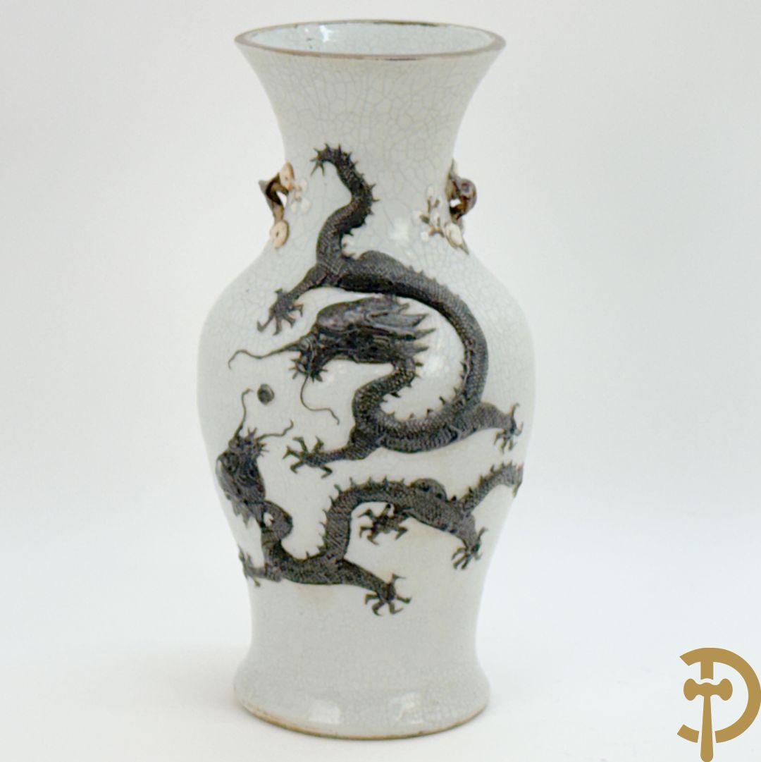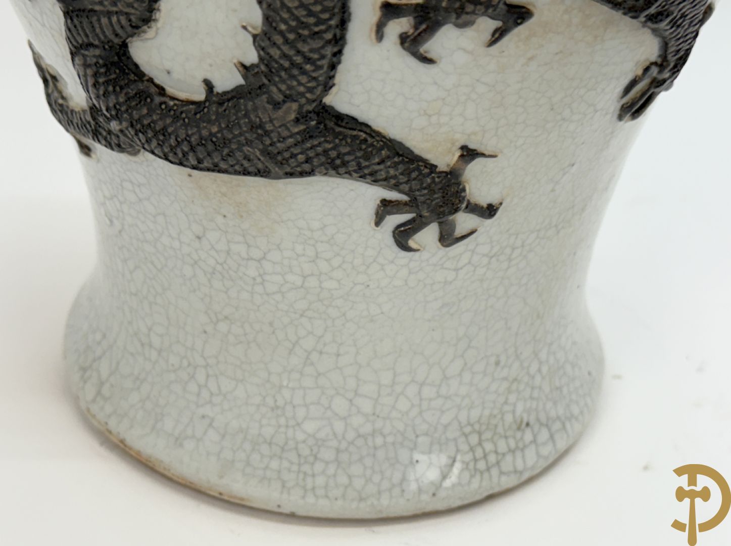Chinese porseleinen Nankinvaas met dubbeldecor van vogel en relief van drakendecor