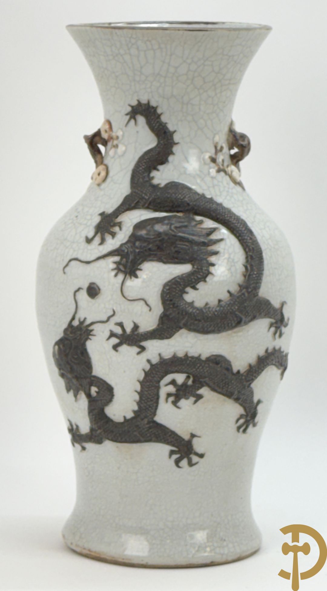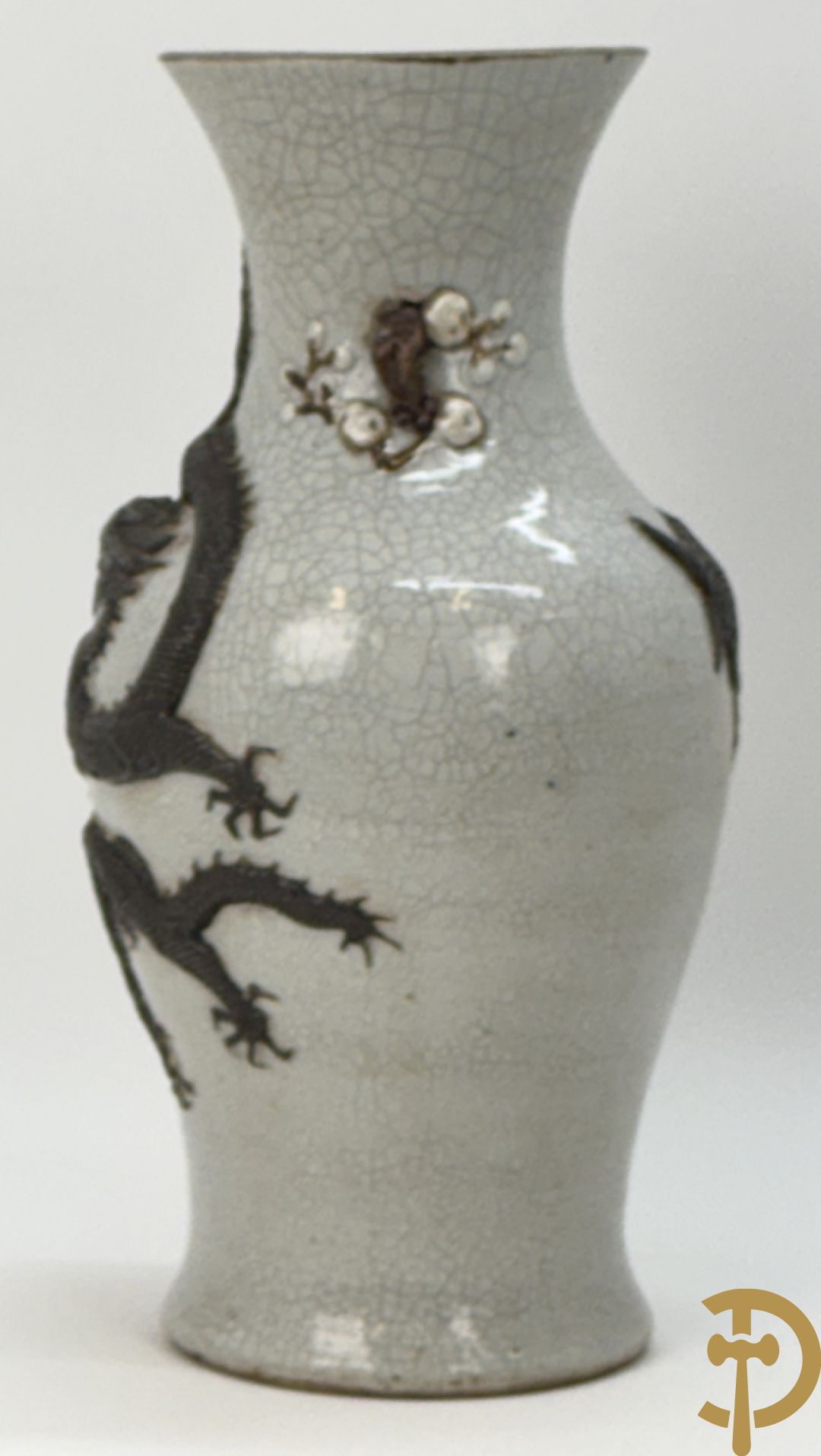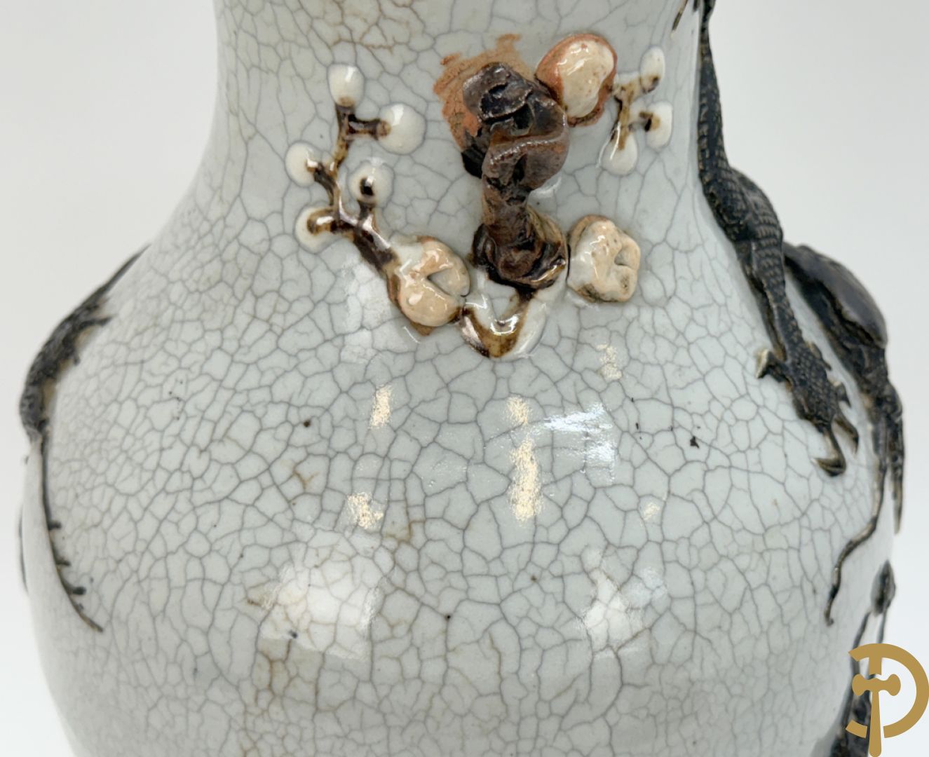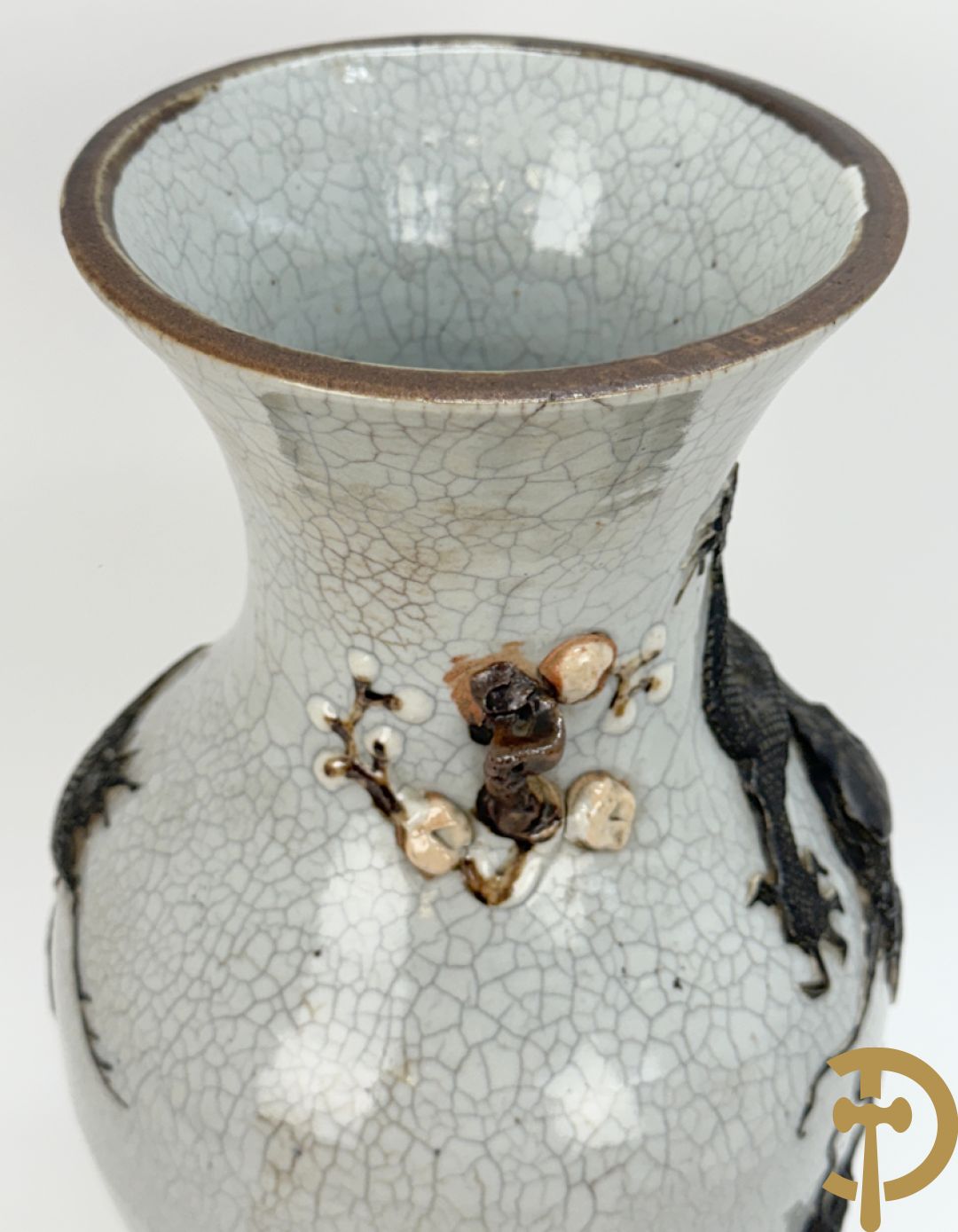 LOT 12 - Chinese porseleinen Nankinvaas met dubbeldecor van vogel en relief van drakendecor