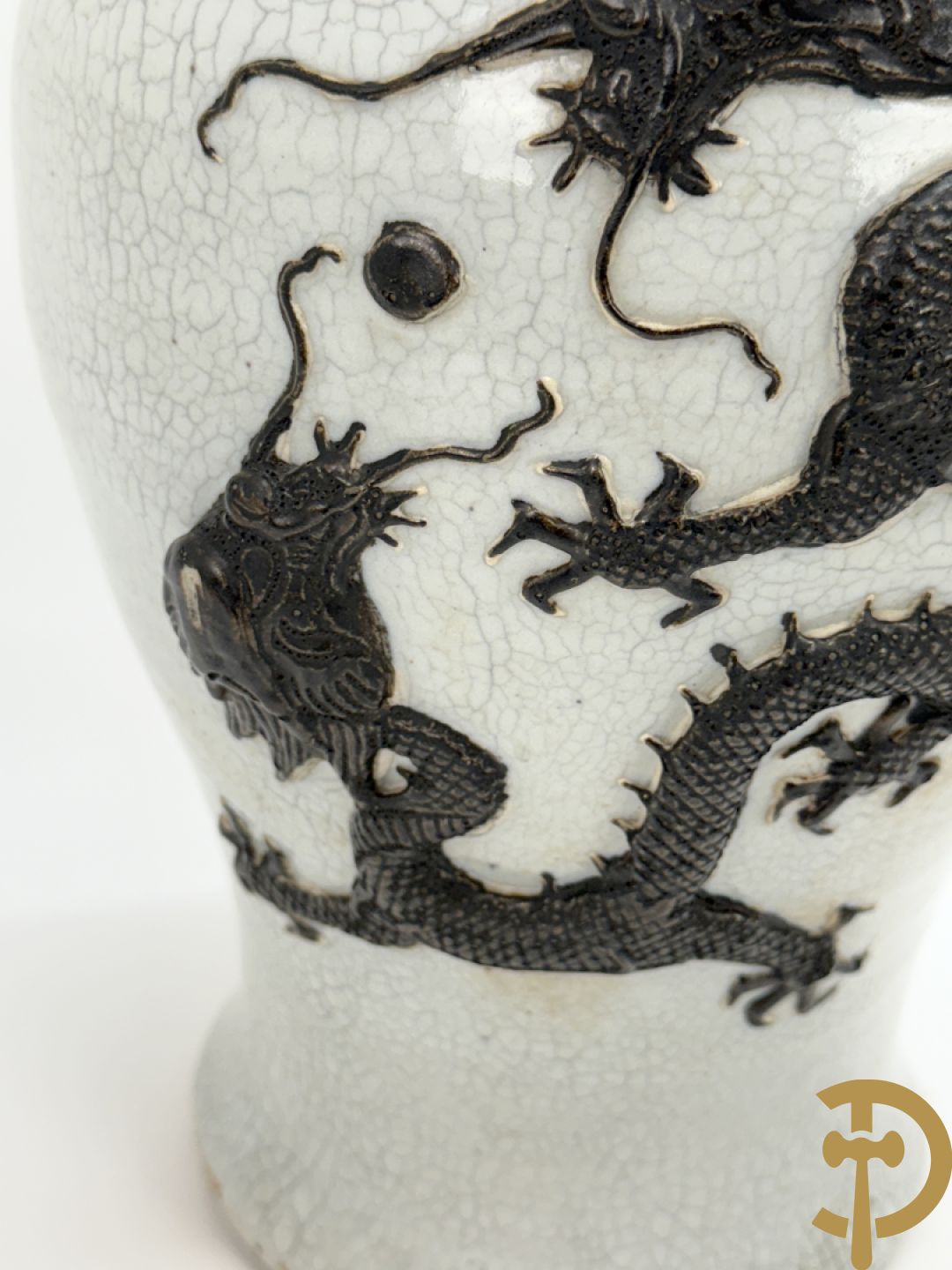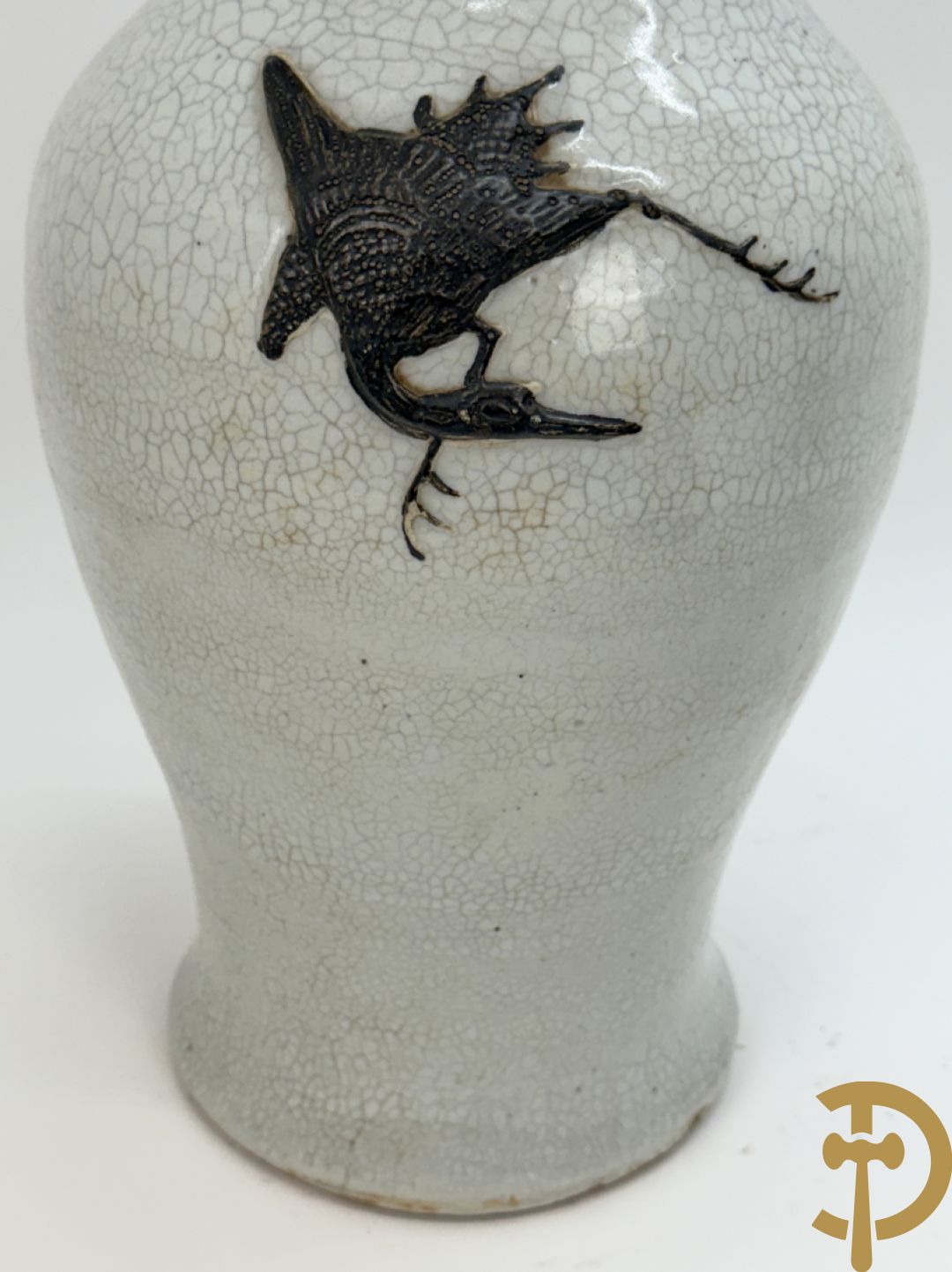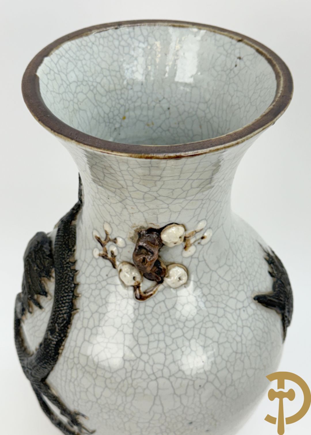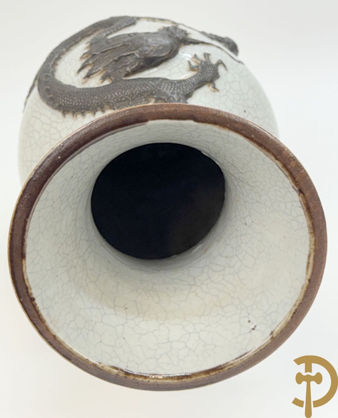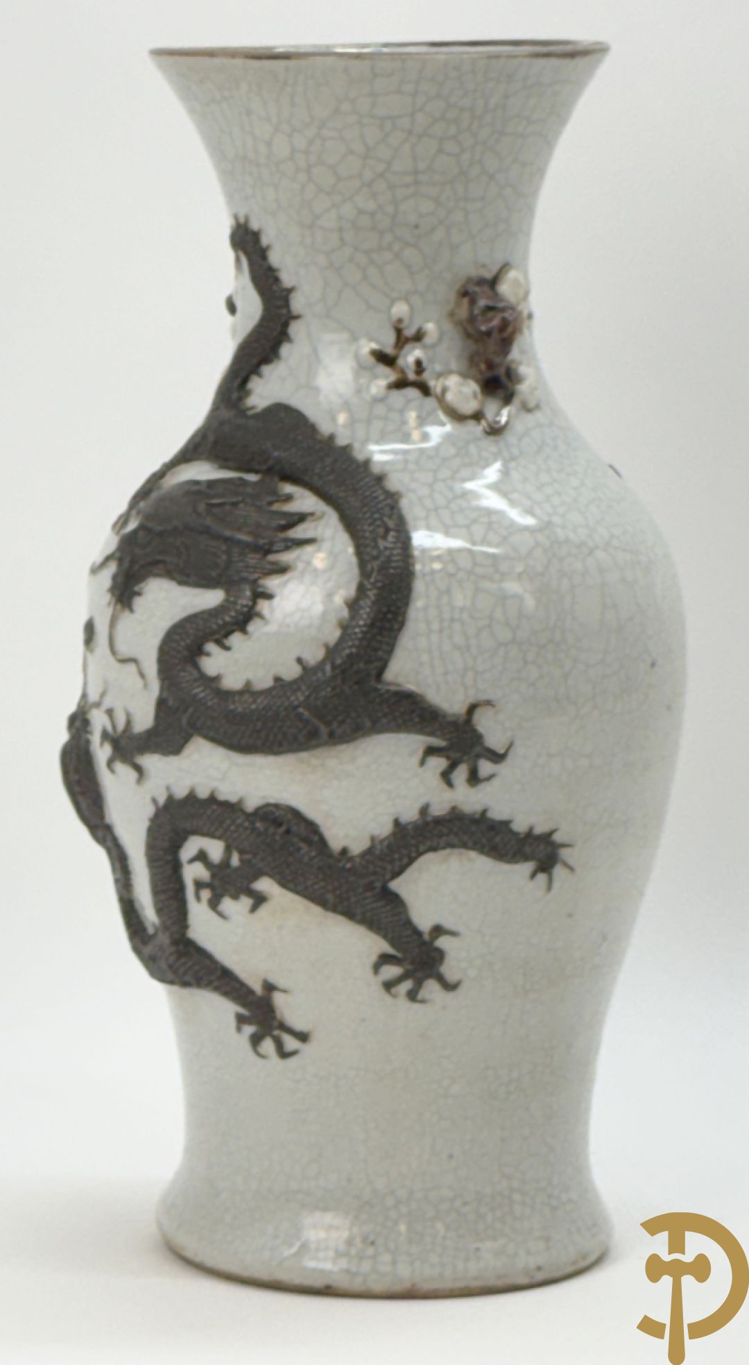 LOT 12 - Chinese porseleinen Nankinvaas met dubbeldecor van vogel en relief van drakendecor