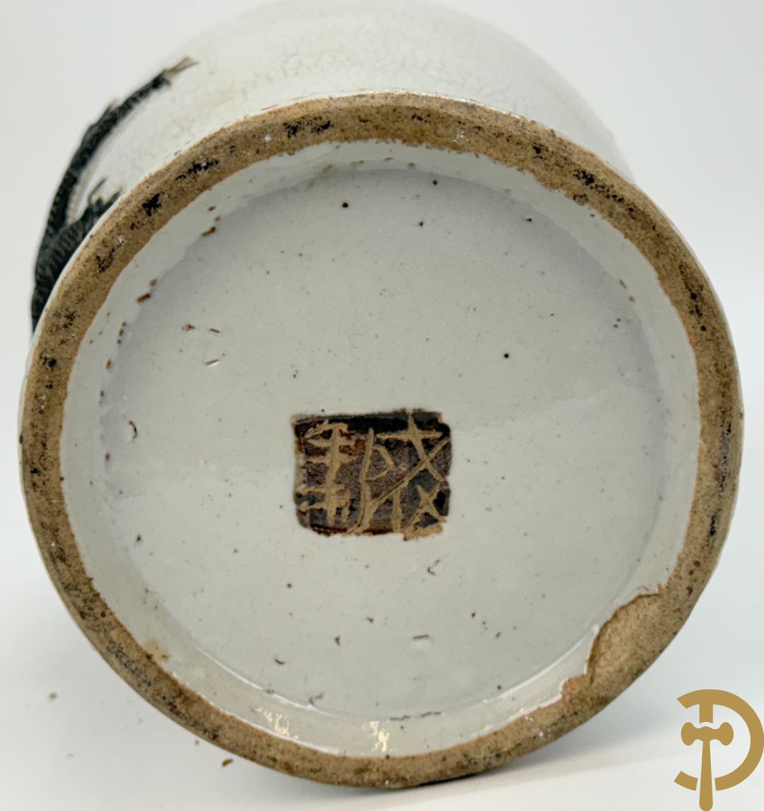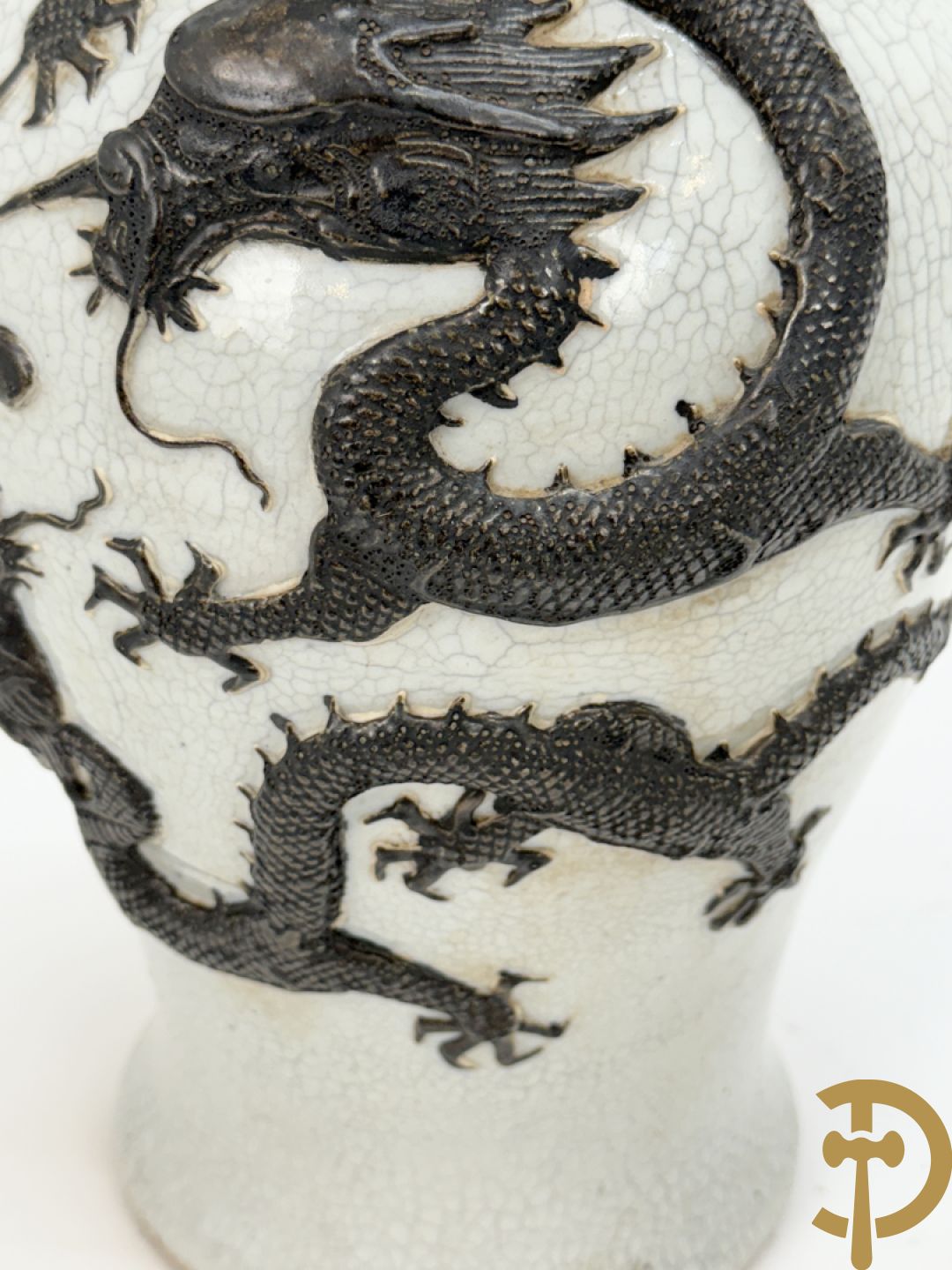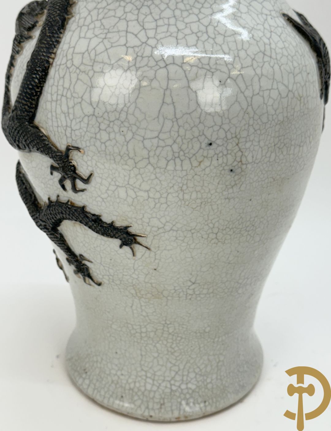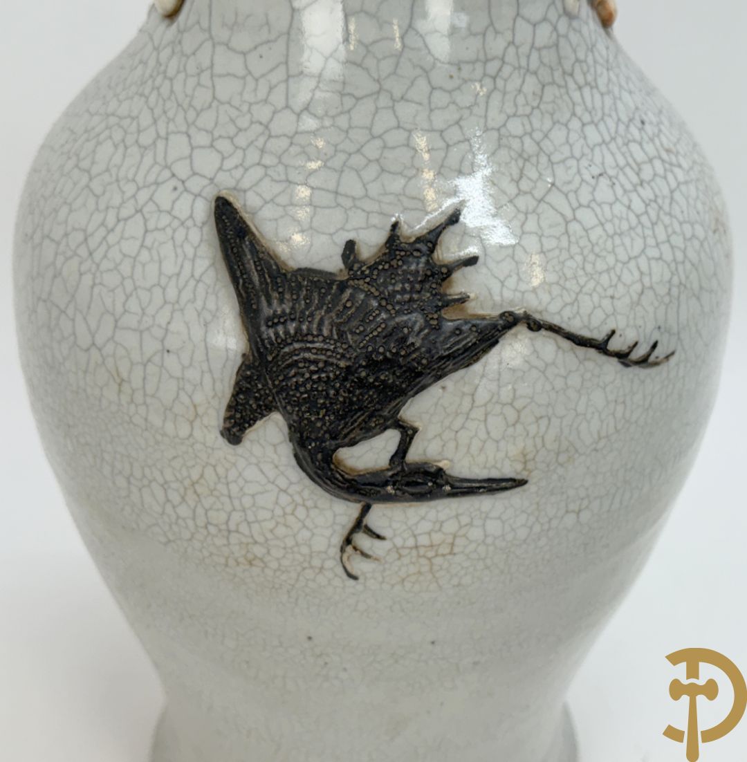 LOT 12 - Chinese porseleinen Nankinvaas met dubbeldecor van vogel en relief van drakendecor