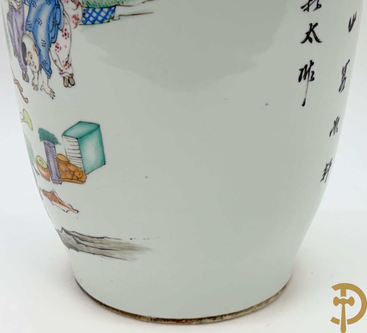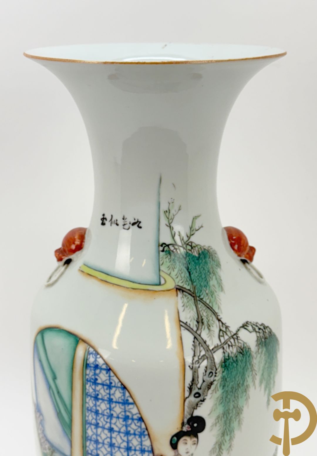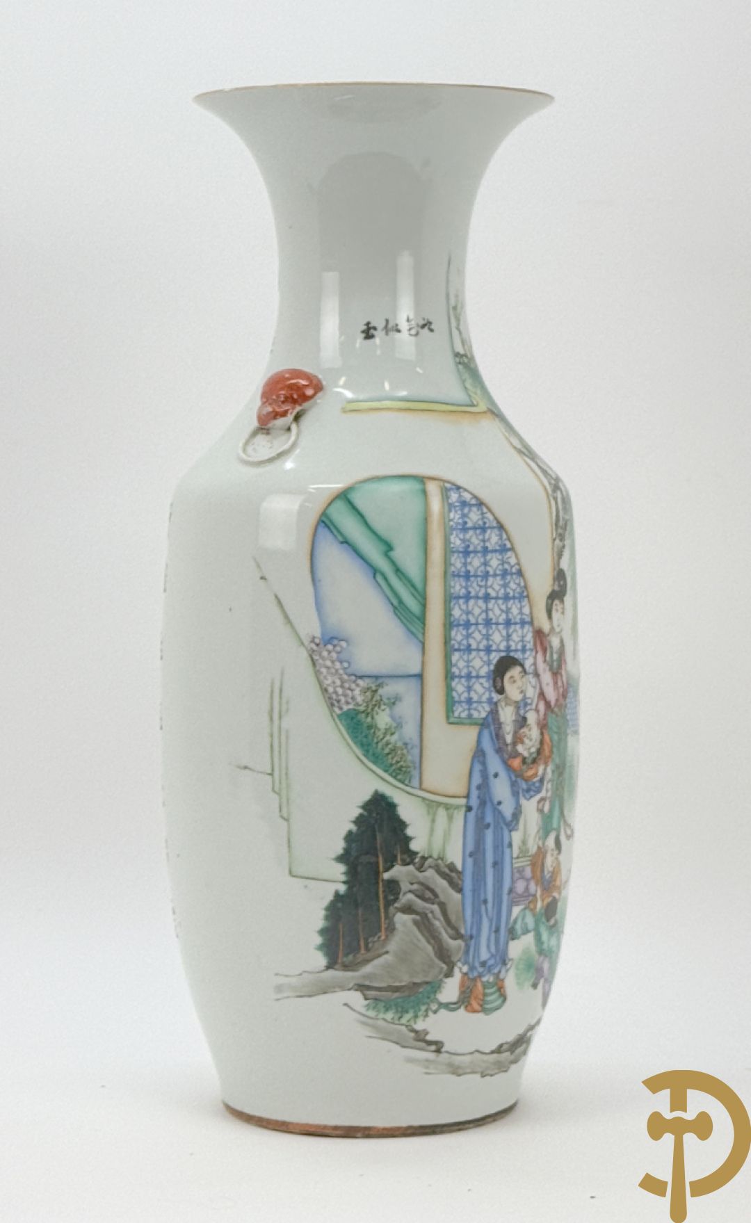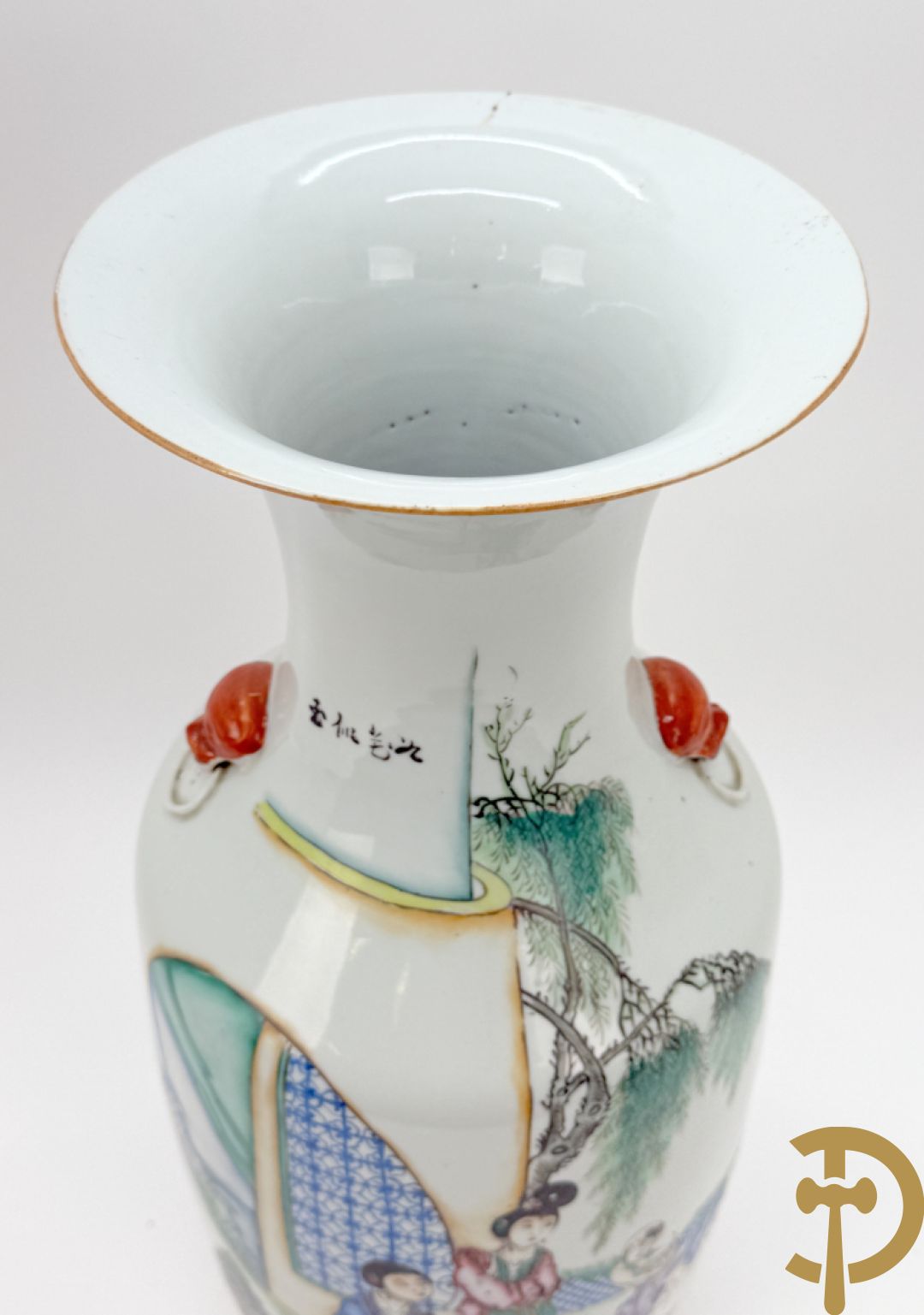 LOT 17 - Chinese porseleinen vaas met decor van dames en kinderen - 2 fo honden met ringen opzij, bovenaan getekend