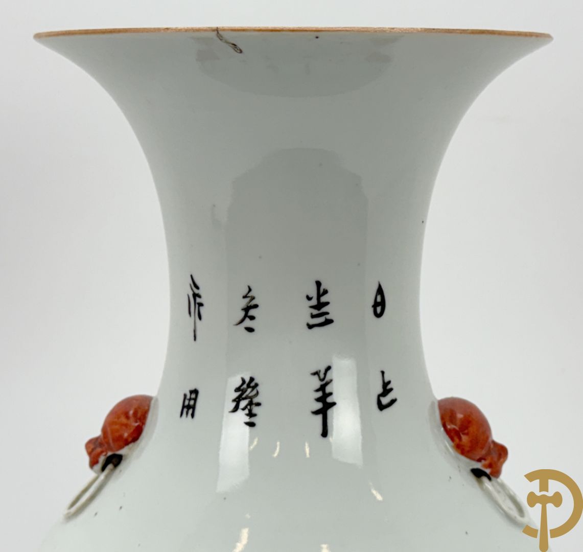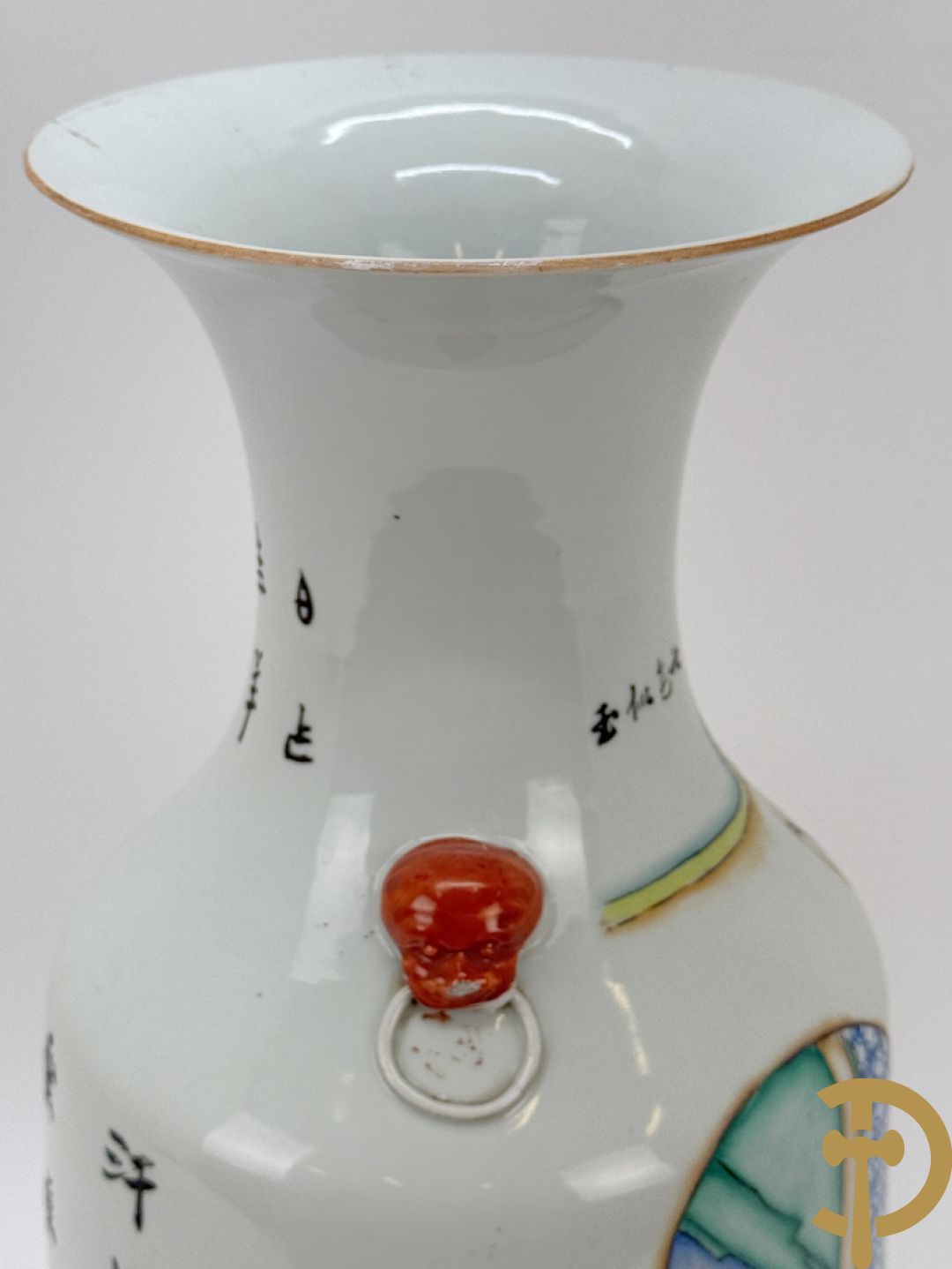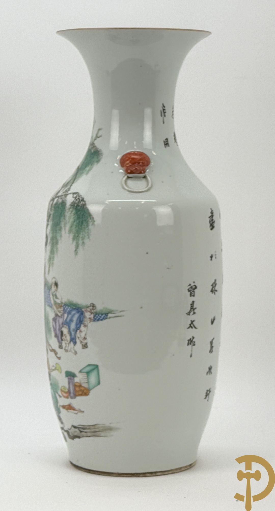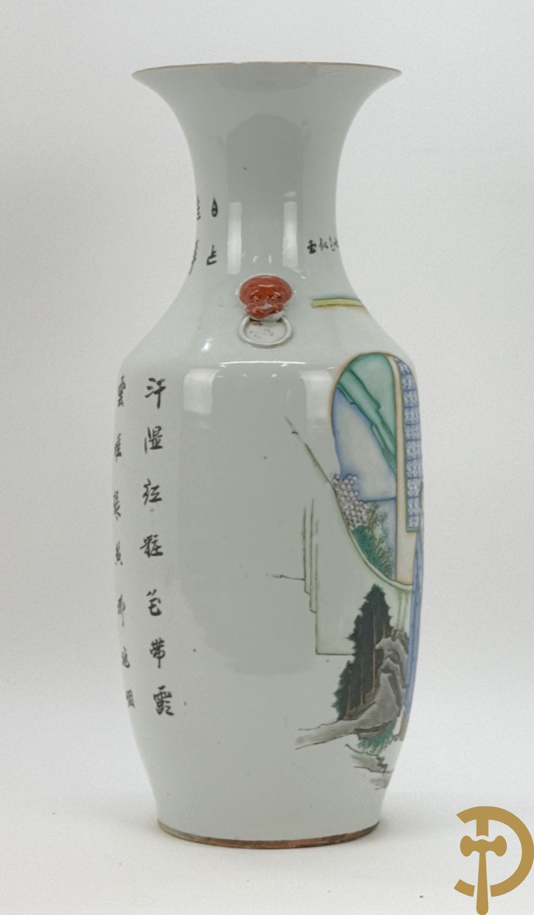 LOT 17 - Chinese porseleinen vaas met decor van dames en kinderen - 2 fo honden met ringen opzij, bovenaan getekend
