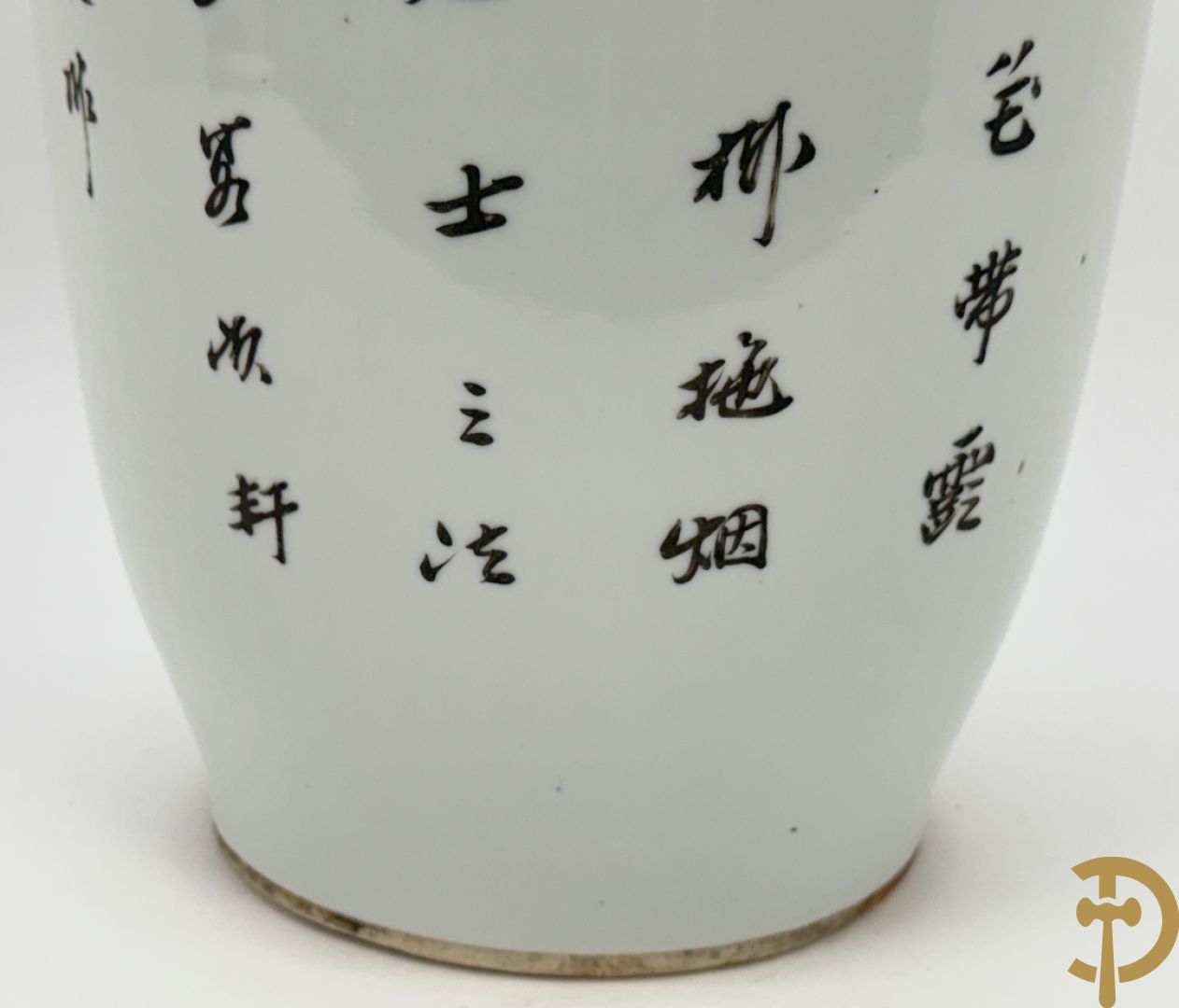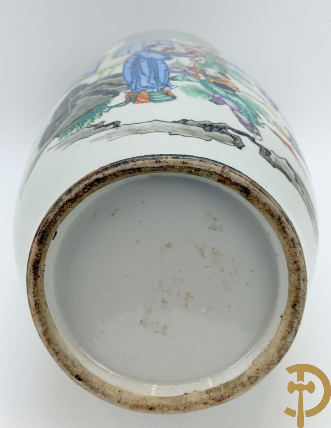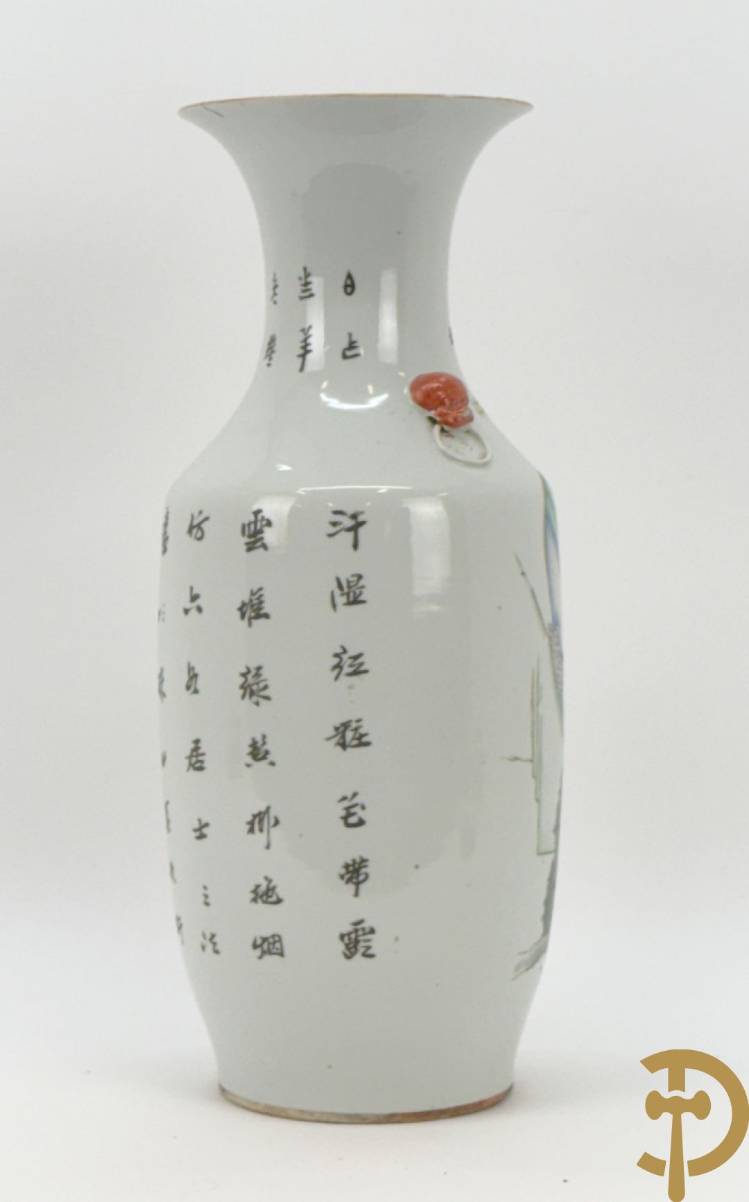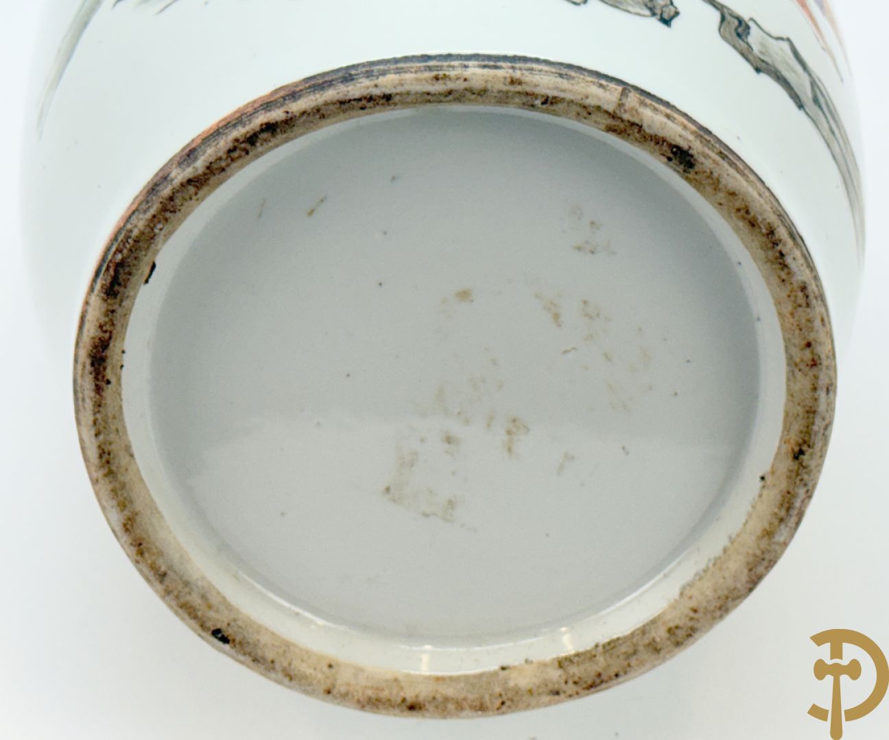 LOT 17 - Chinese porseleinen vaas met decor van dames en kinderen - 2 fo honden met ringen opzij, bovenaan getekend