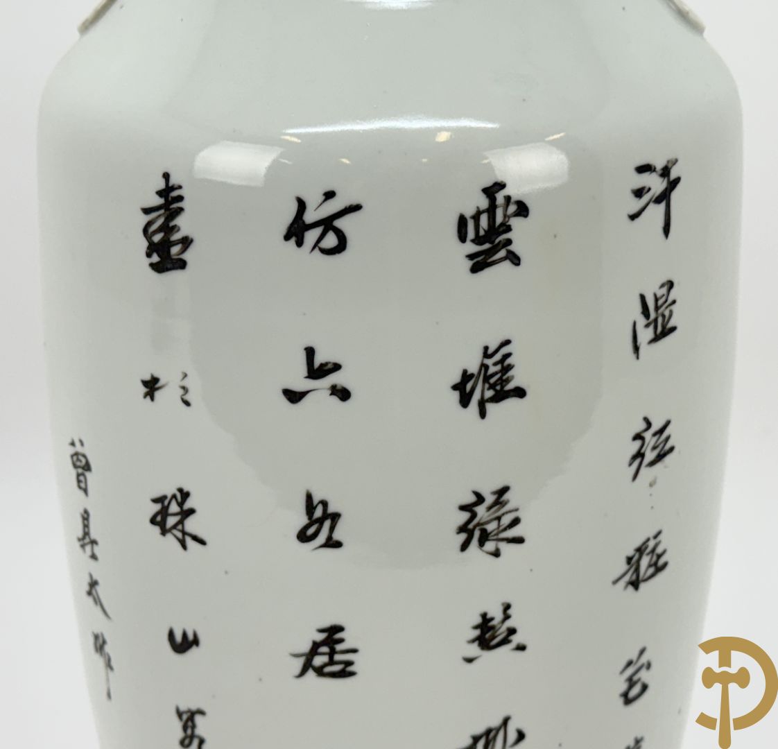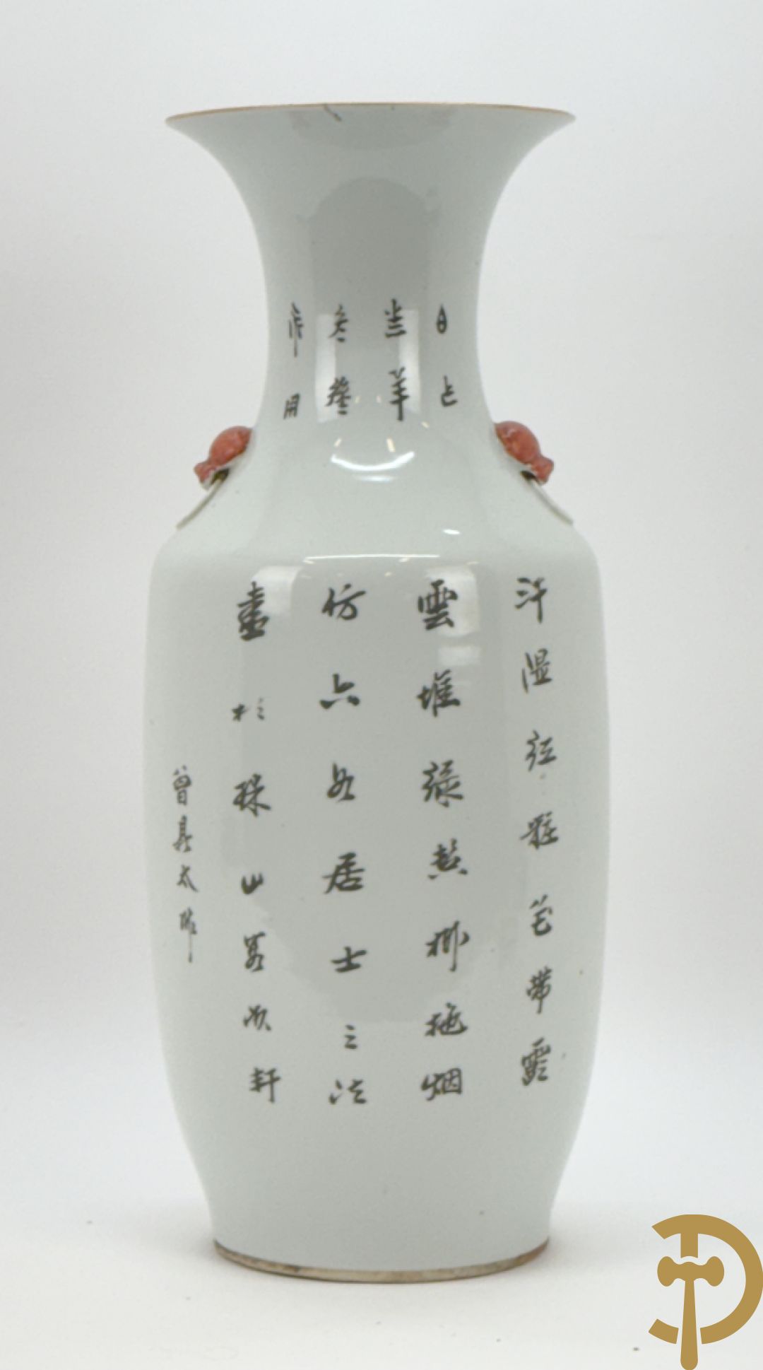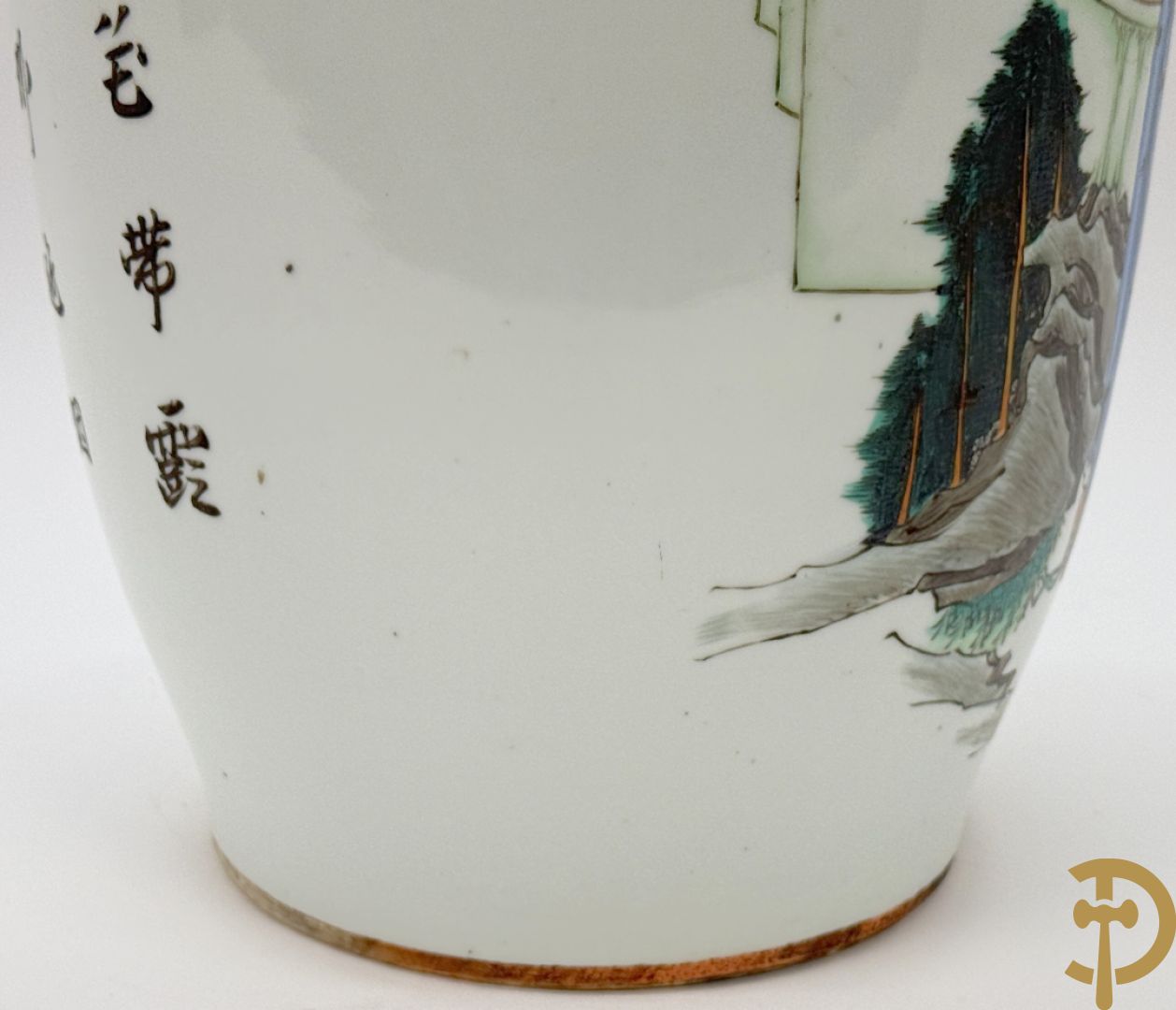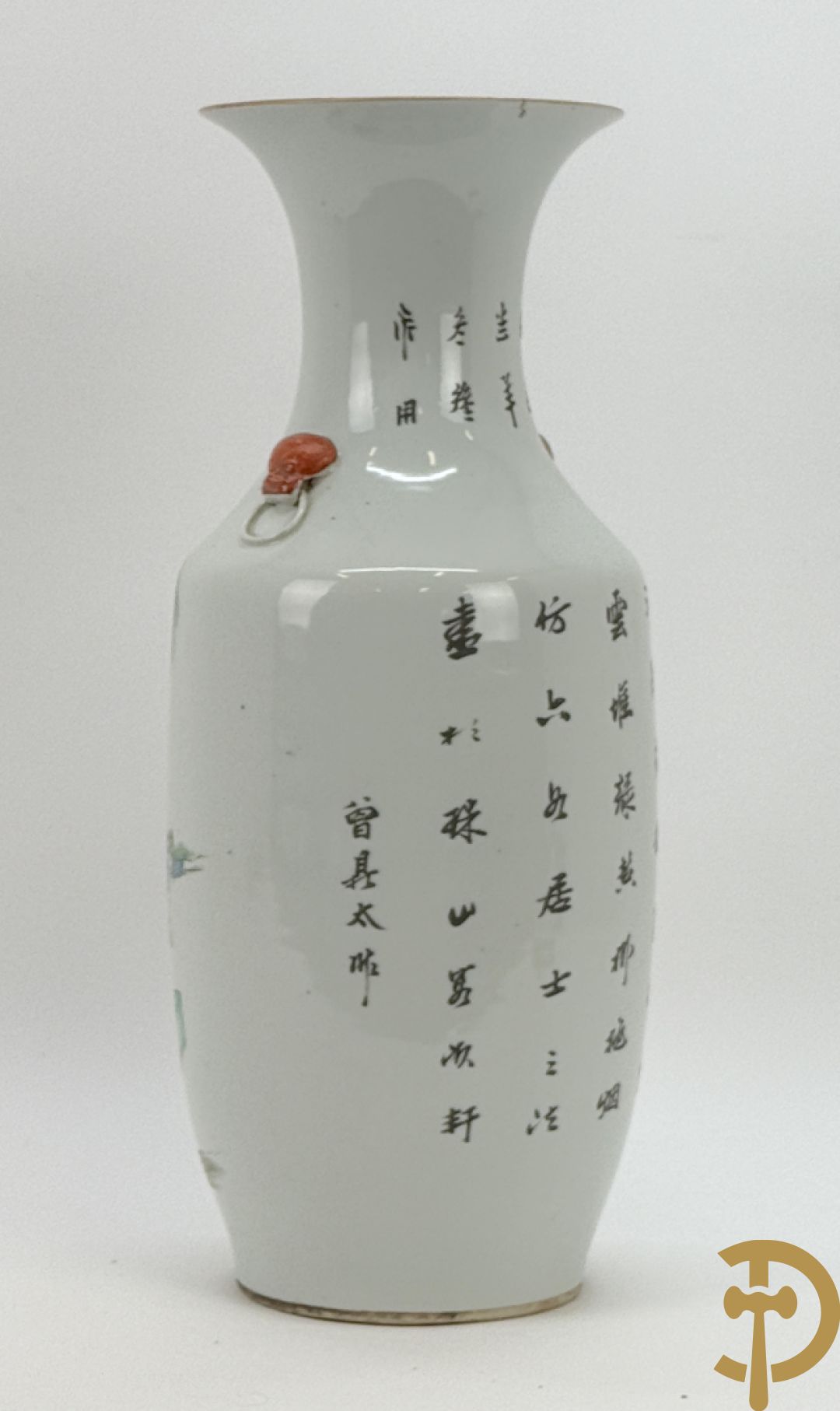LOT 17 - Chinese porseleinen vaas met decor van dames en kinderen - 2 fo honden met ringen opzij, bovenaan getekend