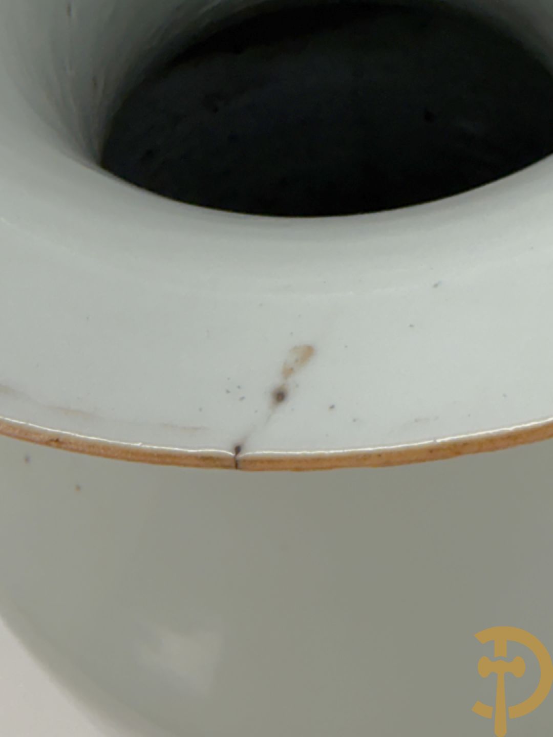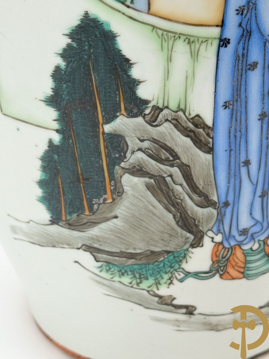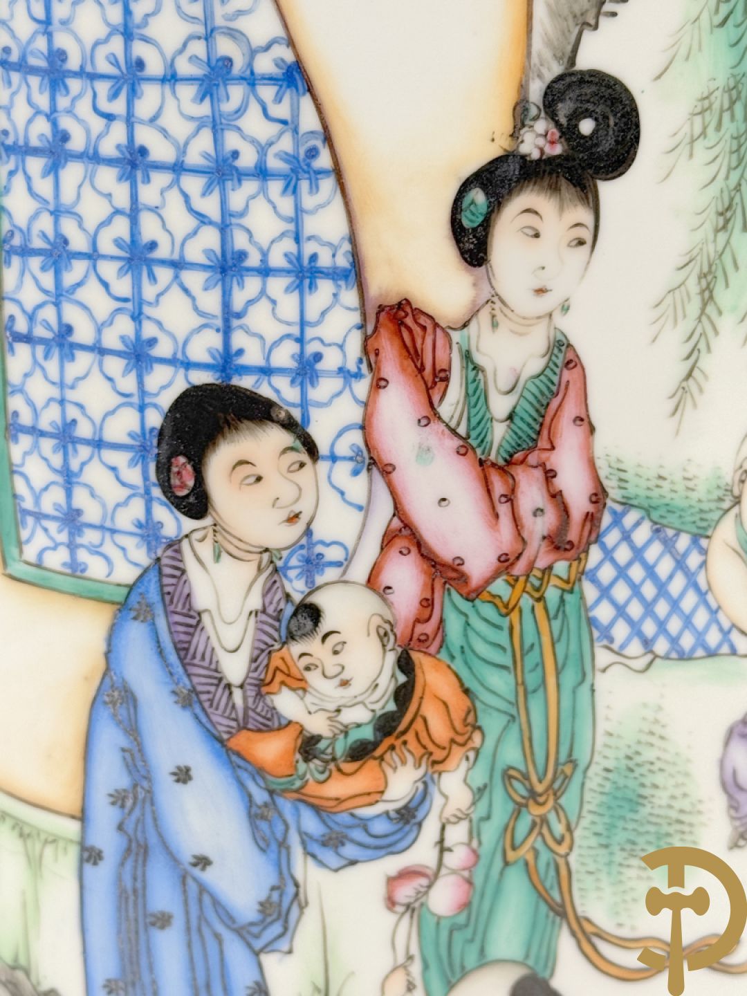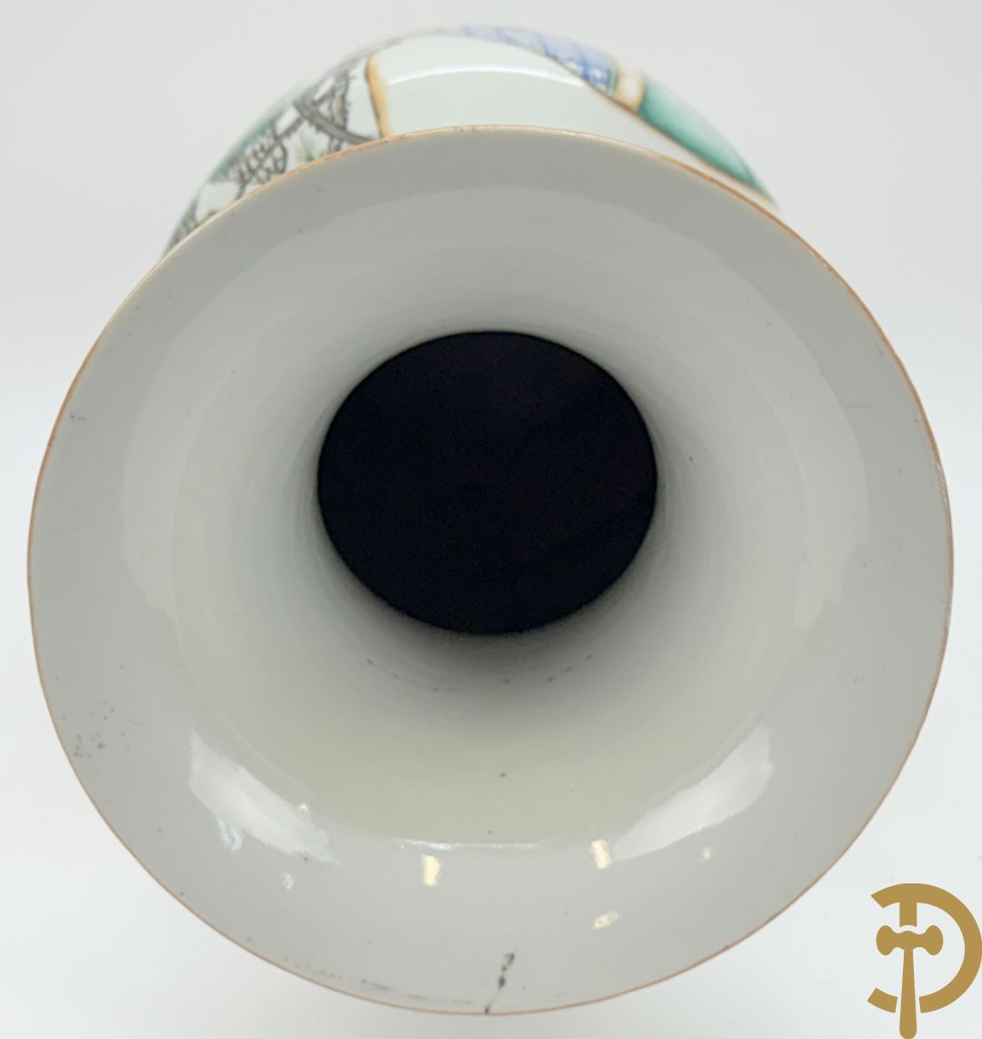 Chinese porseleinen vaas met decor van dames en kinderen - 2 fo honden met ringen opzij, bovenaan getekend