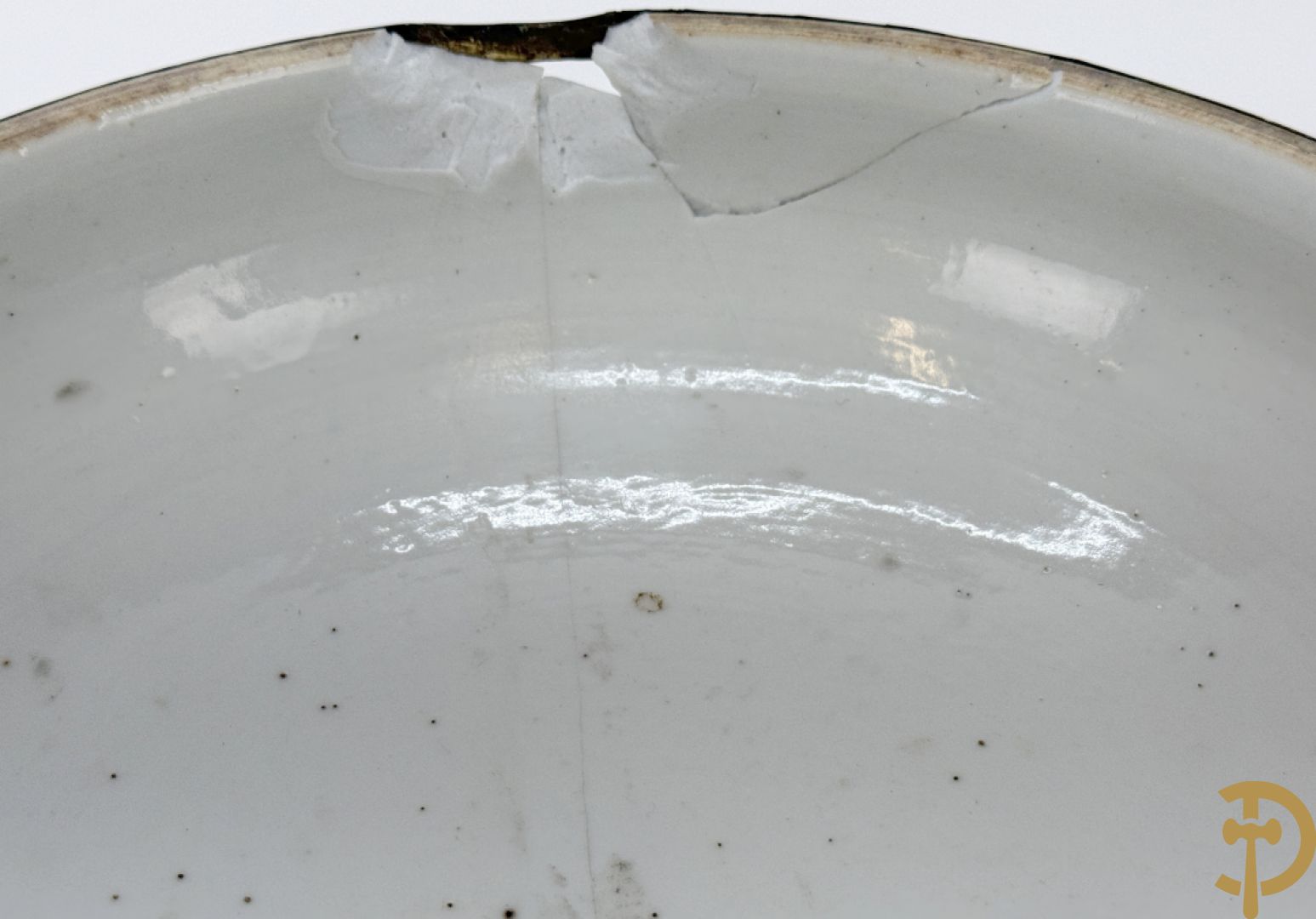 Hoogte coupe 10,5 cm. - Diameter 23 cm. schilfers aan rand + lijntje in bodem/ Hoogte 8 cm. - Diameter 15 cm. - Schilfers aan de rand / Hoogte 21,5 cm. - Diameter 21,5 cm. - Deksel gelijmd en schilfersEstimated: € 80 - 120