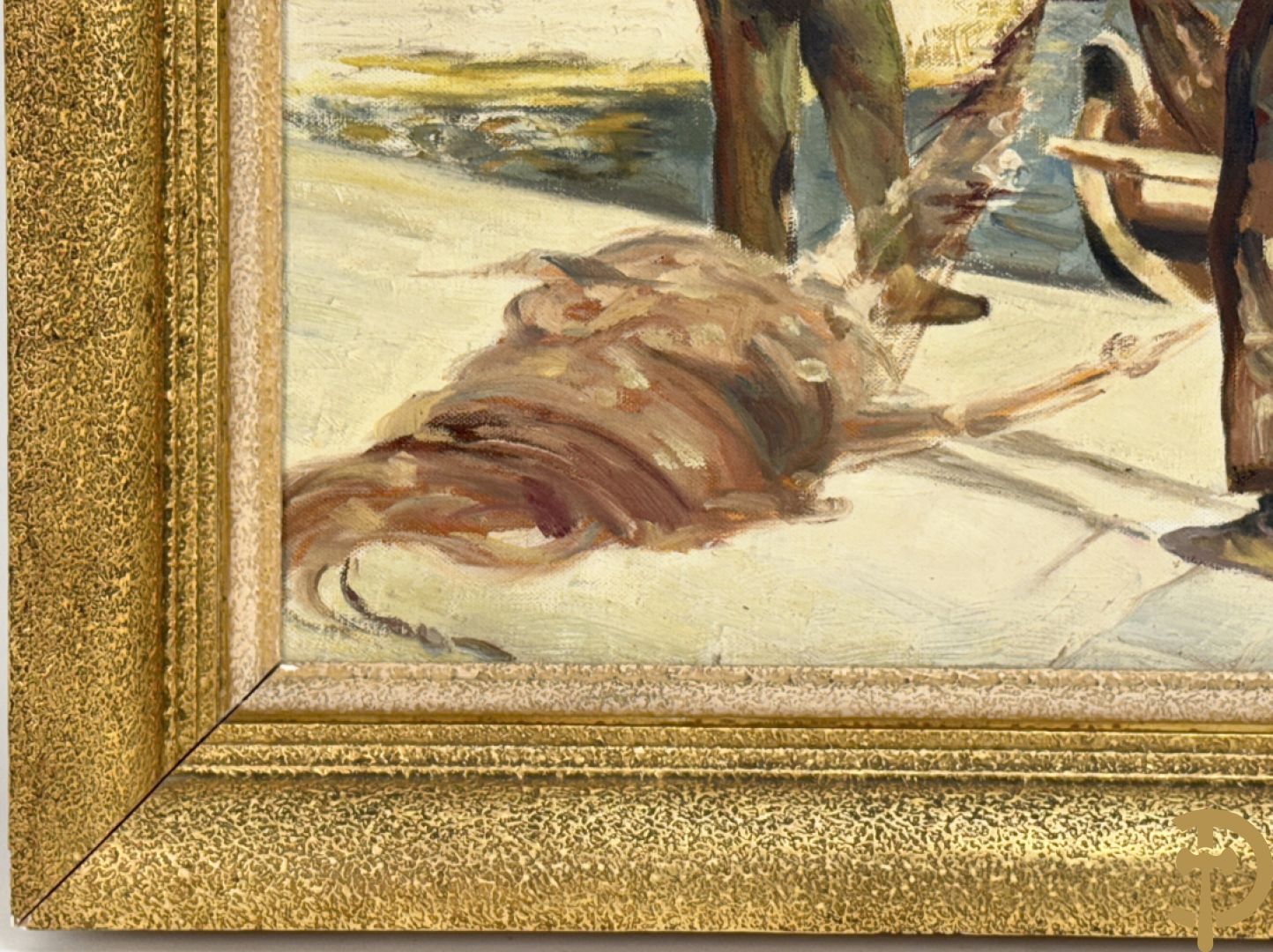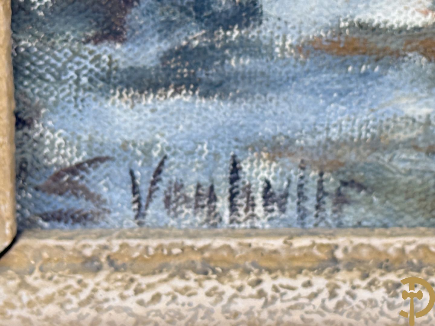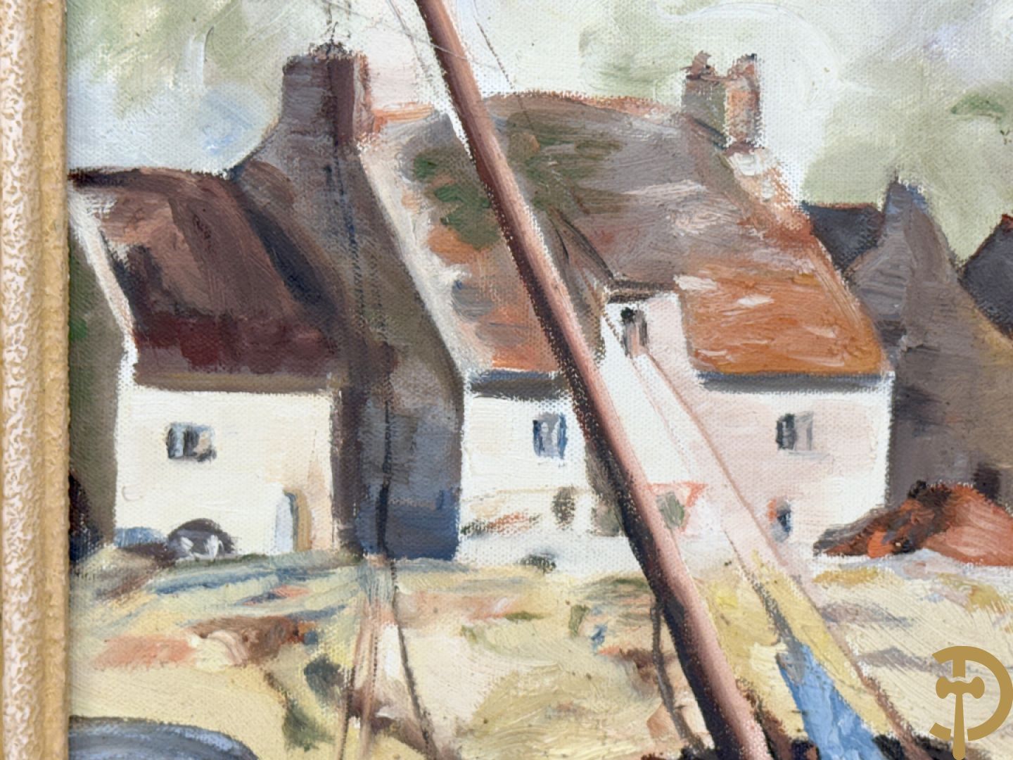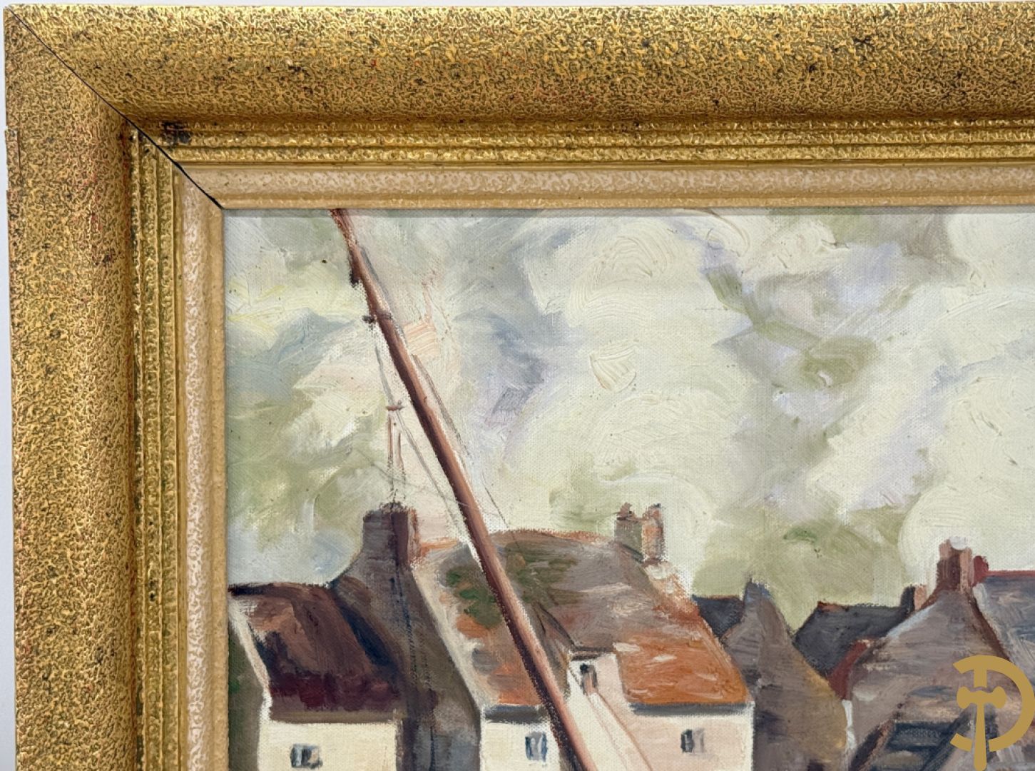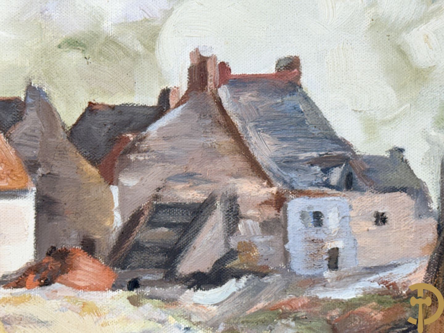 VANHULLE P. getekend 'Vissers met visnetten op de kade' olie op doek + VANHULLE getekend 'Sloepen op de kade met huizenzicht' olie op doek - pendant