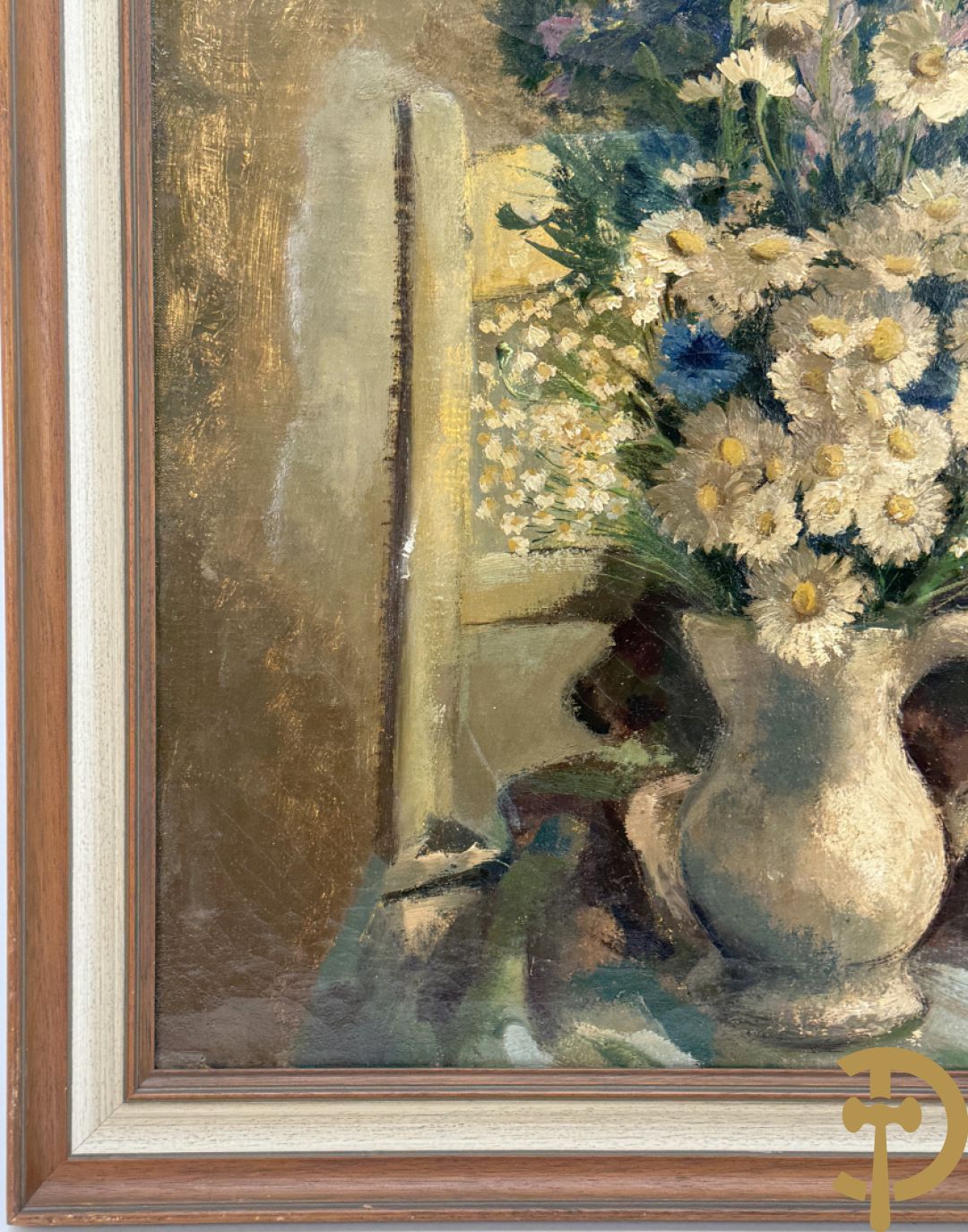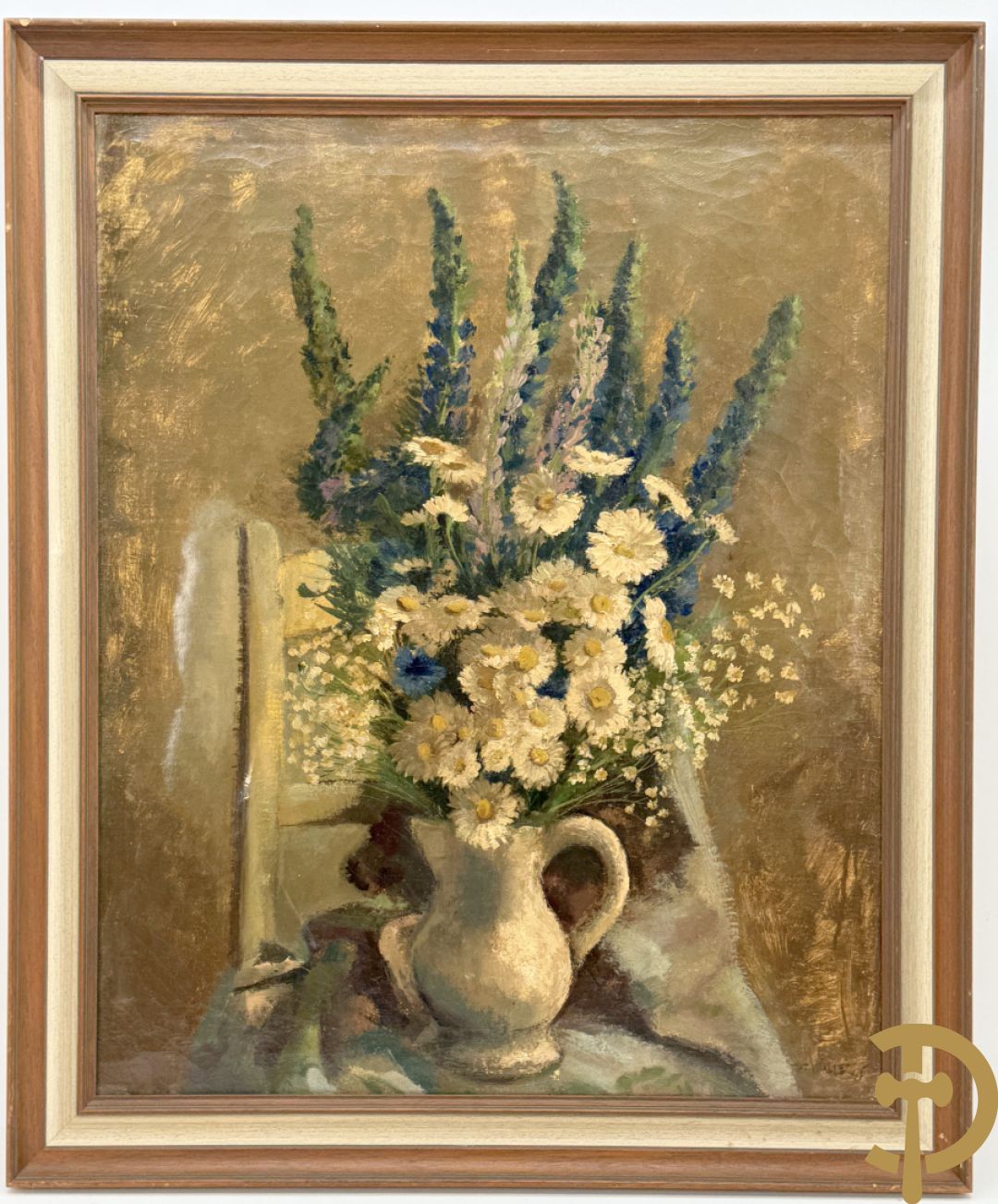 WALLET Taf getekend '45 'Bloemen in kan' olie op doek