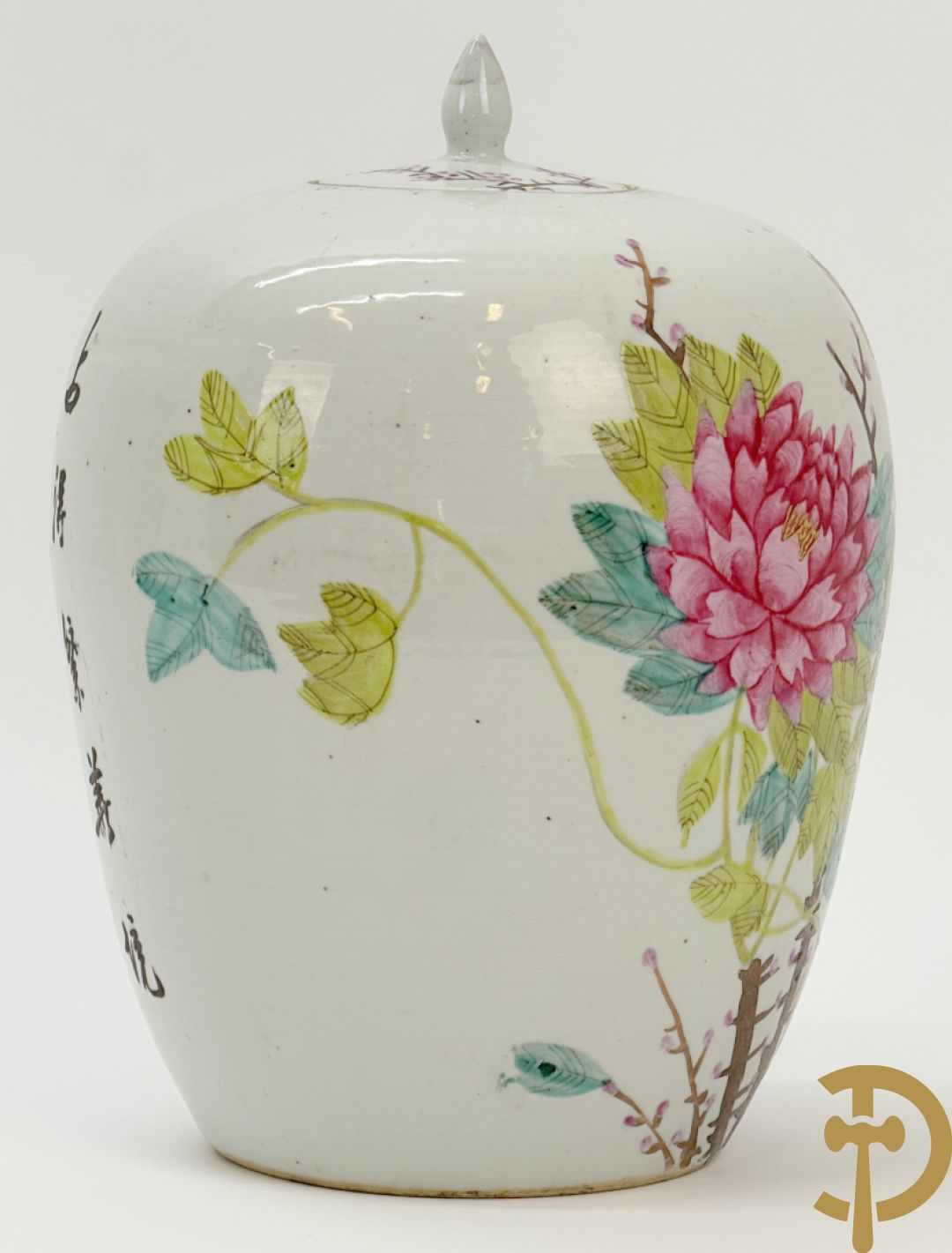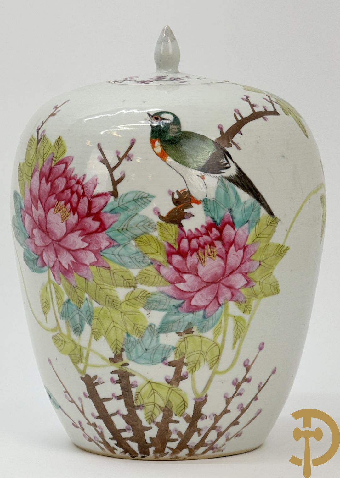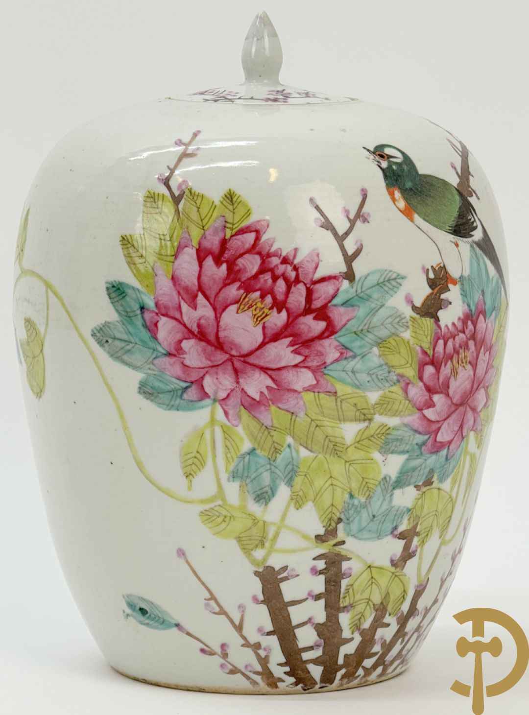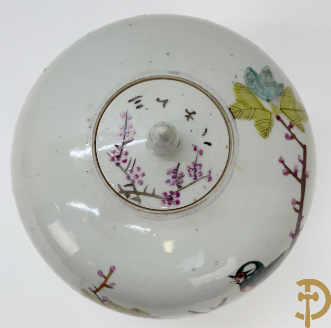 LOT 9 - Chinese porseleinen dekselpotiche met decor van pioenrozen en vogel