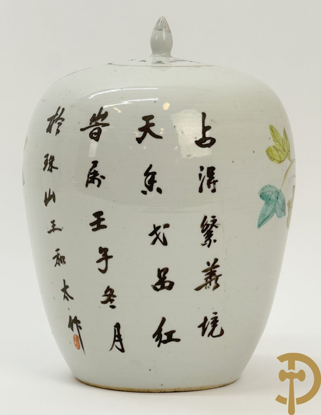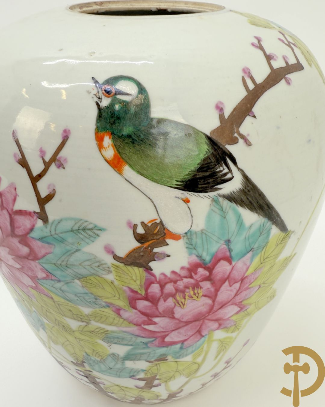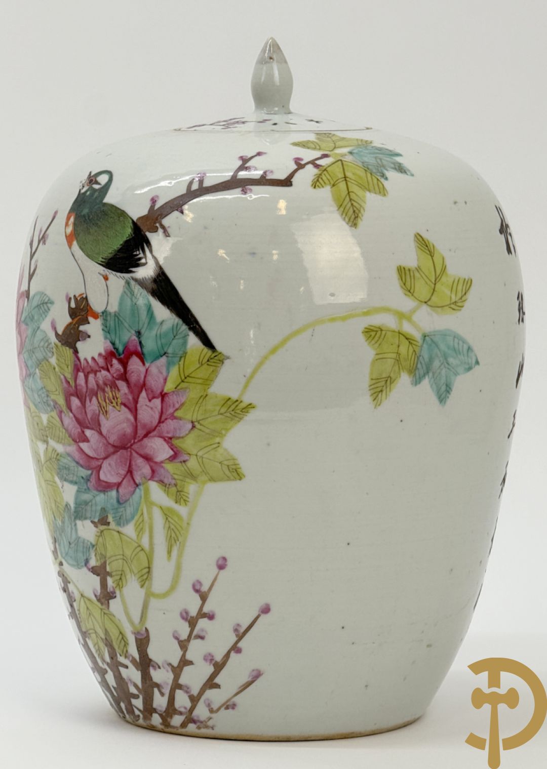 LOT 9 - Chinese porseleinen dekselpotiche met decor van pioenrozen en vogel