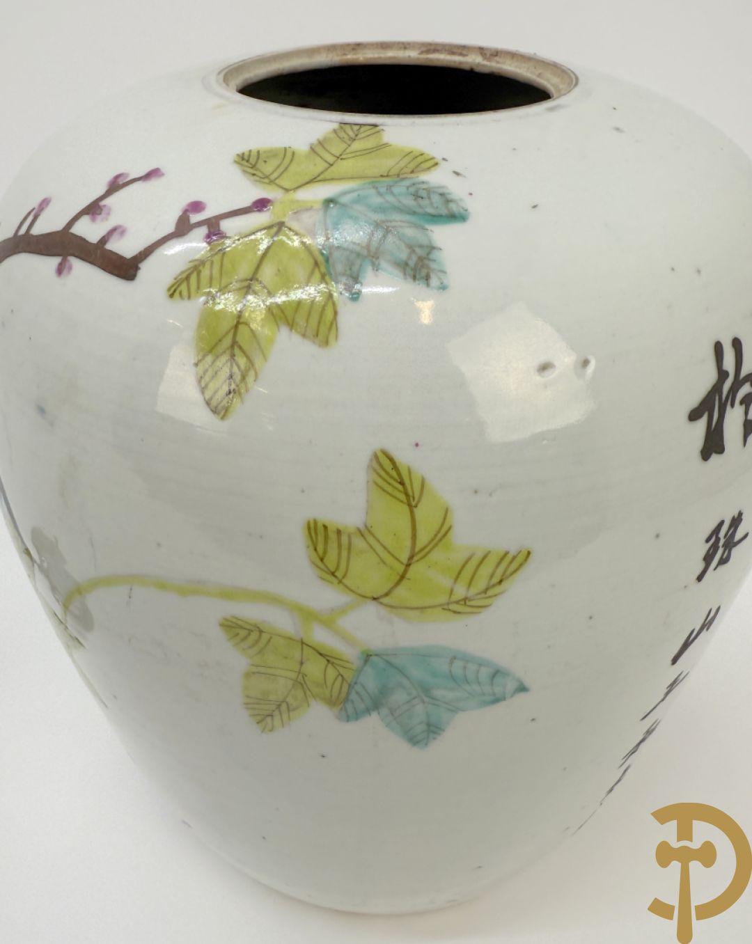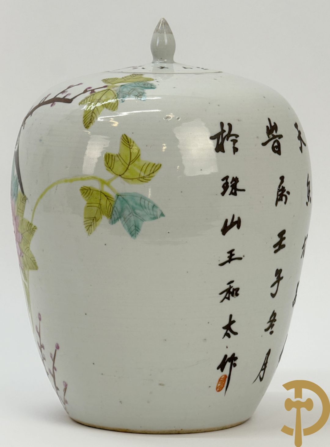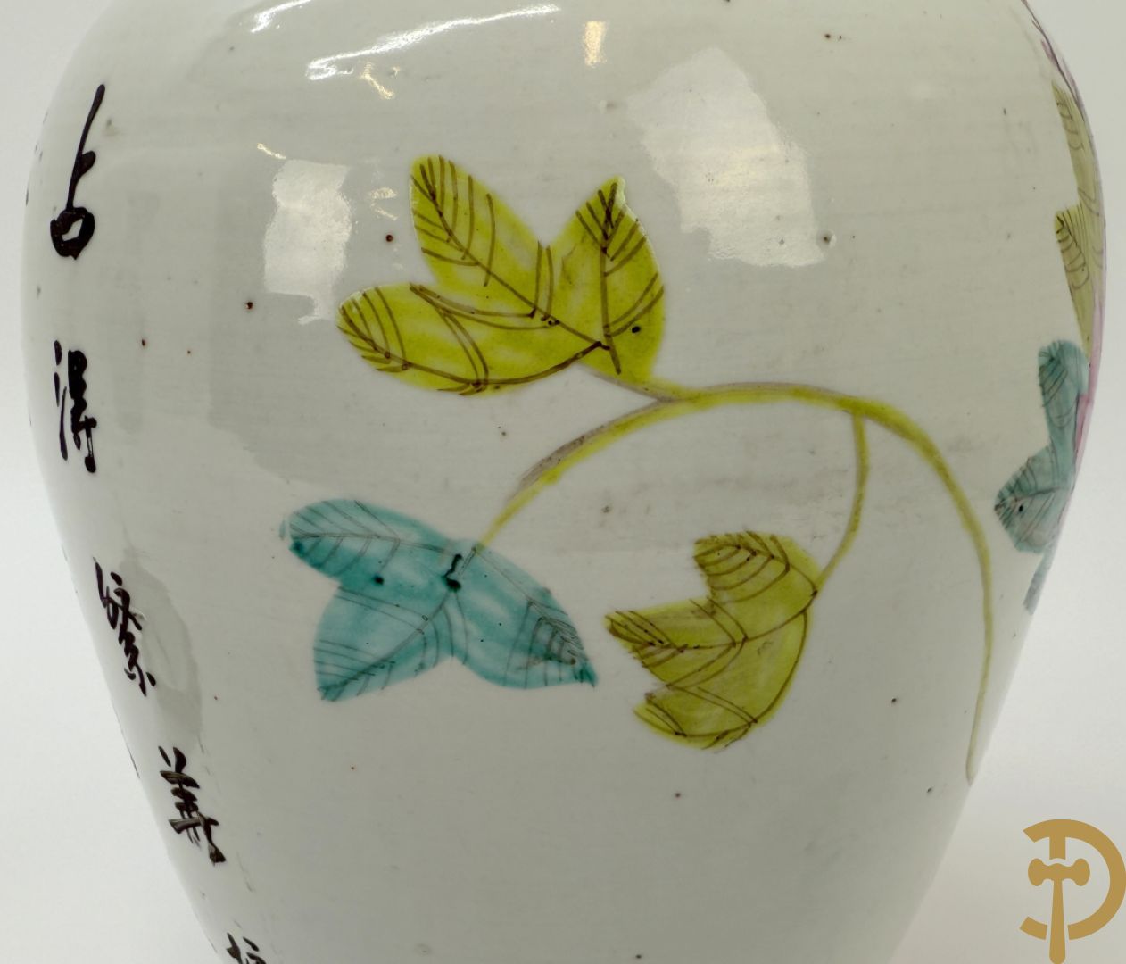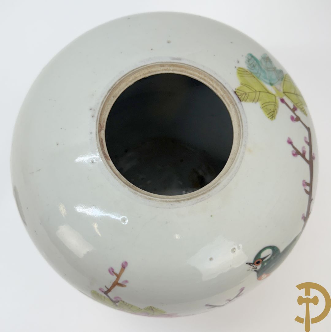 LOT 9 - Chinese porseleinen dekselpotiche met decor van pioenrozen en vogel