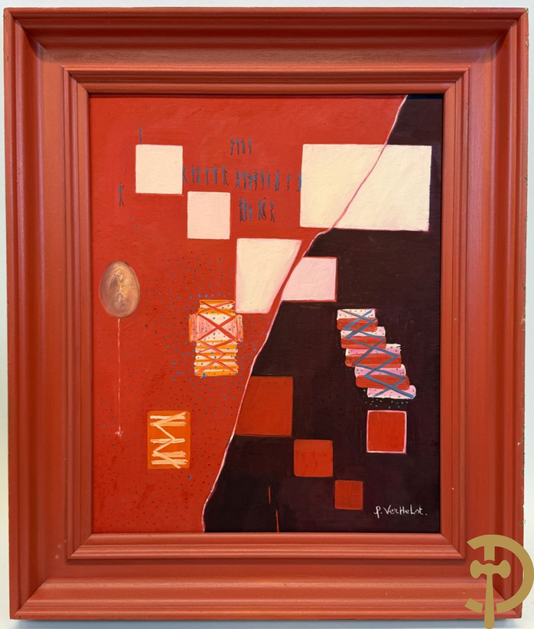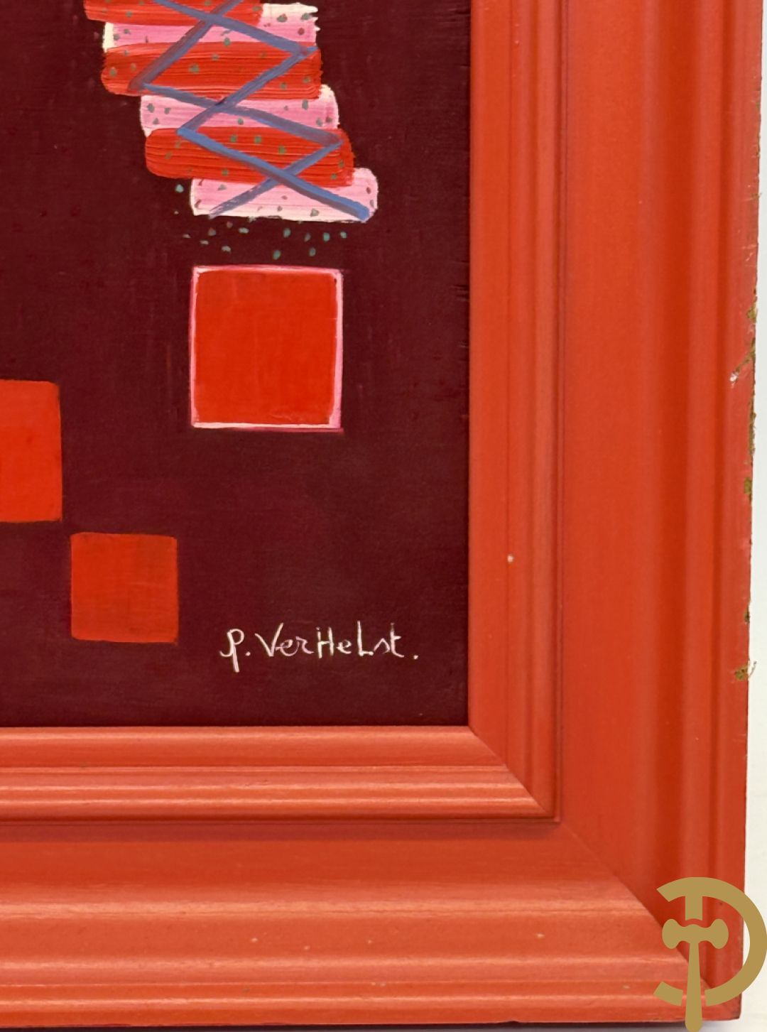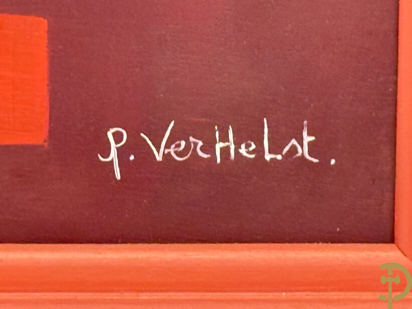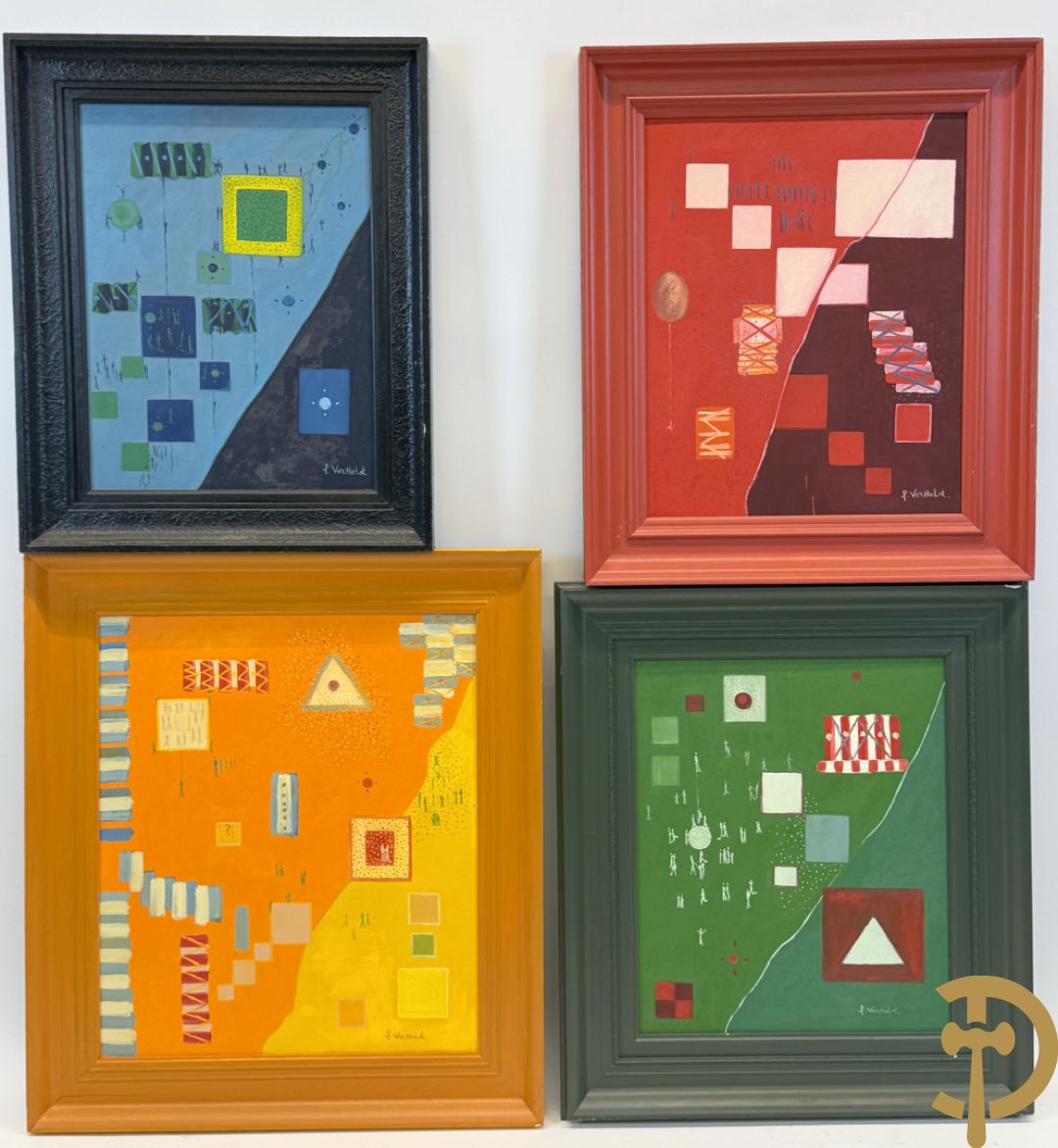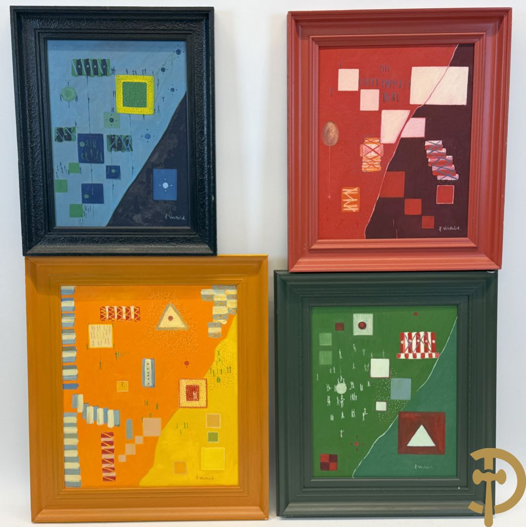 VERHELST P. getekend - Vier kleurrijke moderne werken in blauw, rood, groen en oranje - olie op paneel