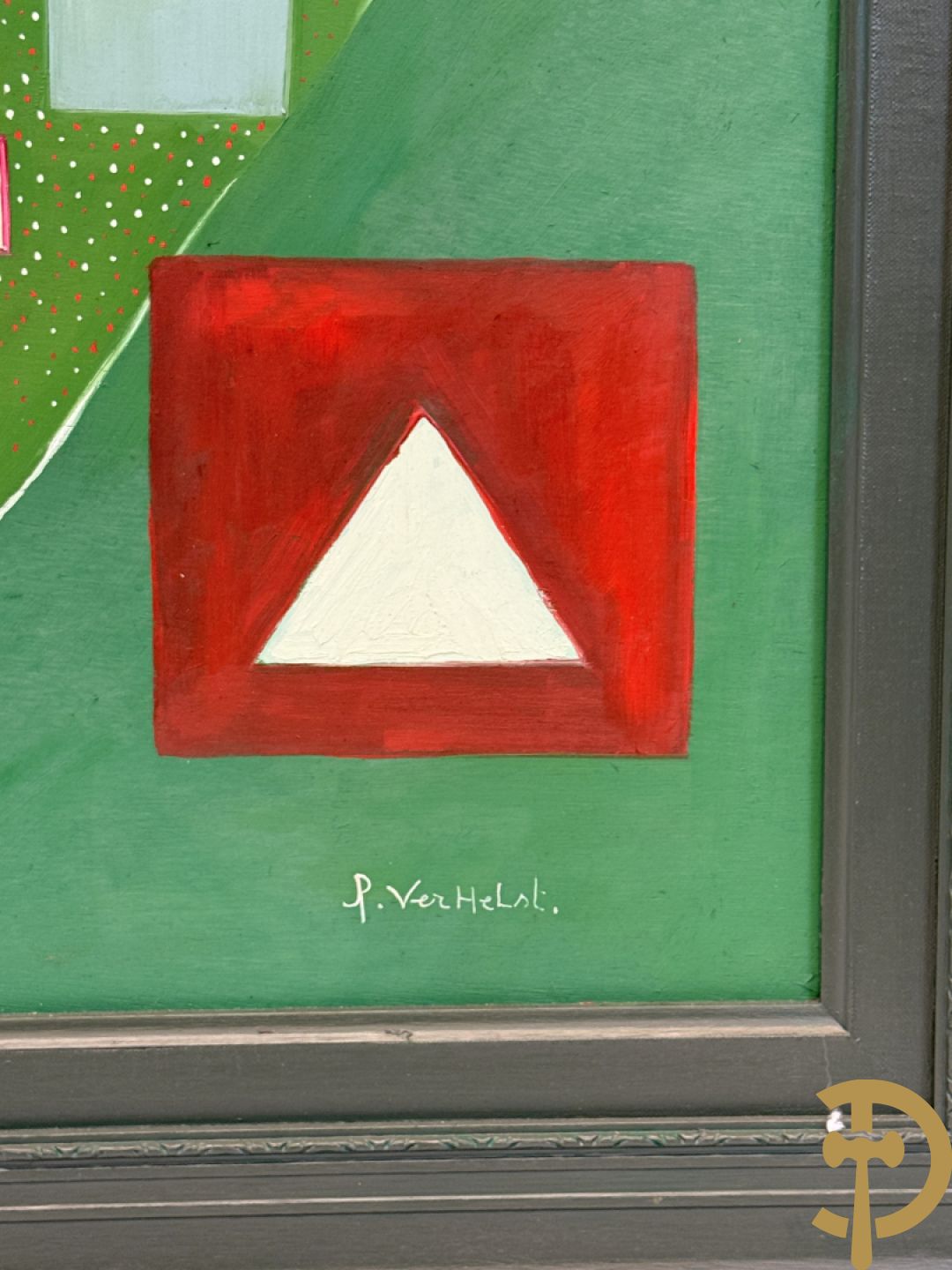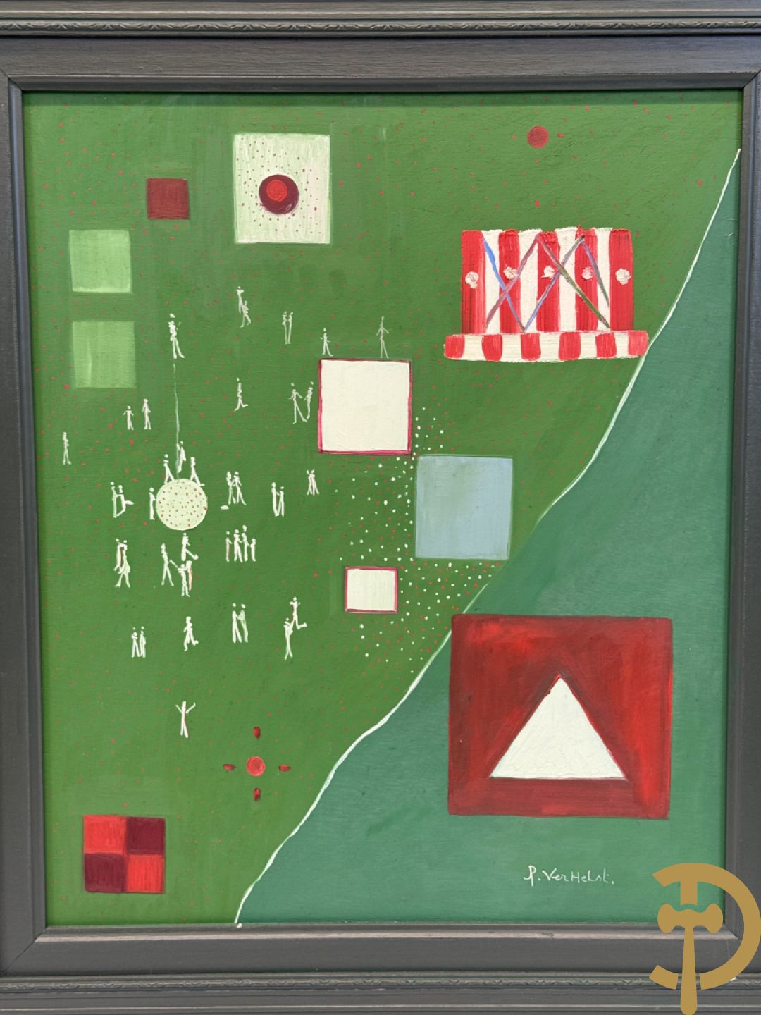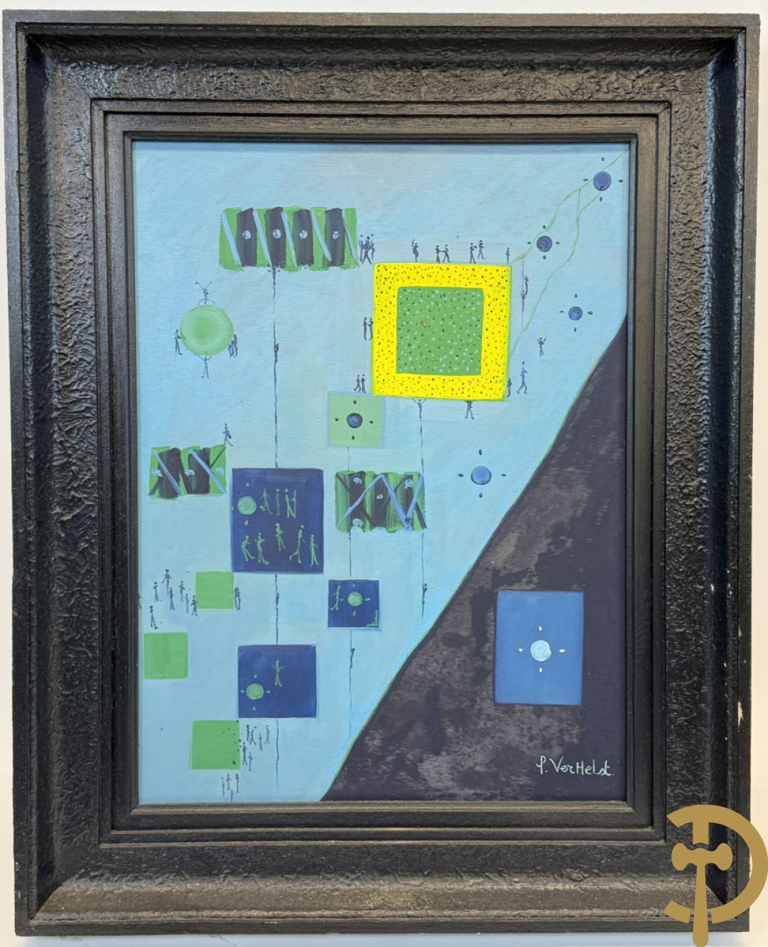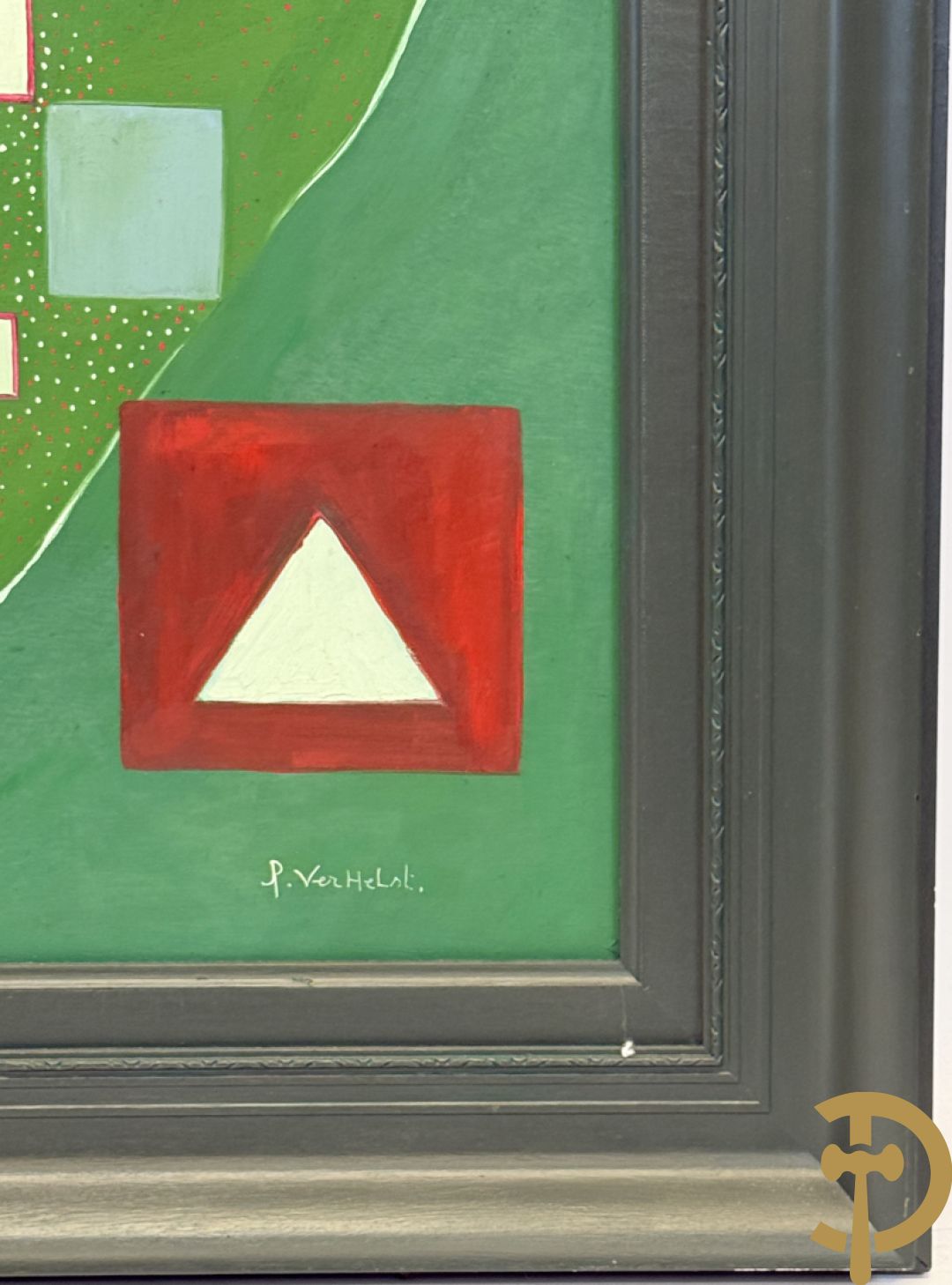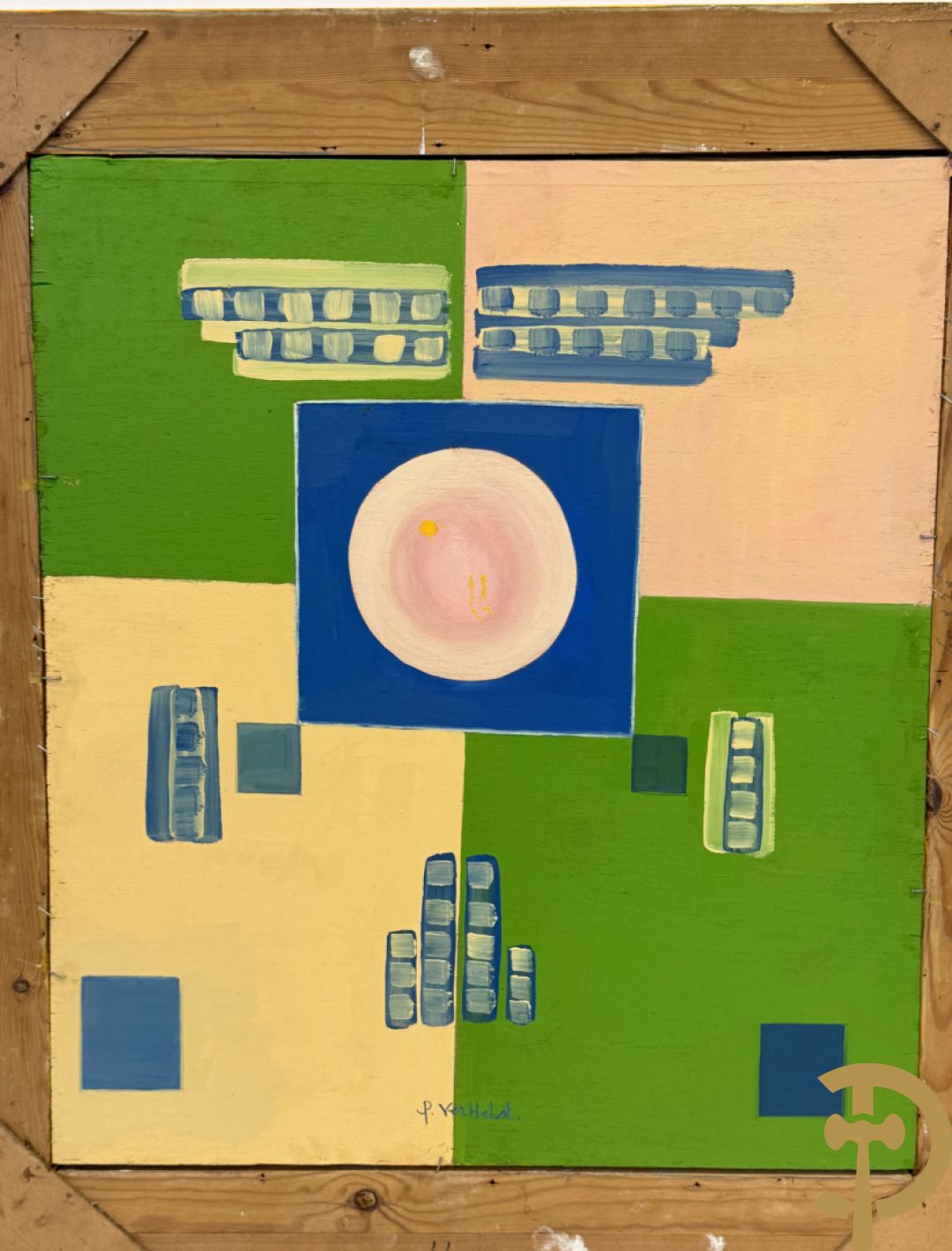 VERHELST P. getekend - Vier kleurrijke moderne werken in blauw, rood, groen en oranje - olie op paneel