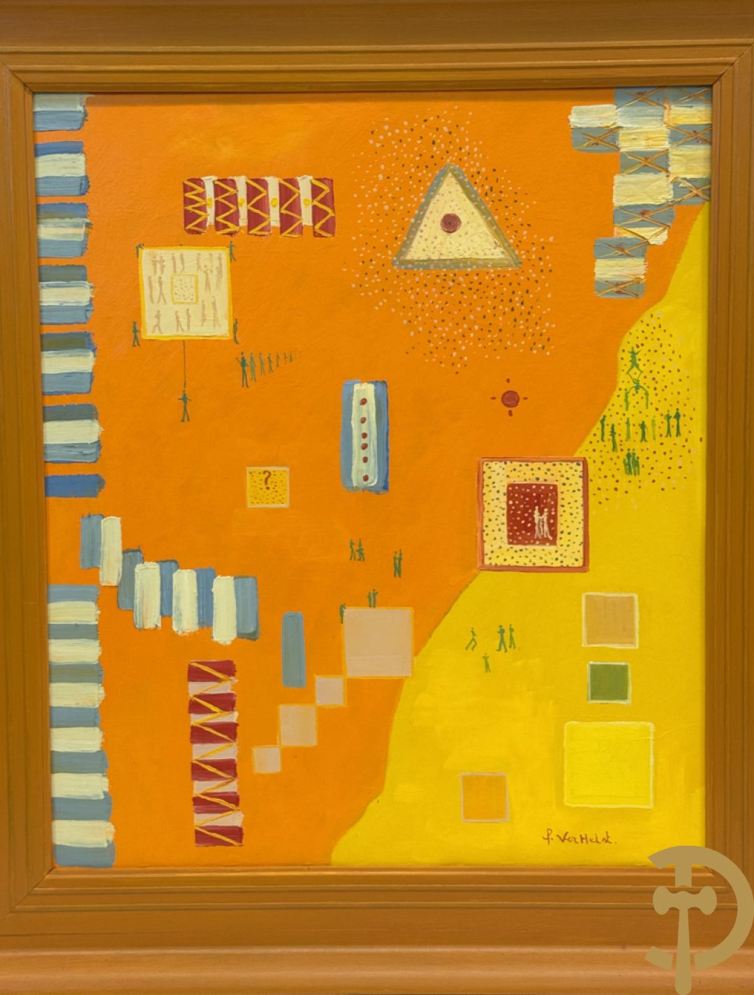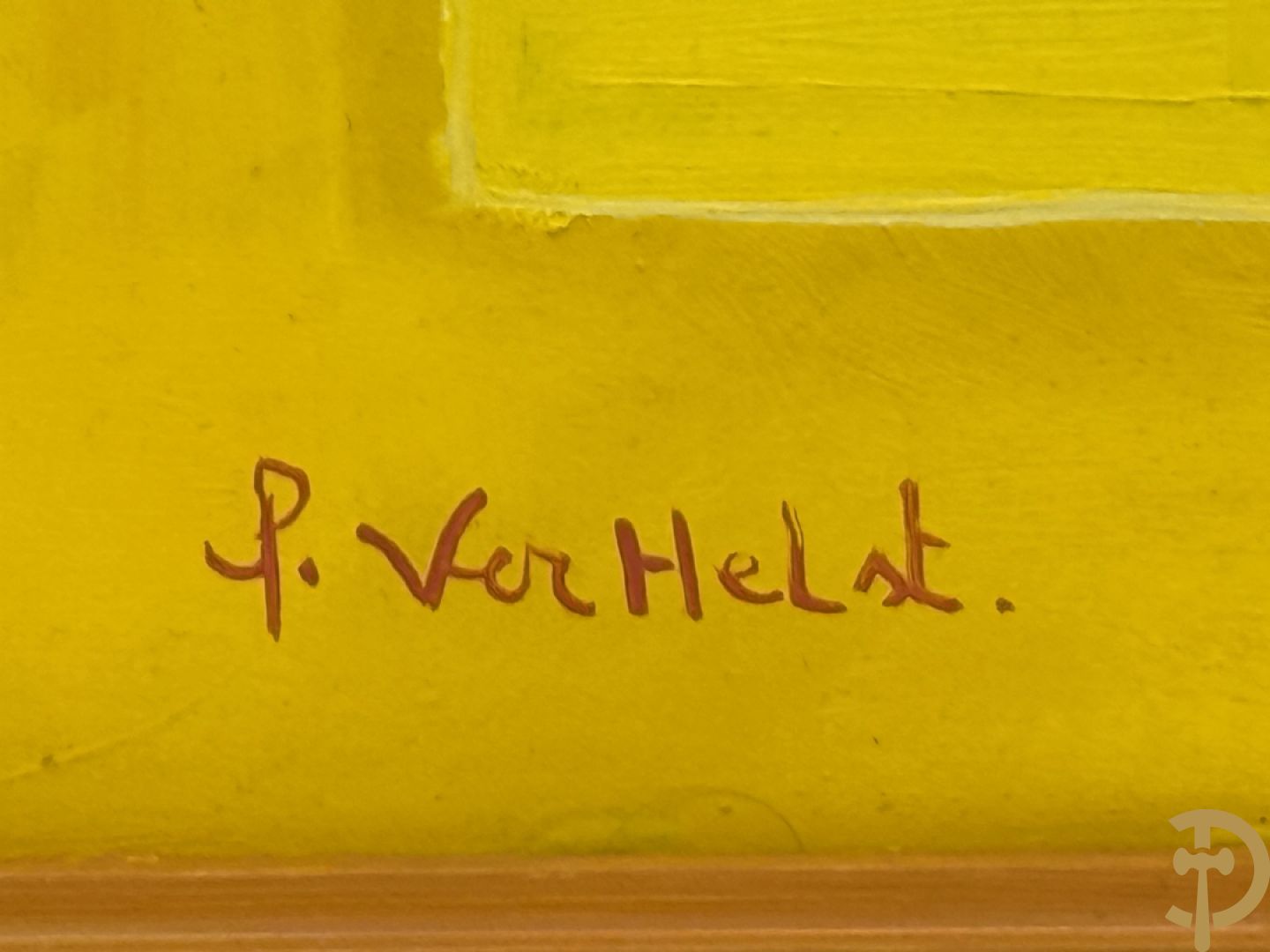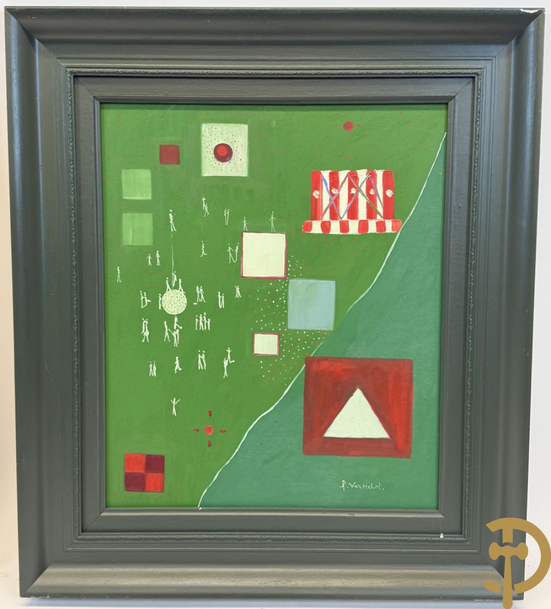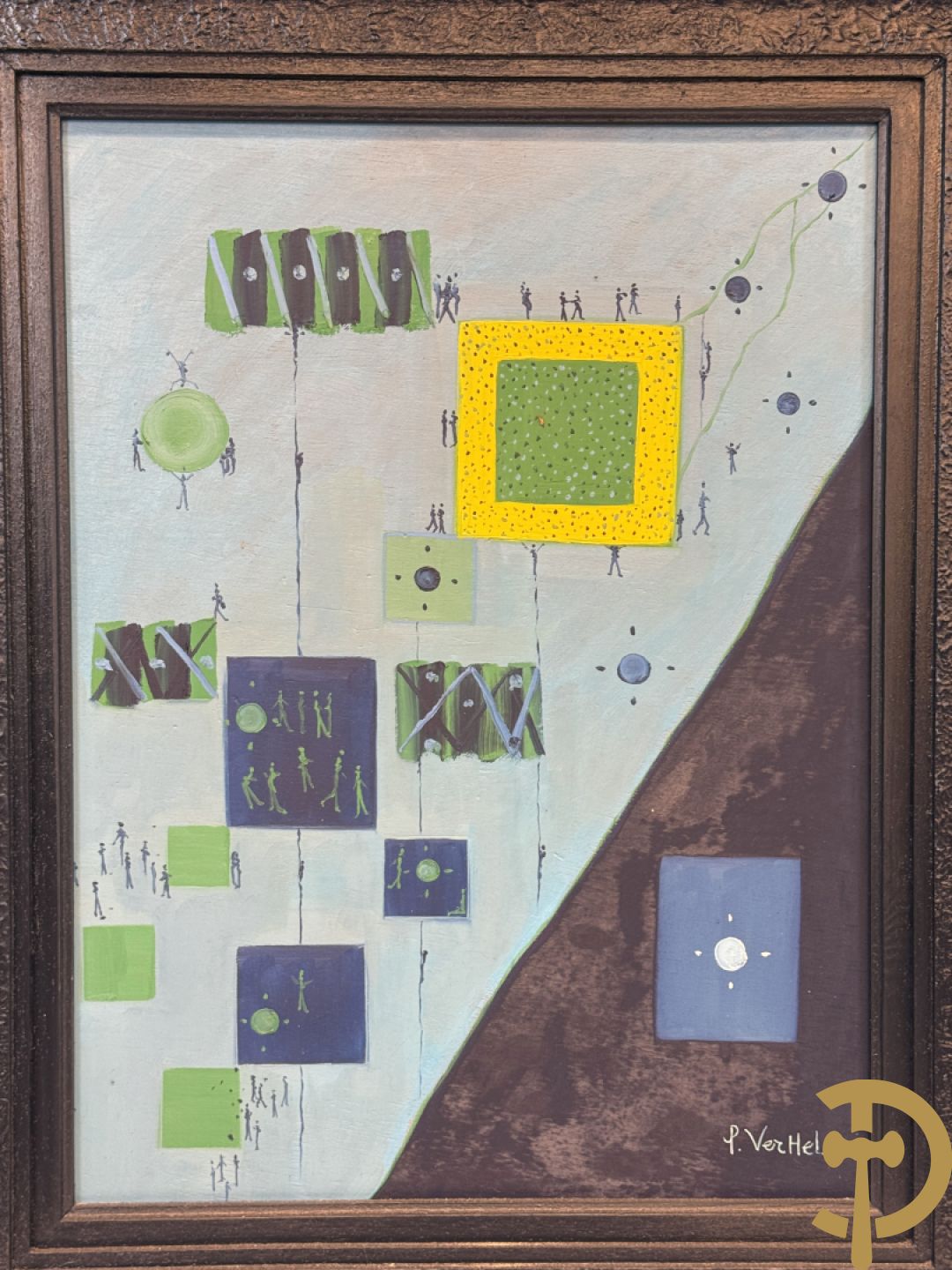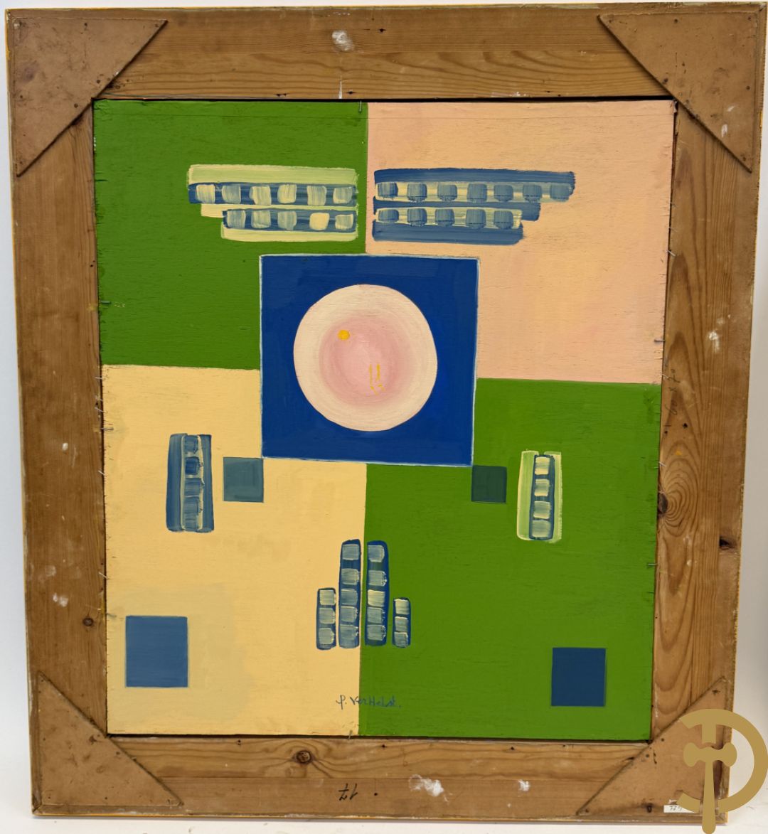 VERHELST P. getekend - Vier kleurrijke moderne werken in blauw, rood, groen en oranje - olie op paneel