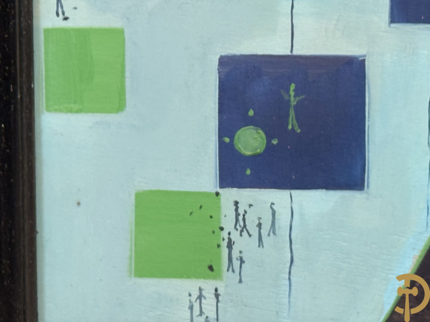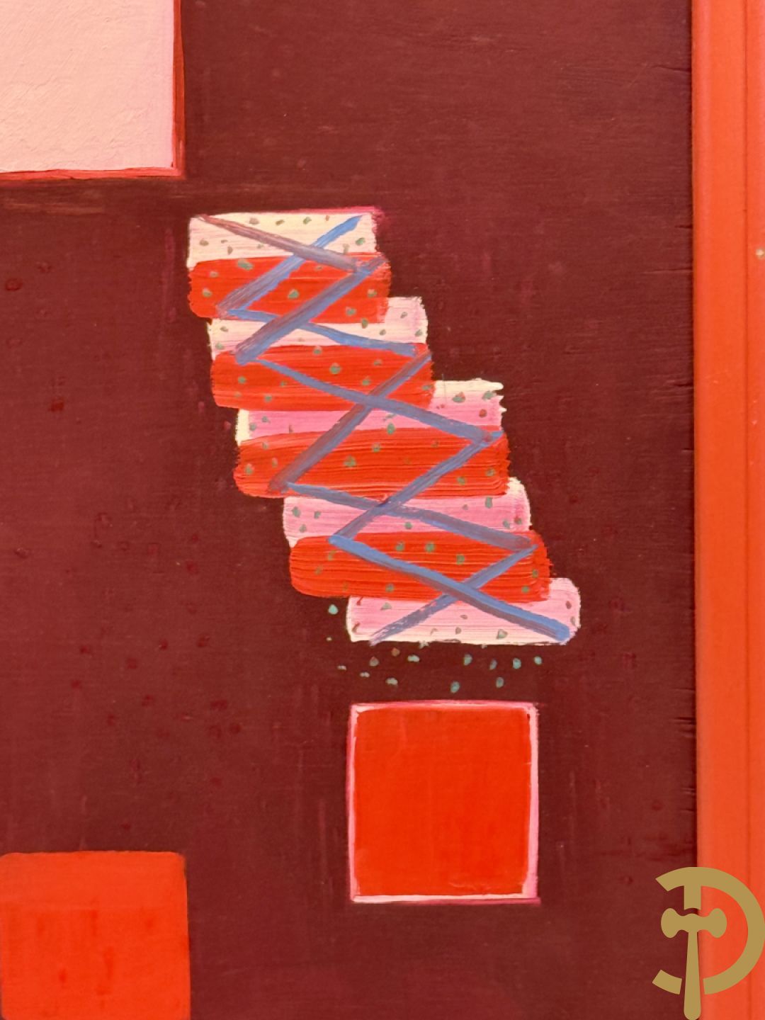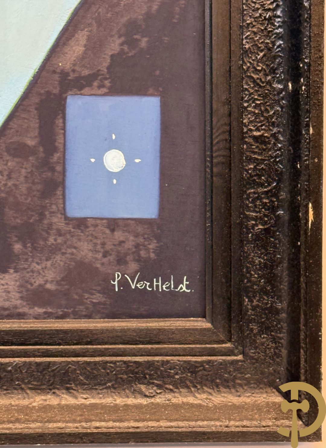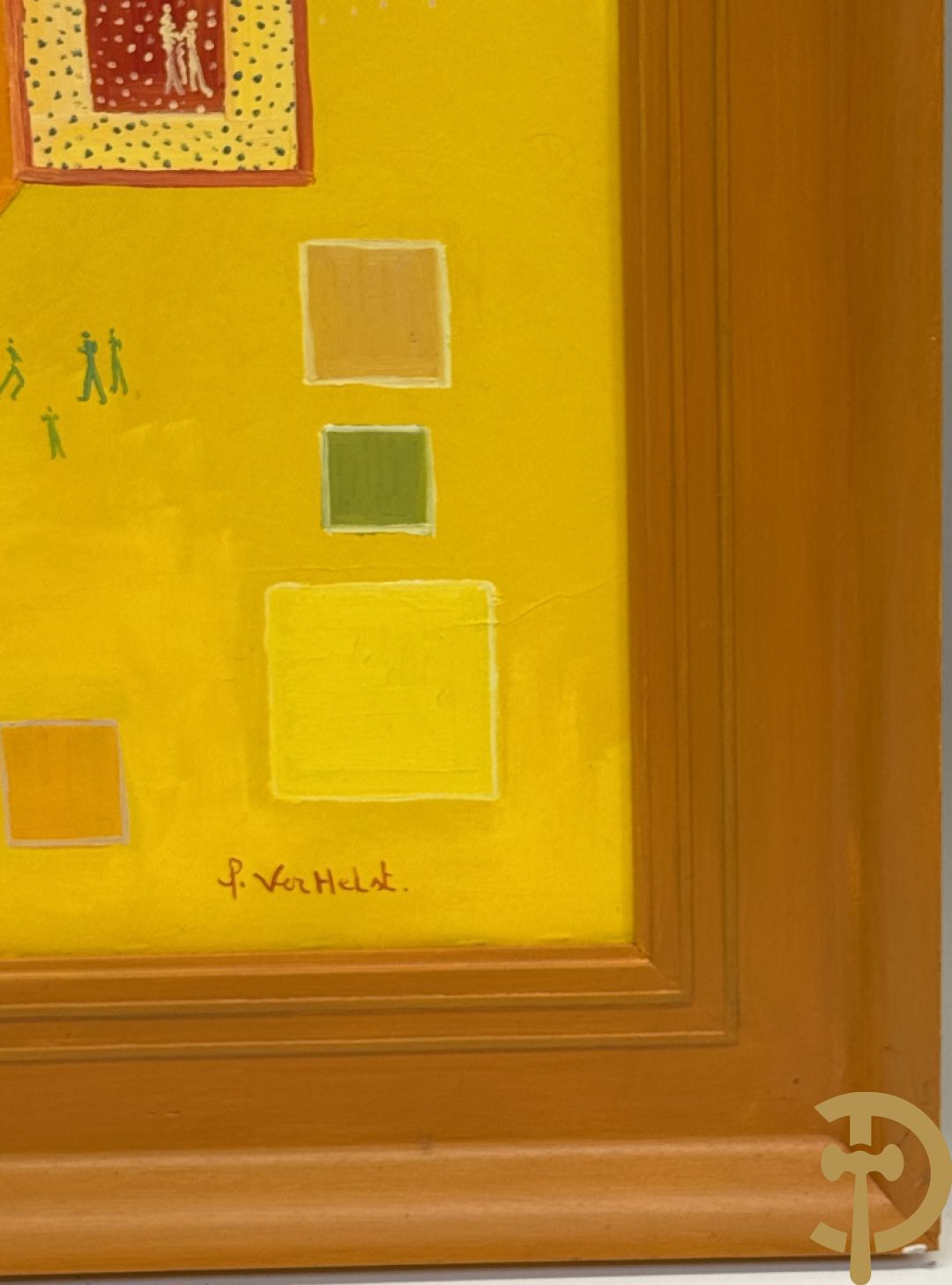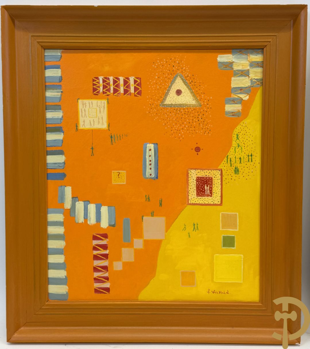 VERHELST P. getekend - Vier kleurrijke moderne werken in blauw, rood, groen en oranje - olie op paneel