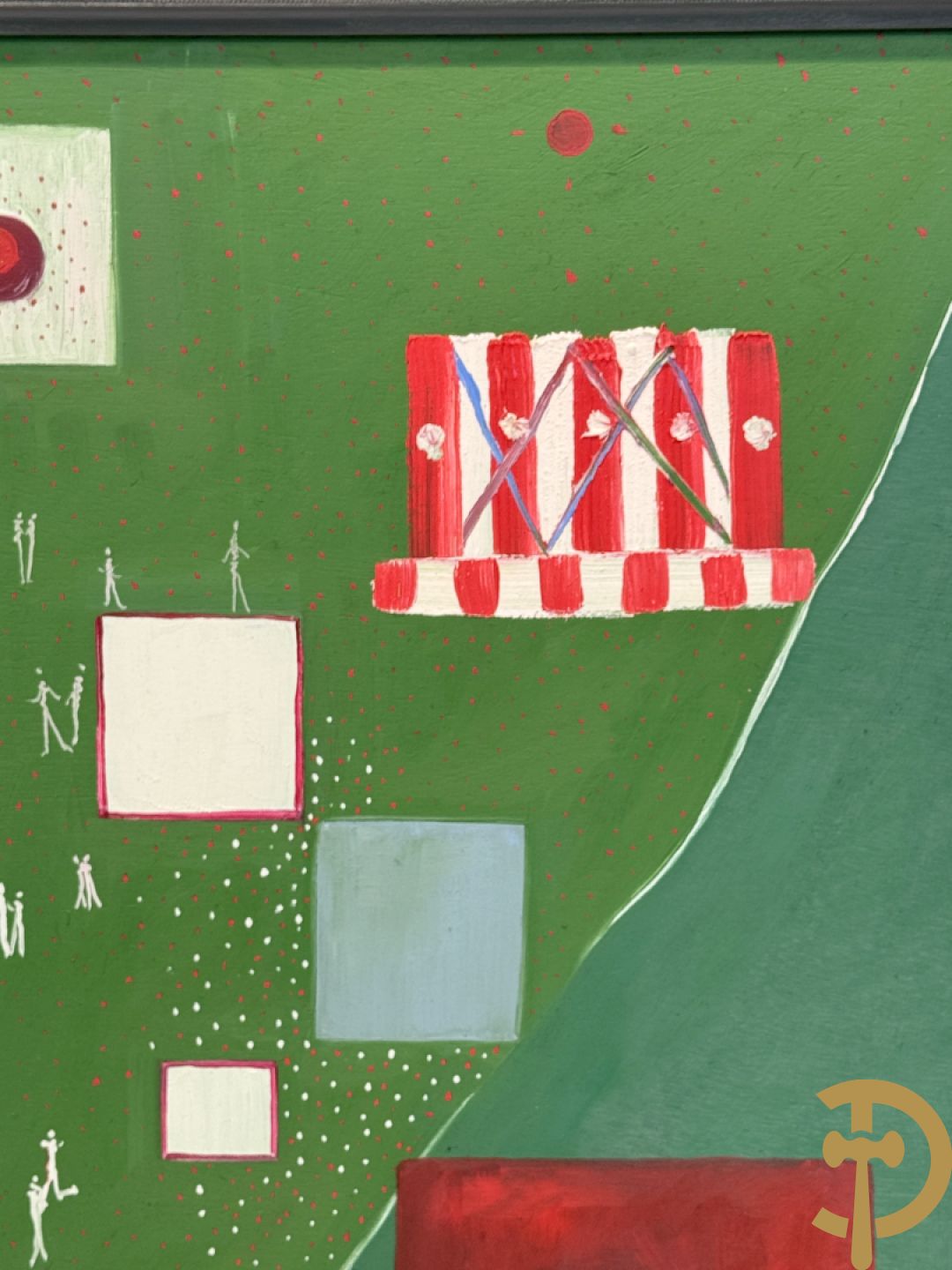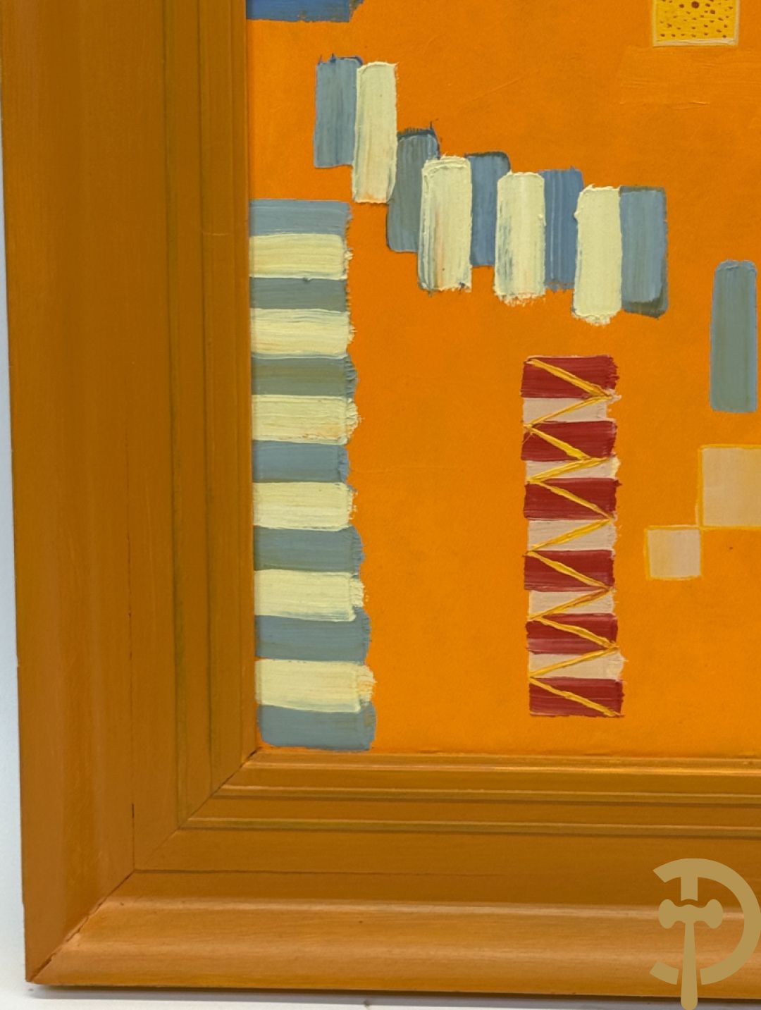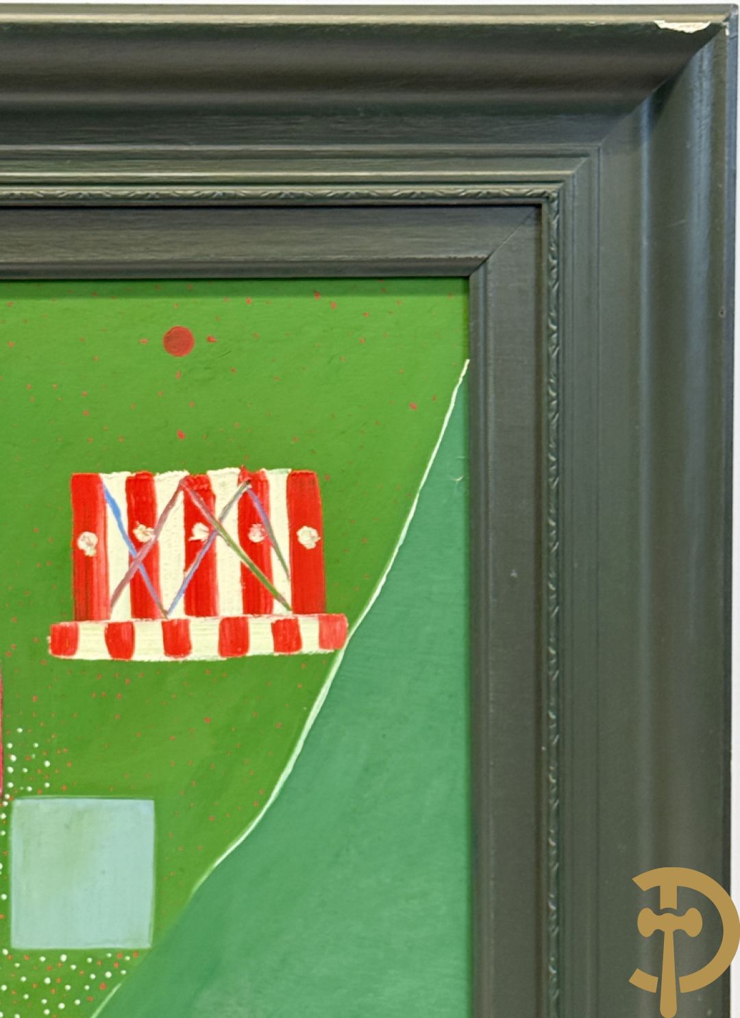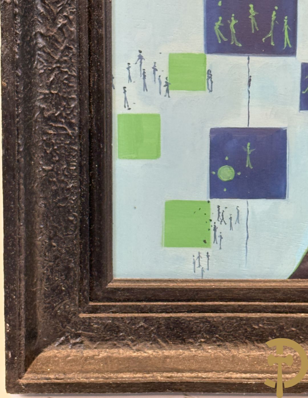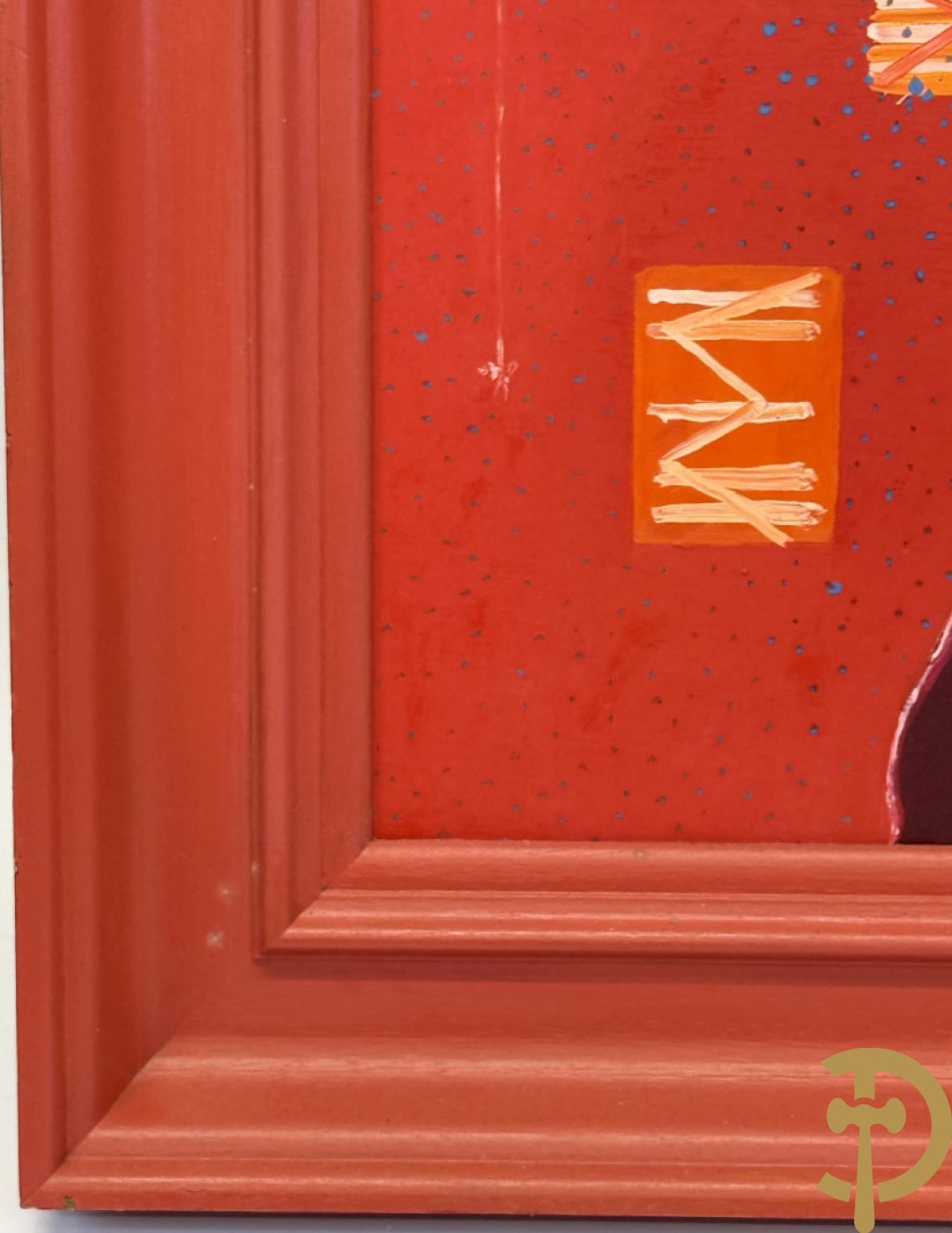 VERHELST P. getekend - Vier kleurrijke moderne werken in blauw, rood, groen en oranje - olie op paneel