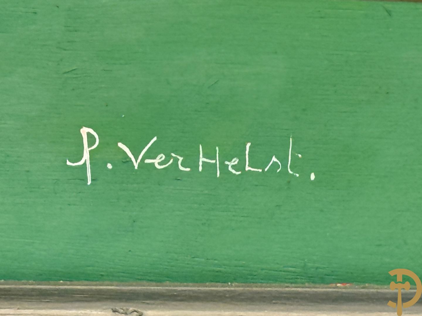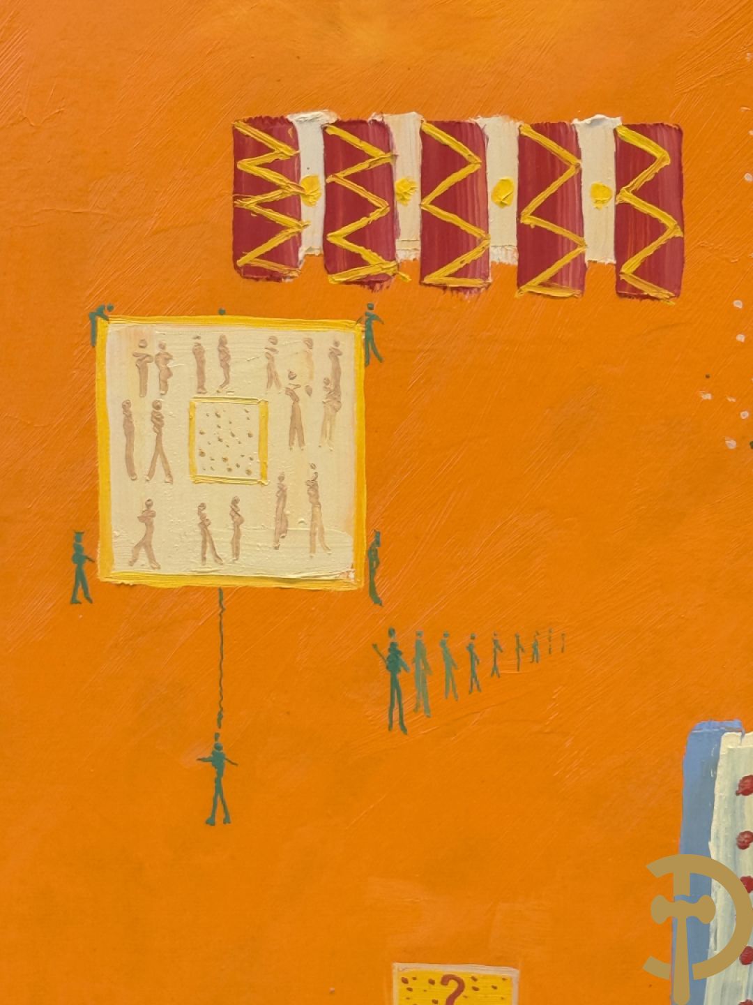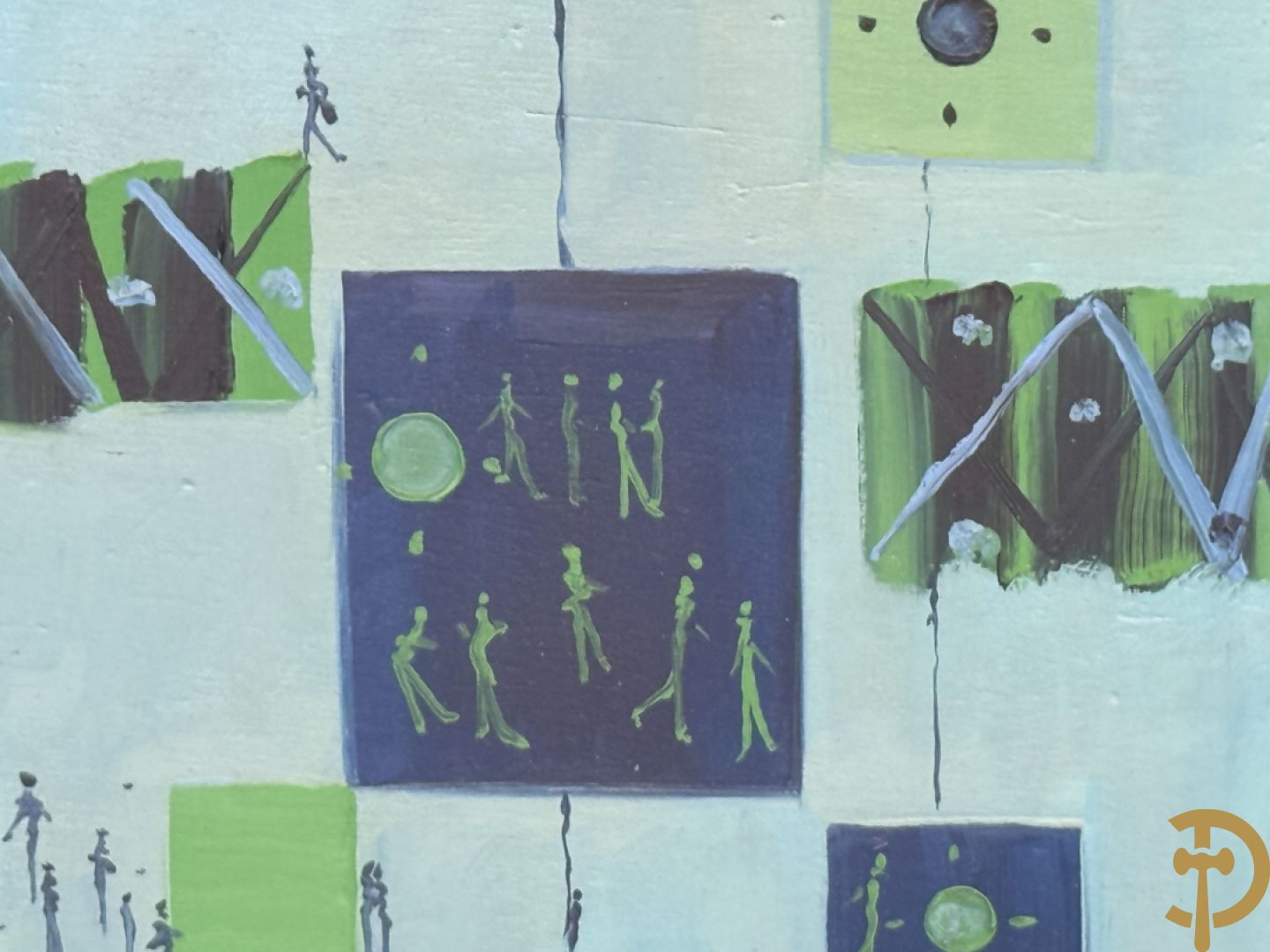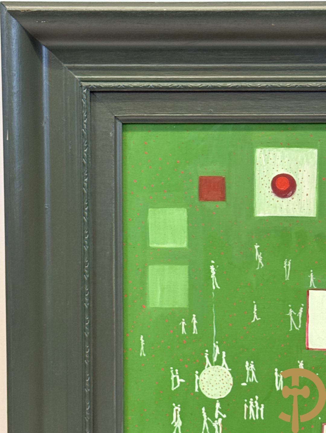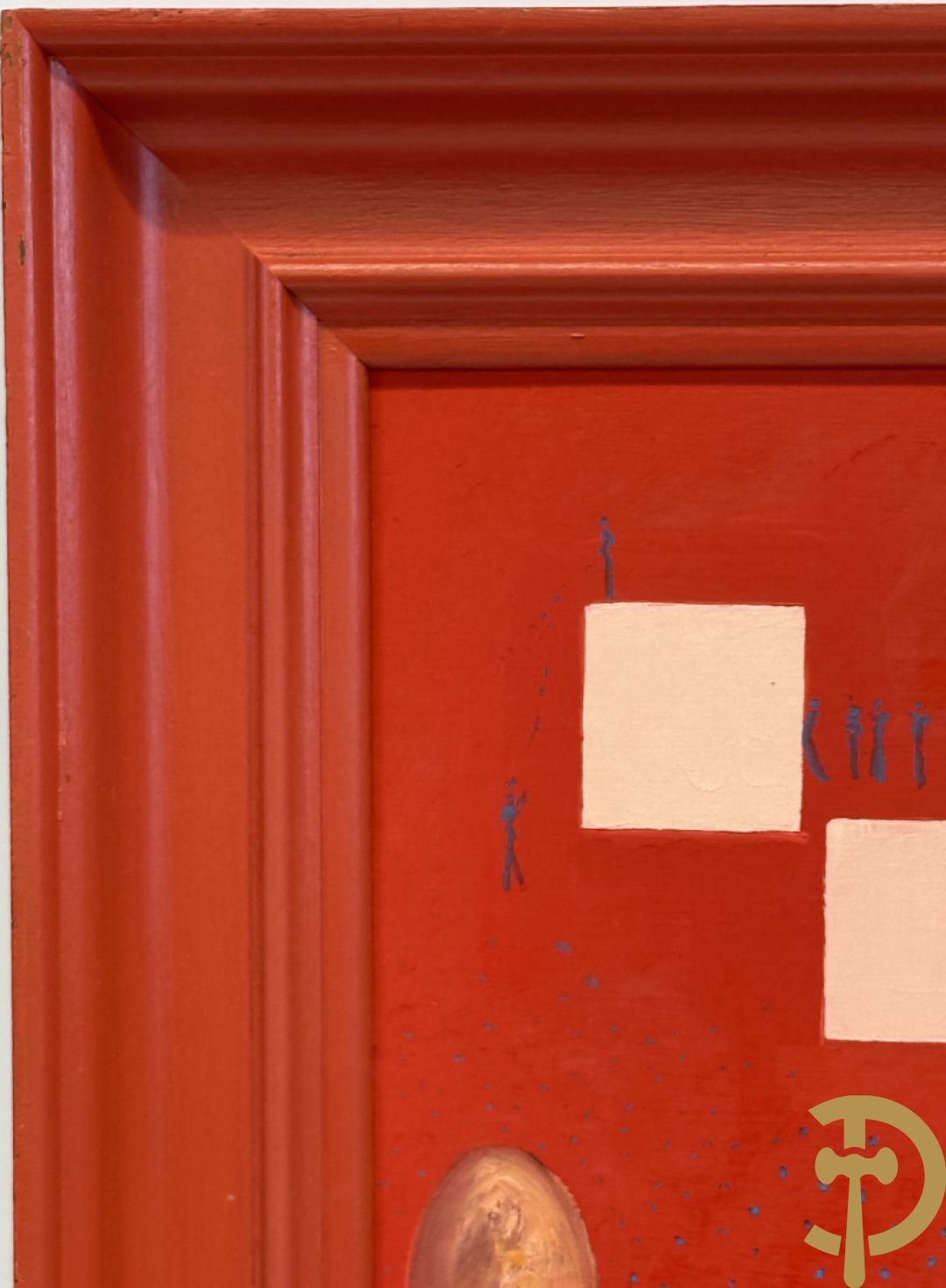 VERHELST P. getekend - Vier kleurrijke moderne werken in blauw, rood, groen en oranje - olie op paneel