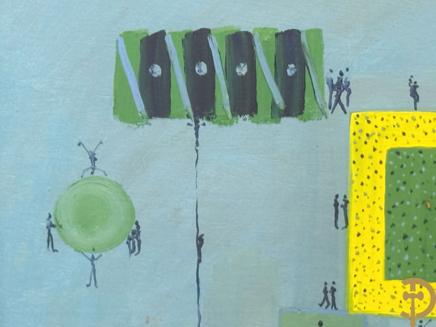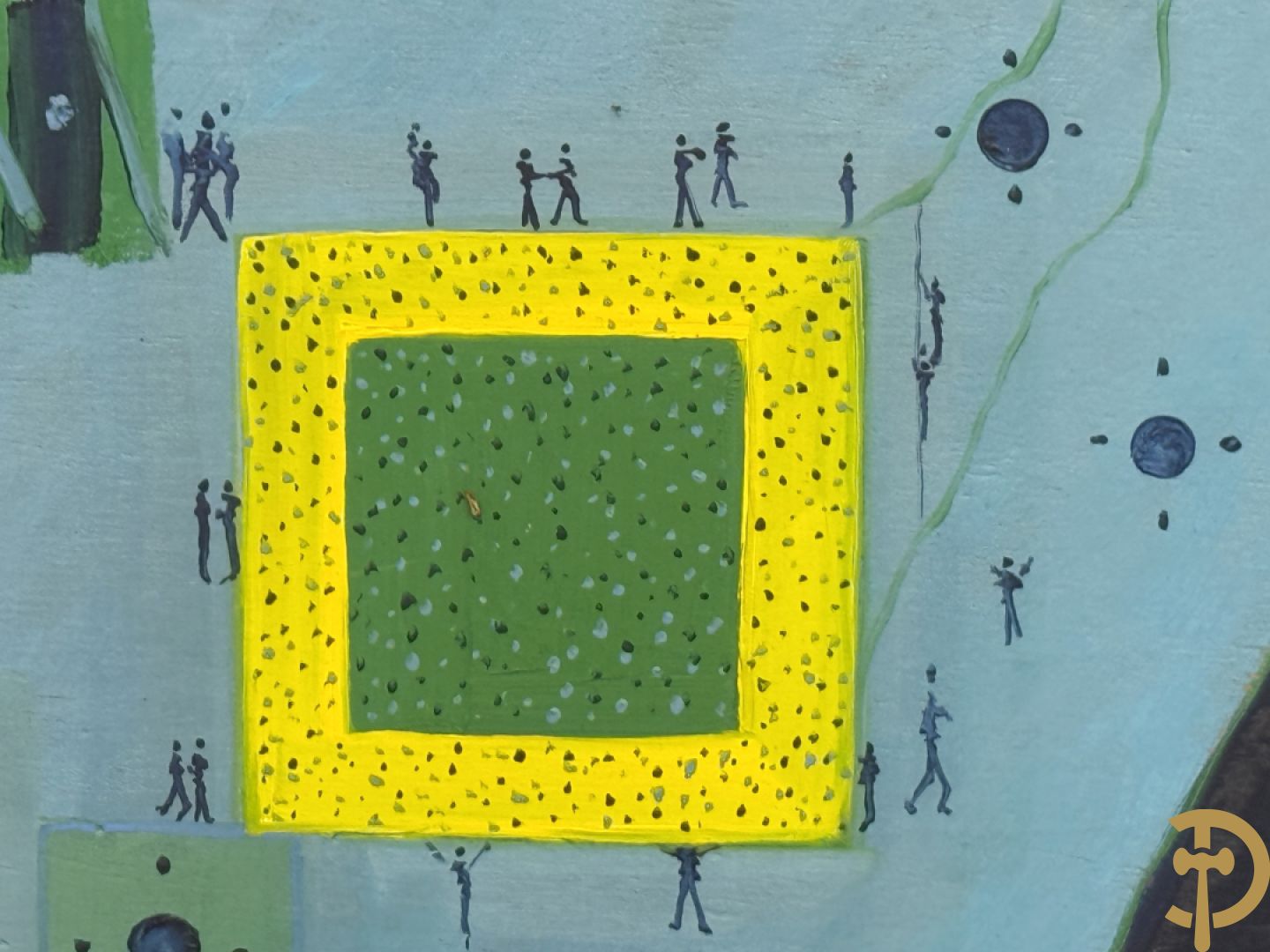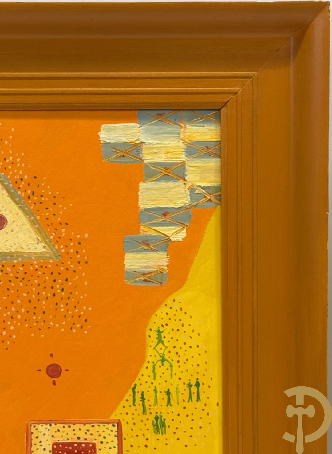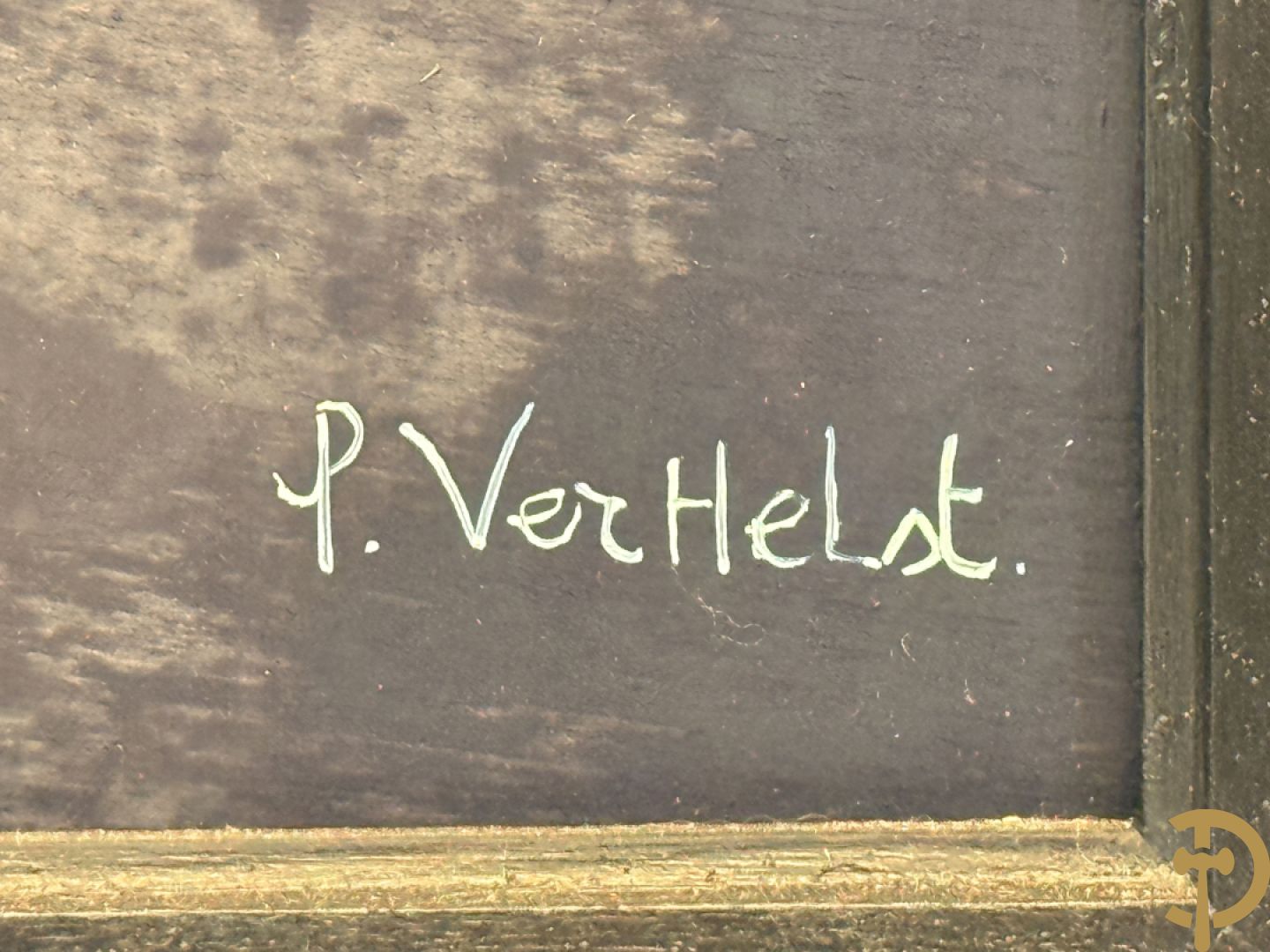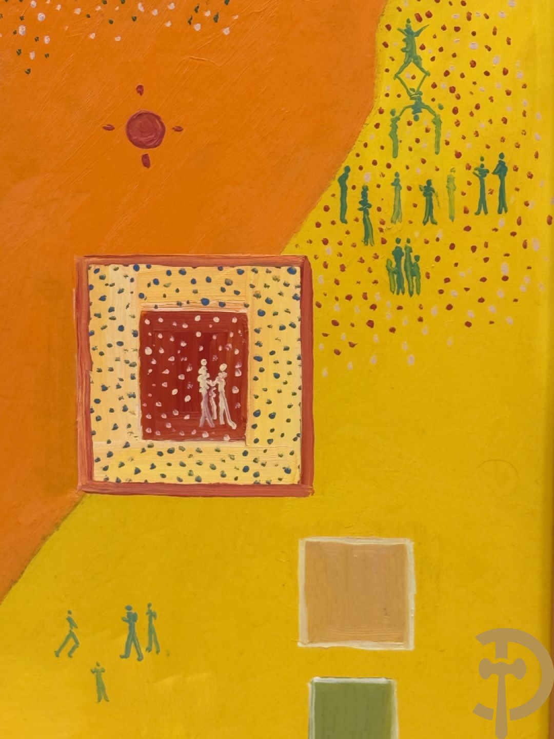 VERHELST P. getekend - Vier kleurrijke moderne werken in blauw, rood, groen en oranje - olie op paneel
