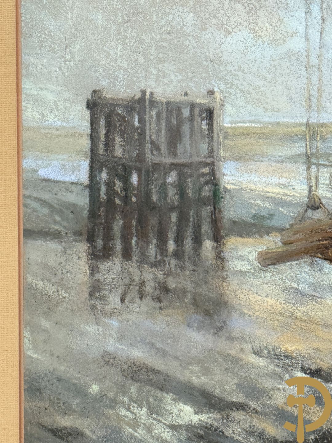 LOT 555 - VERBEKE L. getekend 'Aangemeerde sloep bij staketsel' pastel