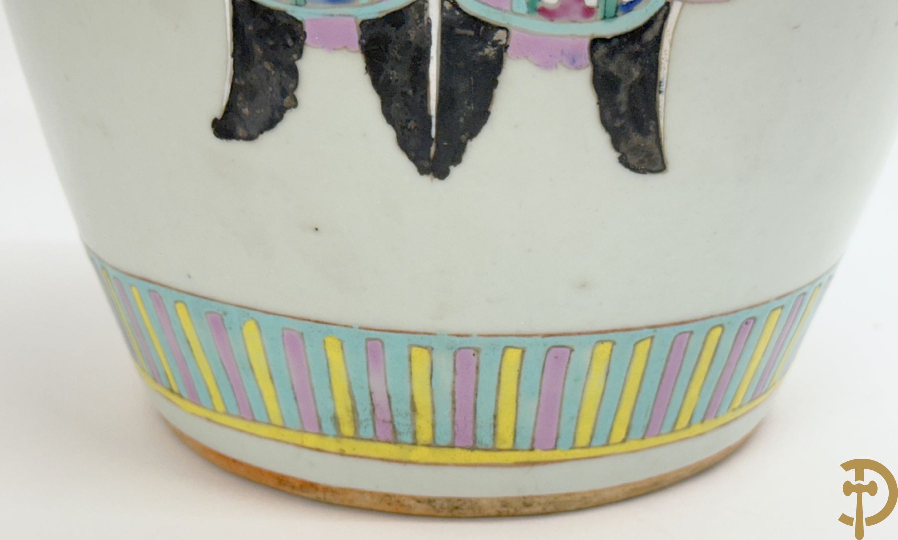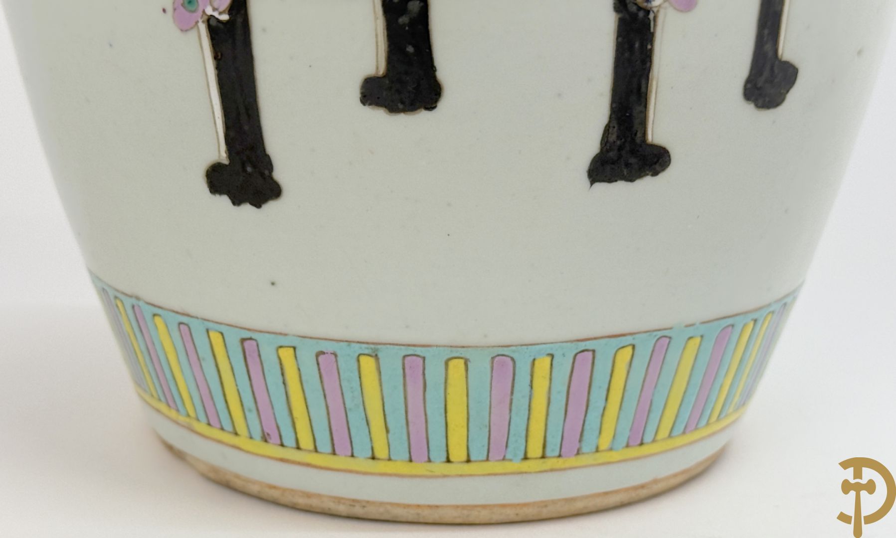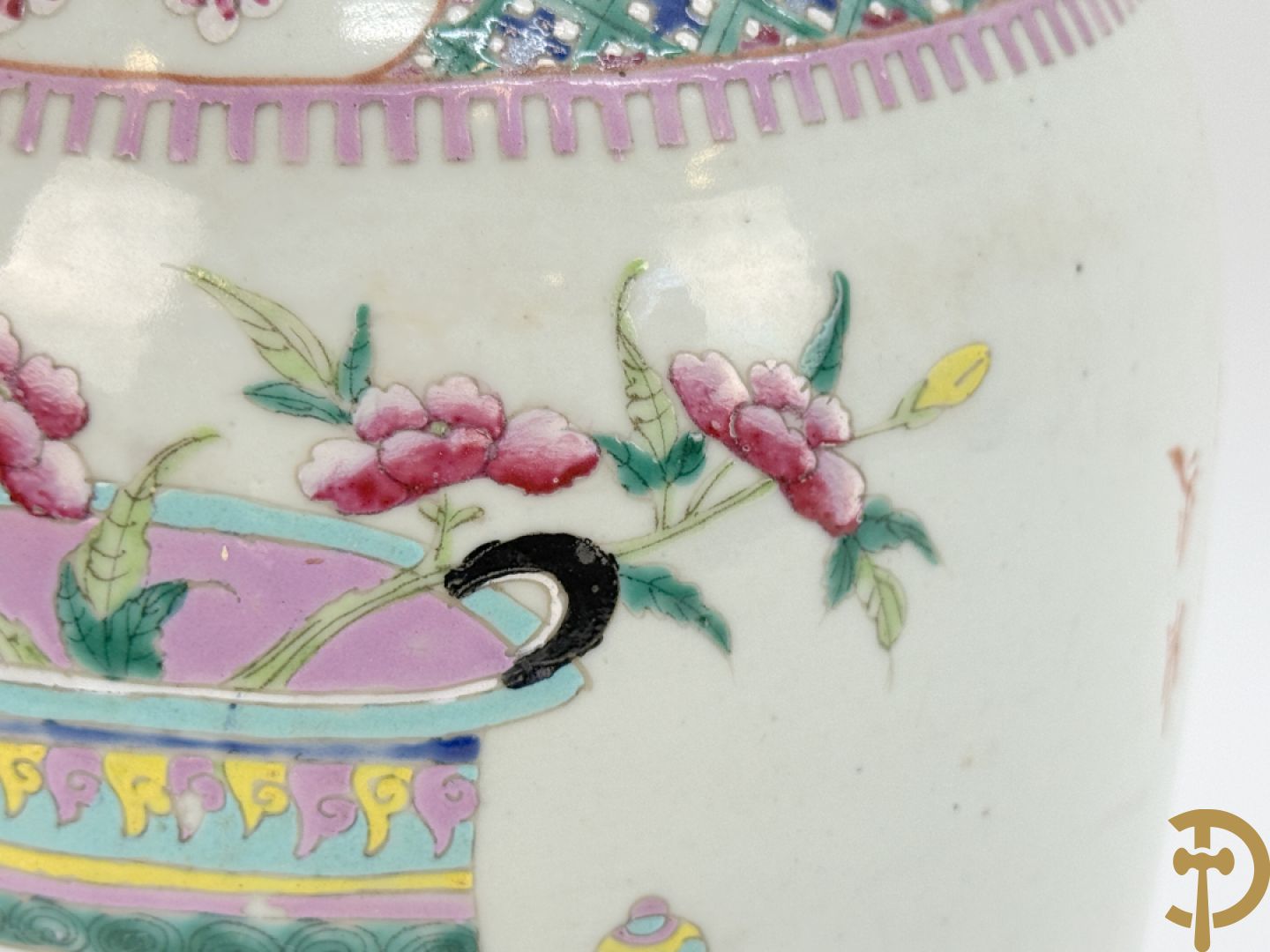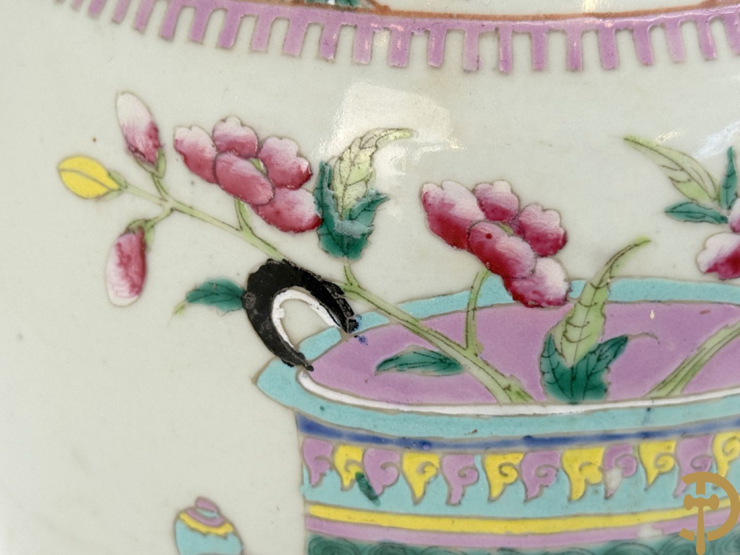 Chinese porseleinen vaas met decor van bloemencachepots, 19e