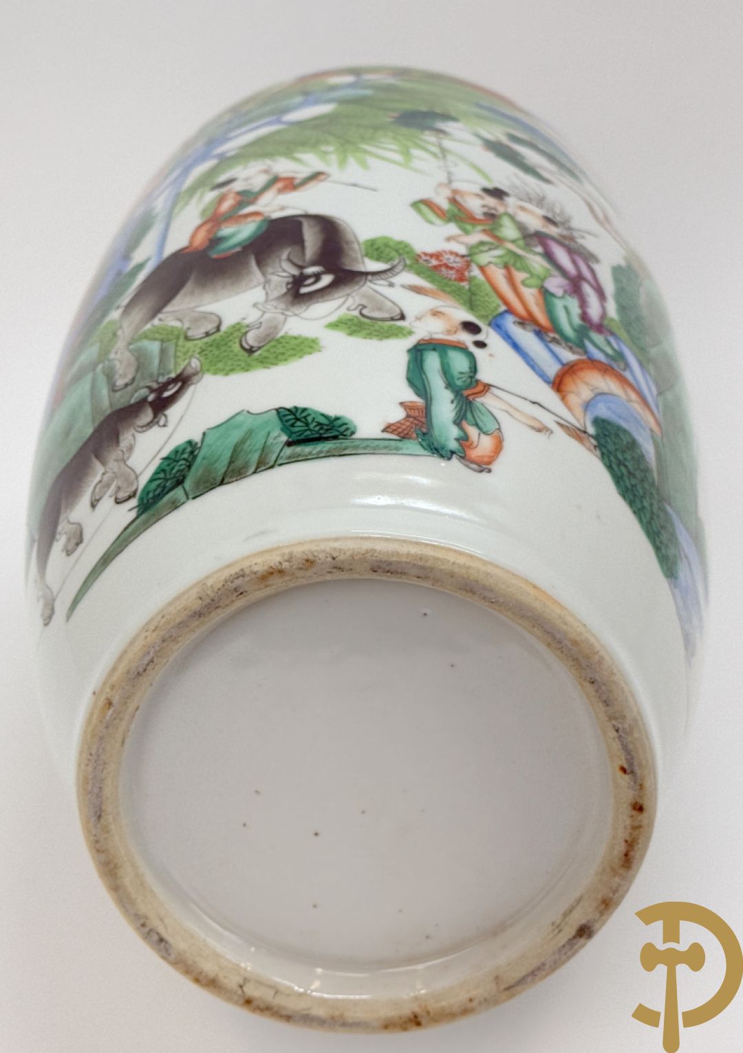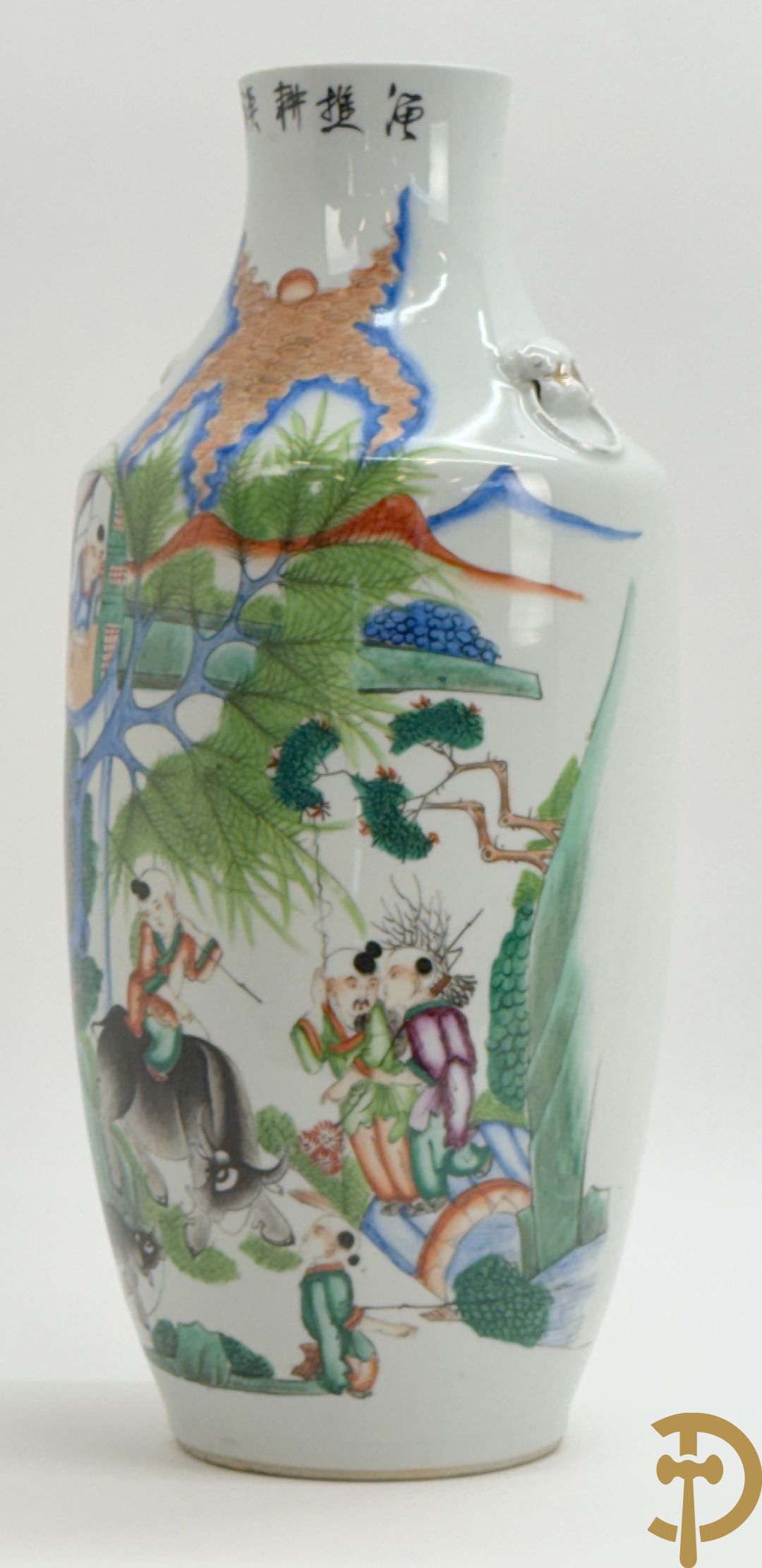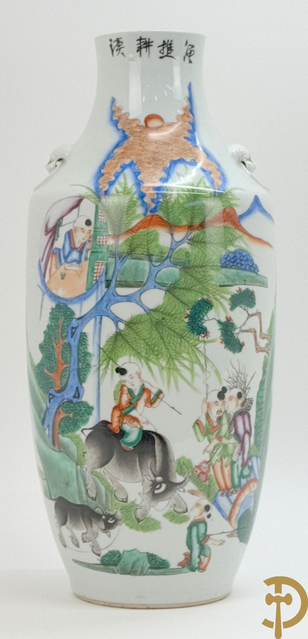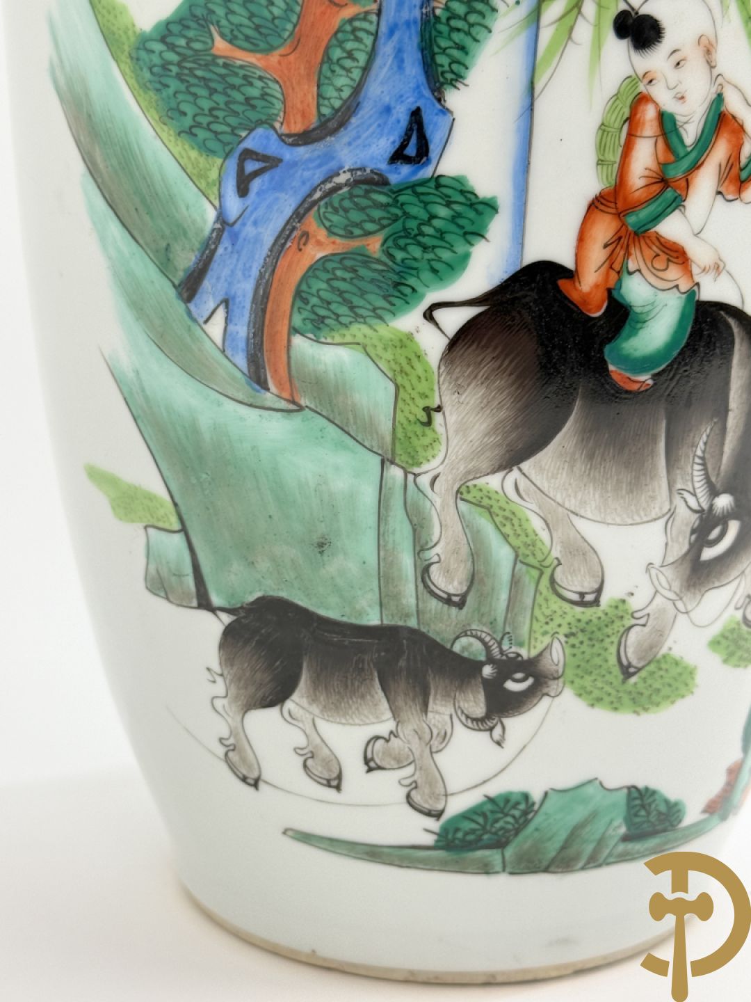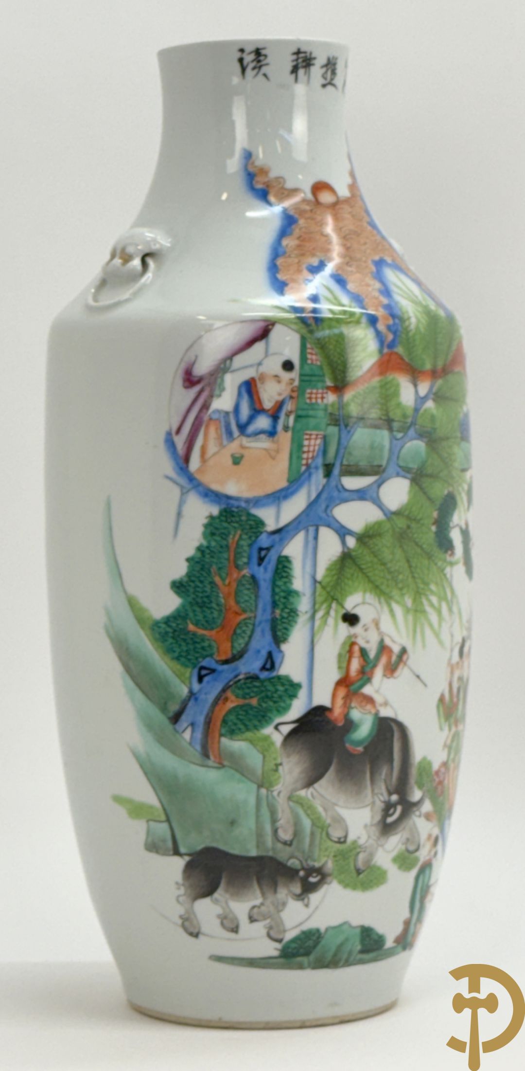 LOT 21 - Chinese porseleinen vaas met geanimeerd landschapsdecor en kind op buffel, bovenaan getekend