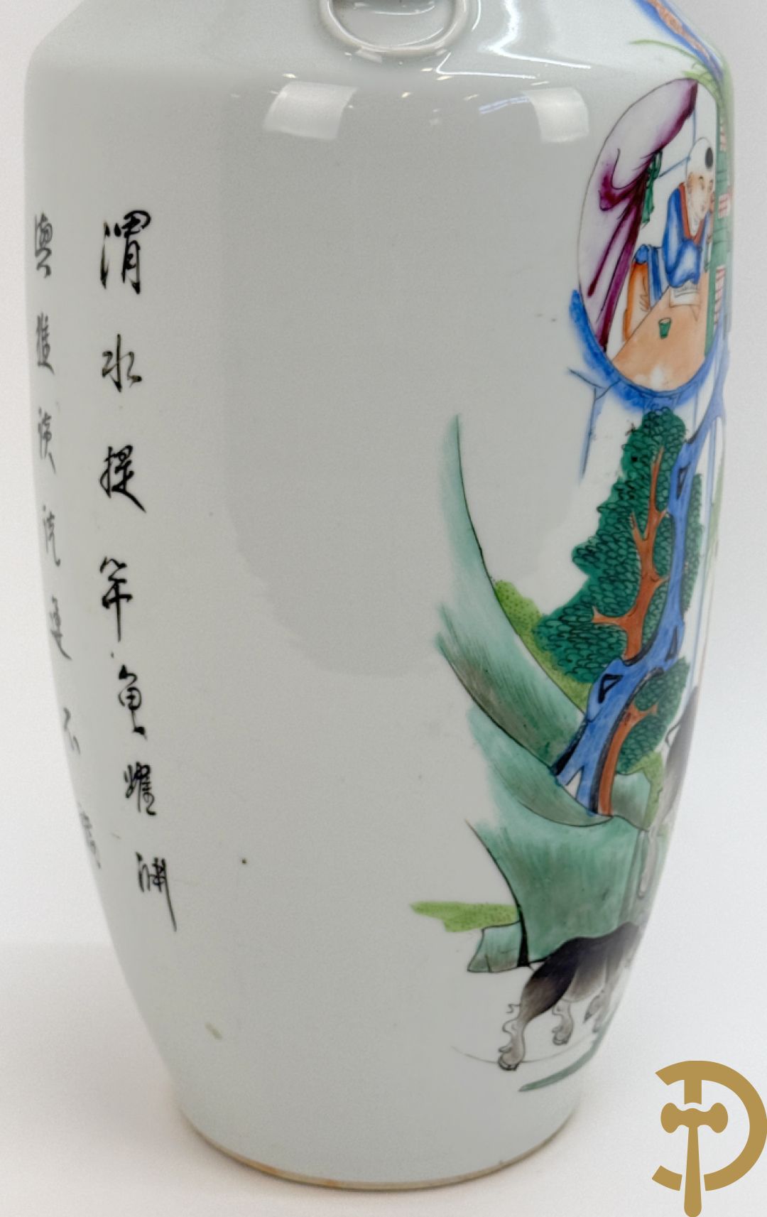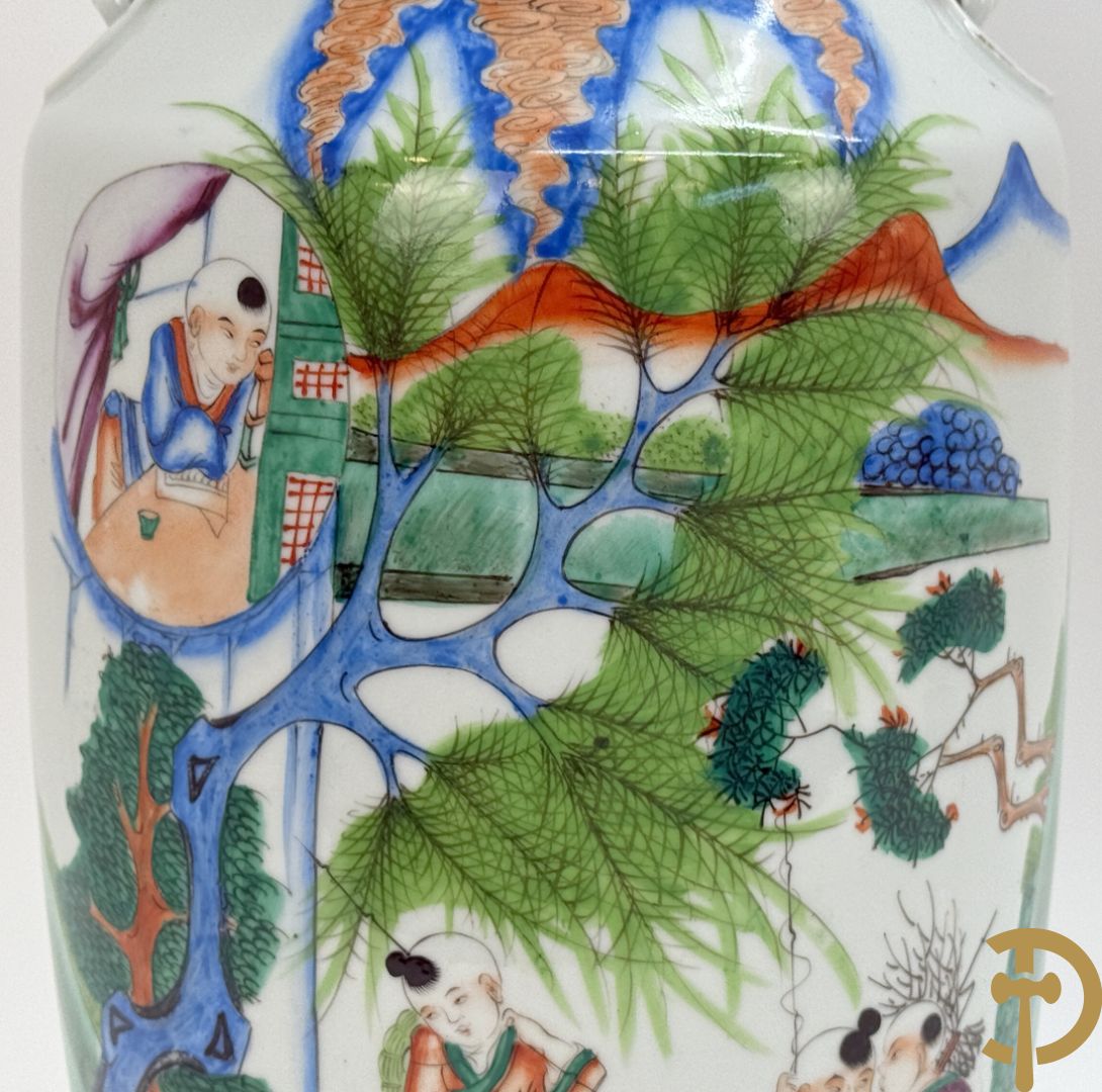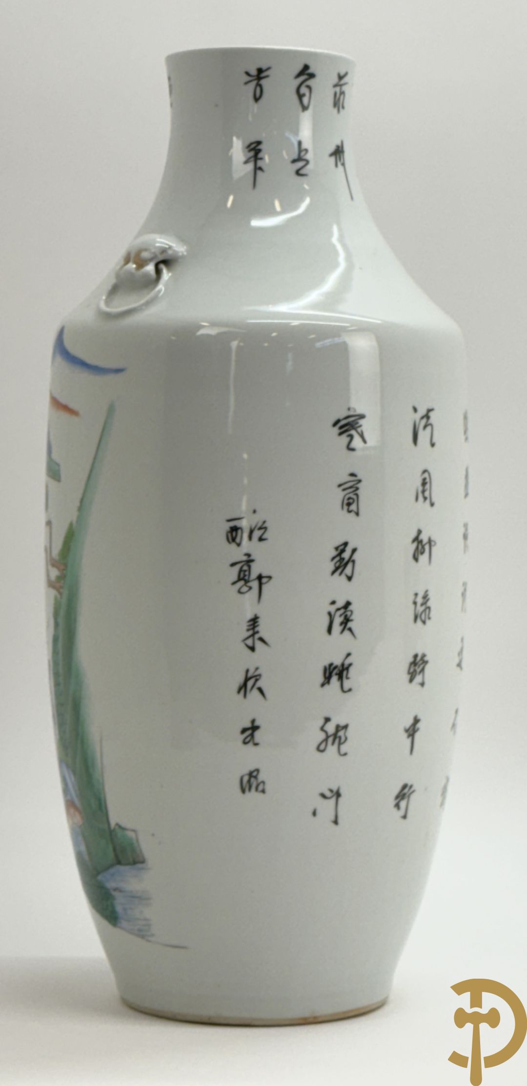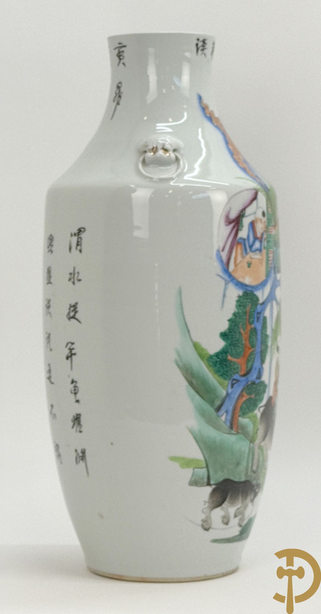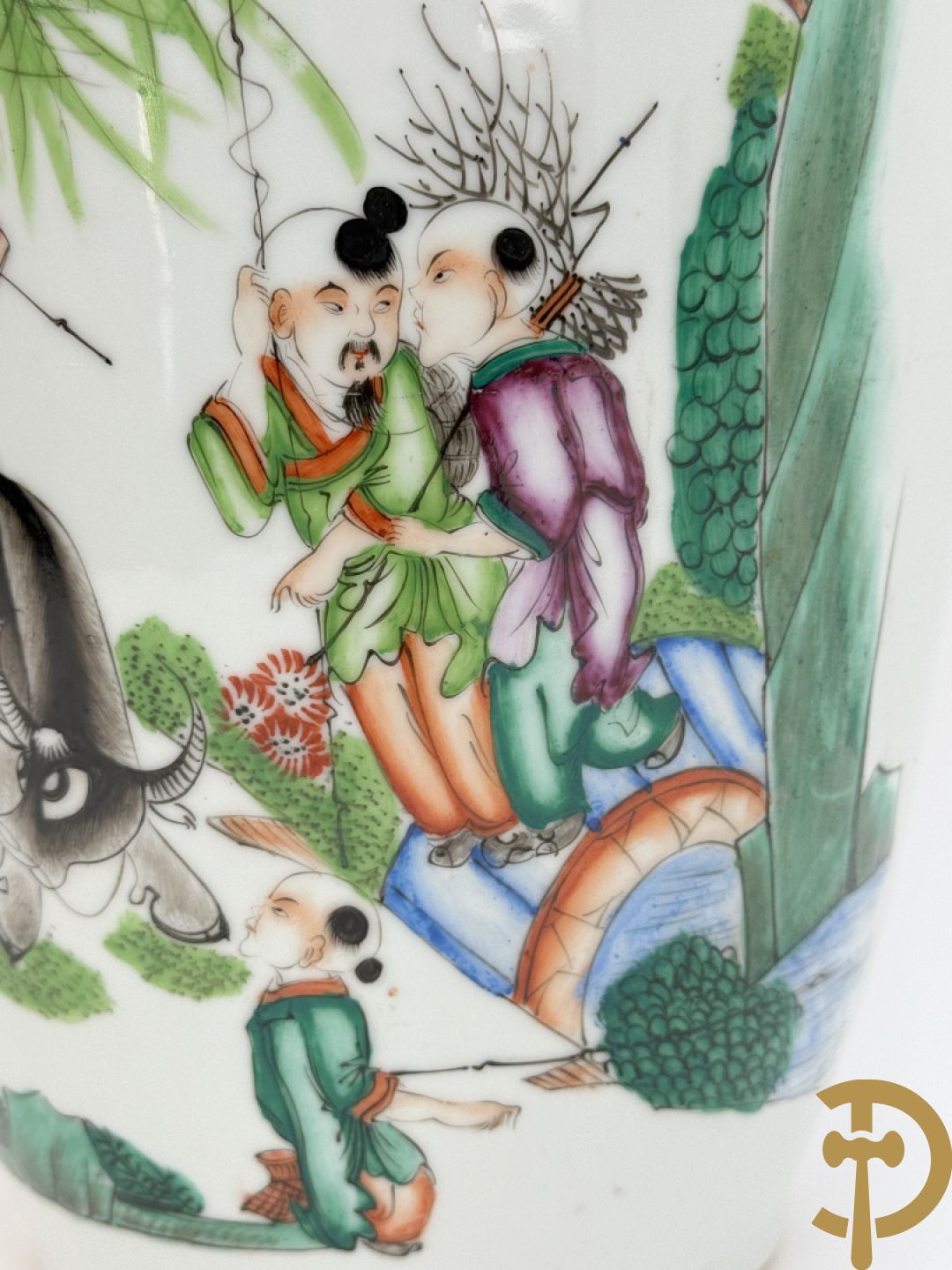 LOT 21 - Chinese porseleinen vaas met geanimeerd landschapsdecor en kind op buffel, bovenaan getekend