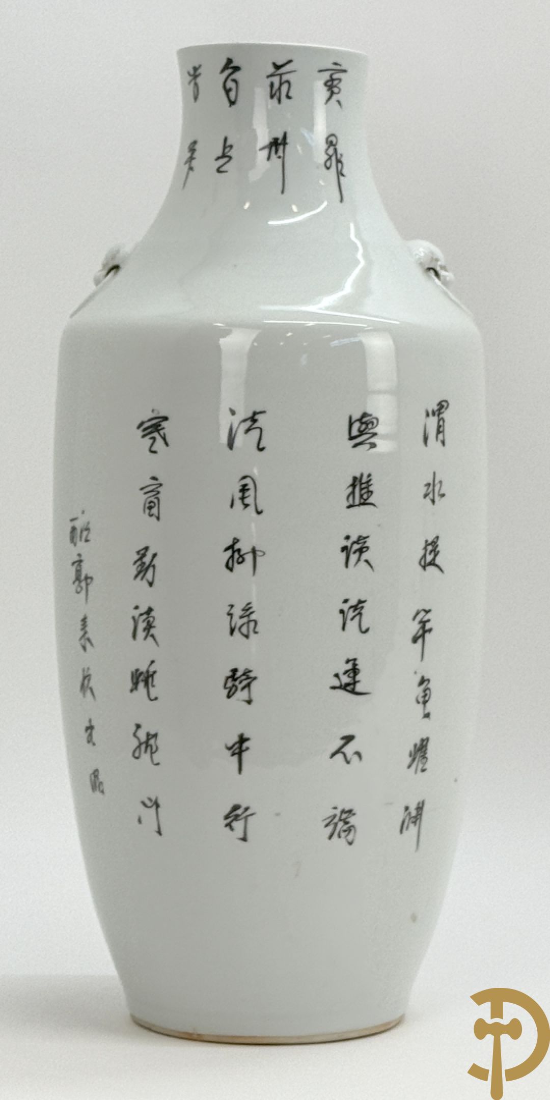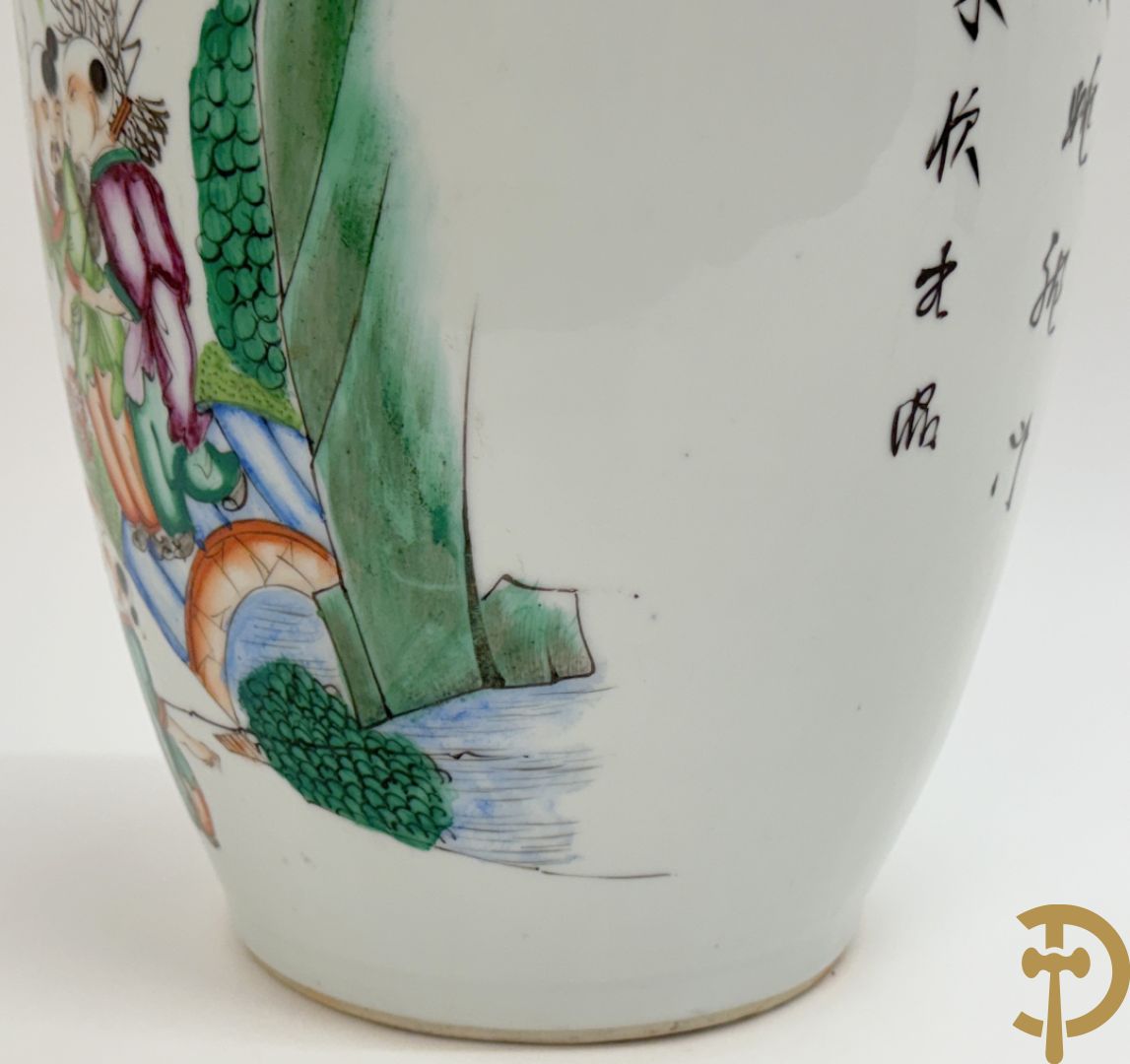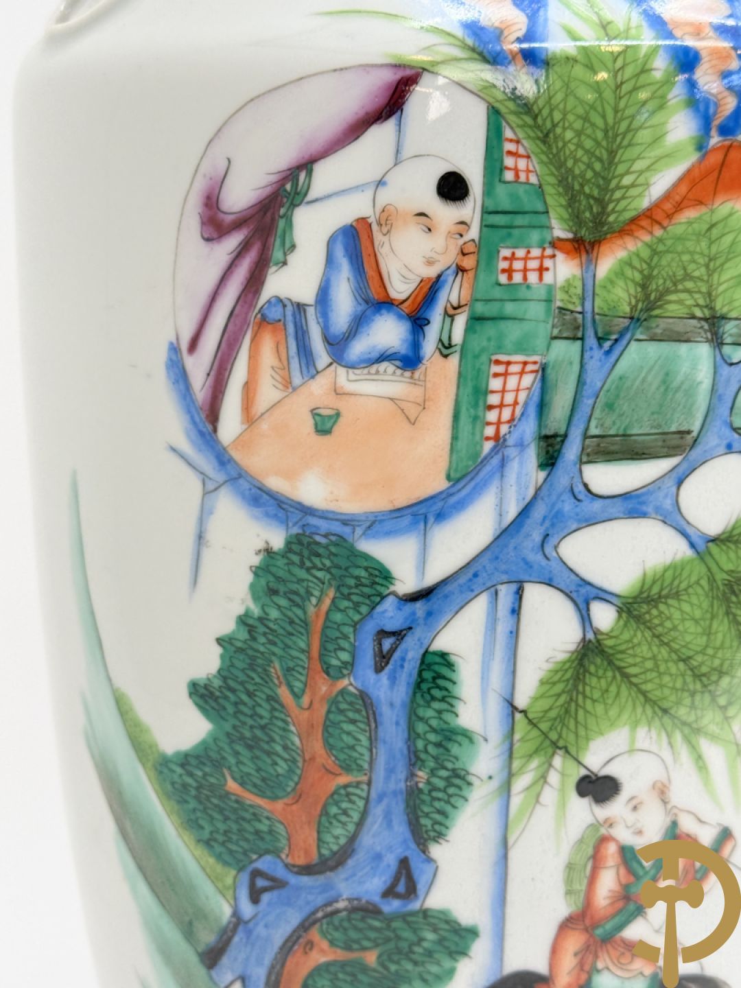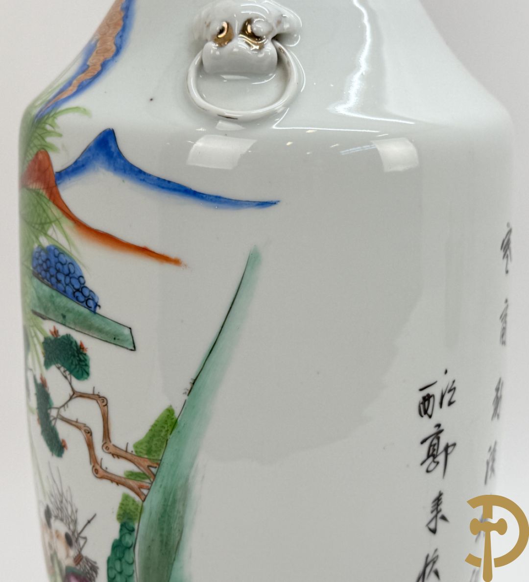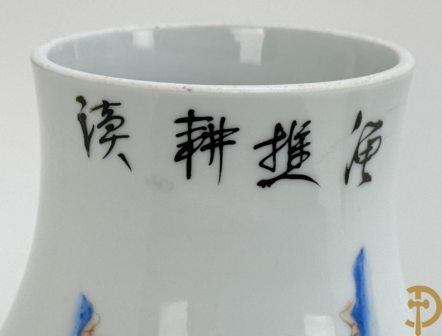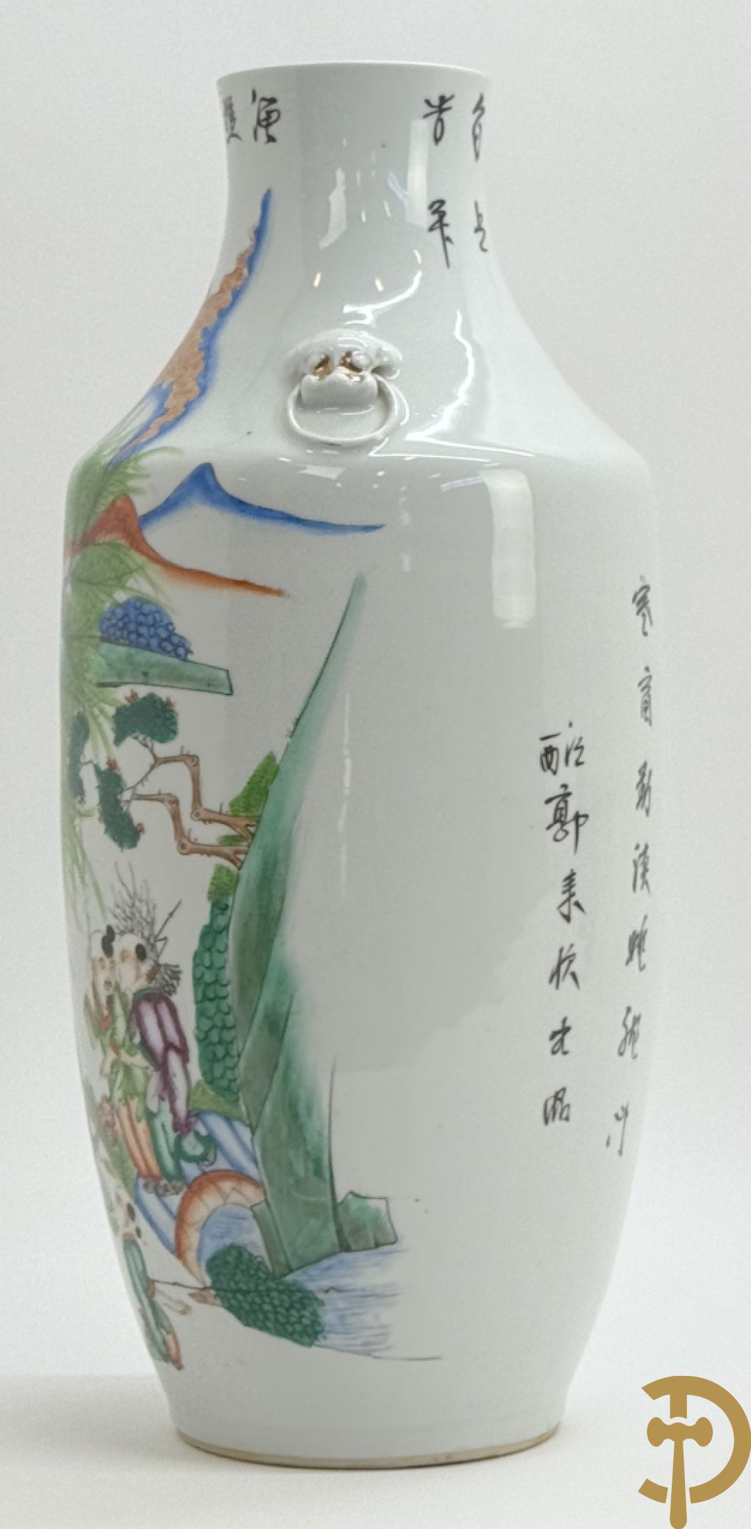 LOT 21 - Chinese porseleinen vaas met geanimeerd landschapsdecor en kind op buffel, bovenaan getekend
