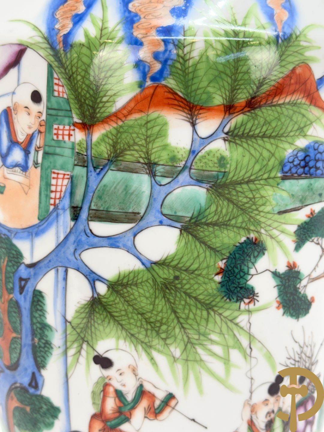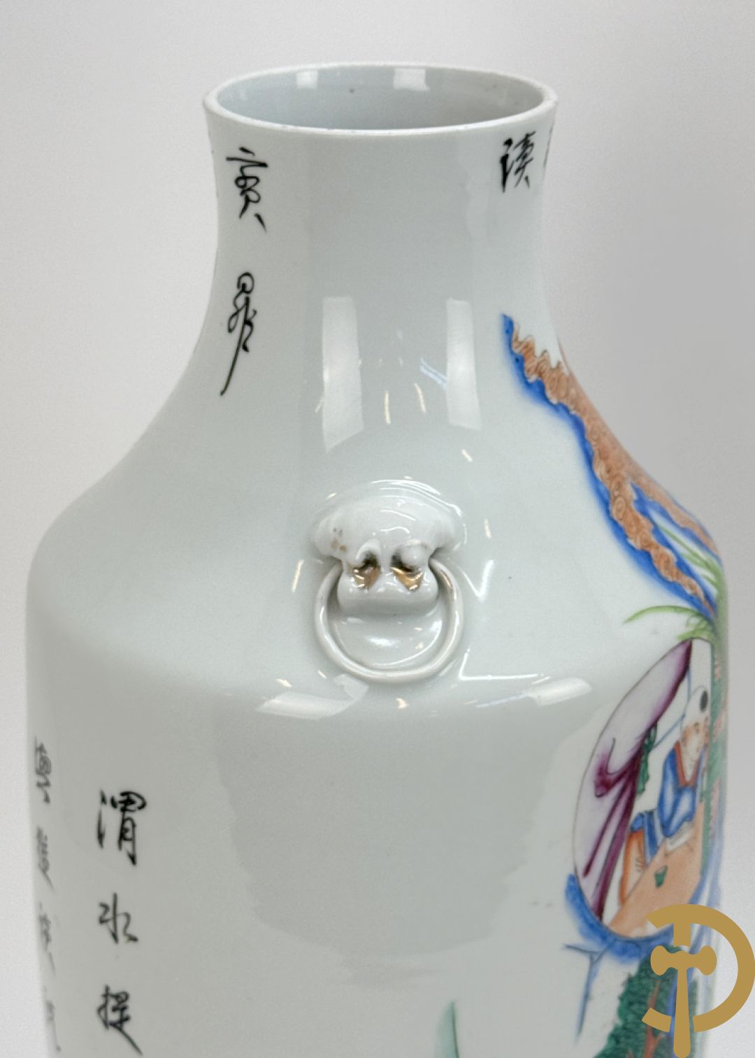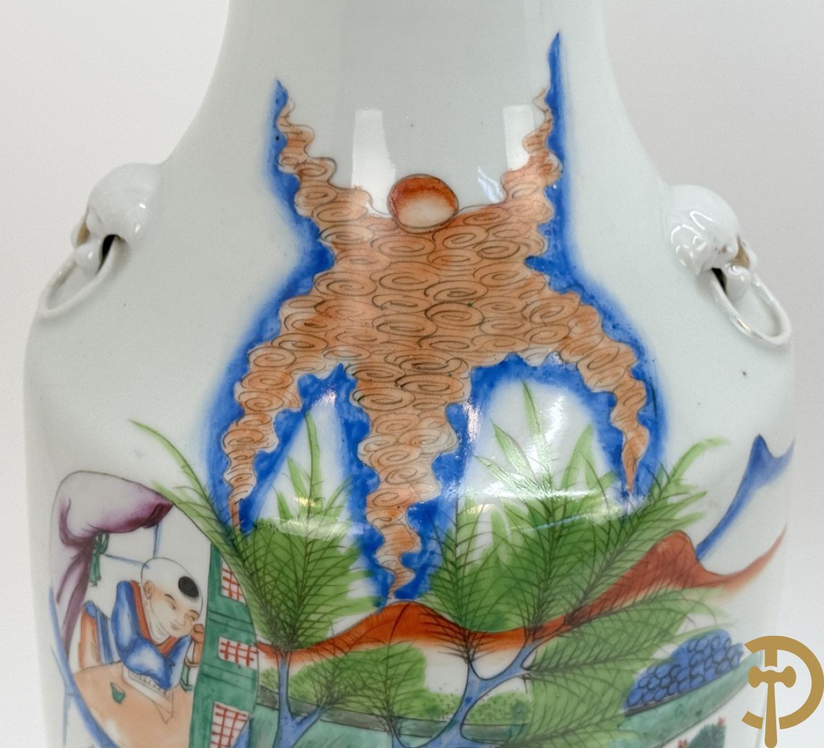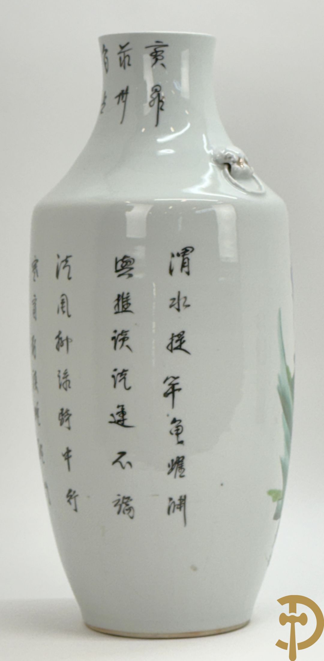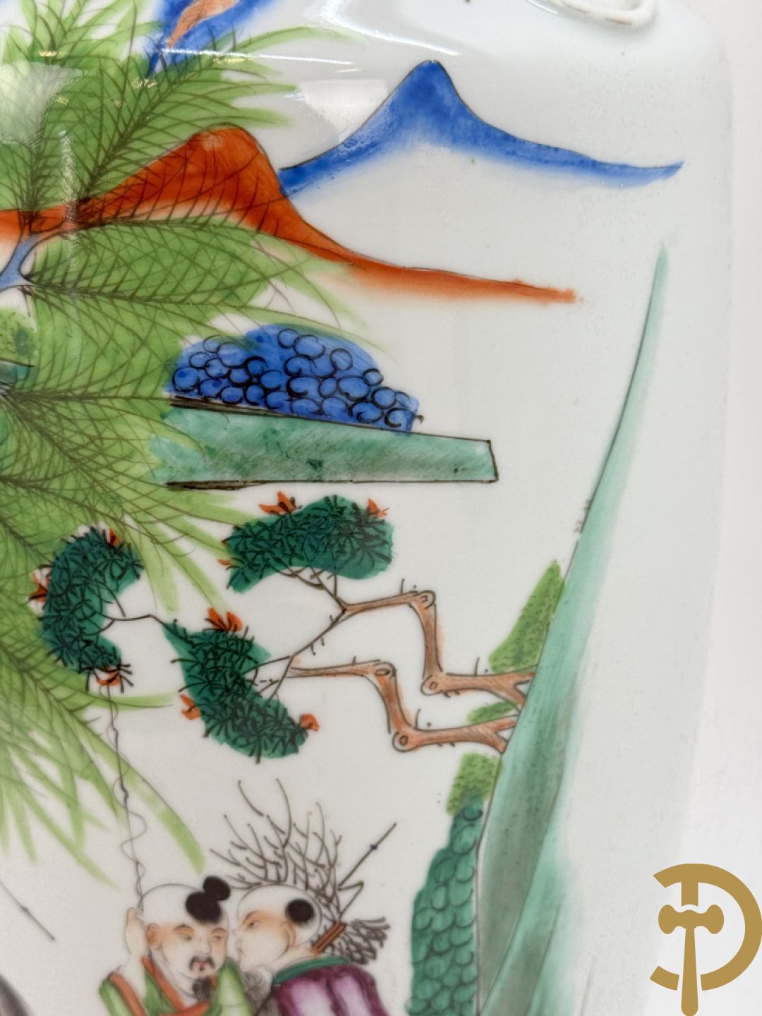 LOT 21 - Chinese porseleinen vaas met geanimeerd landschapsdecor en kind op buffel, bovenaan getekend