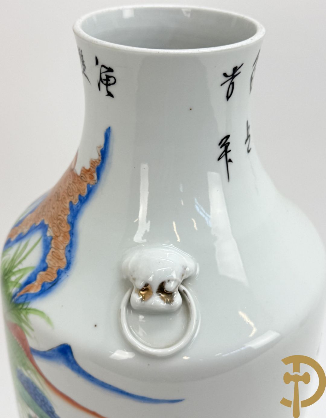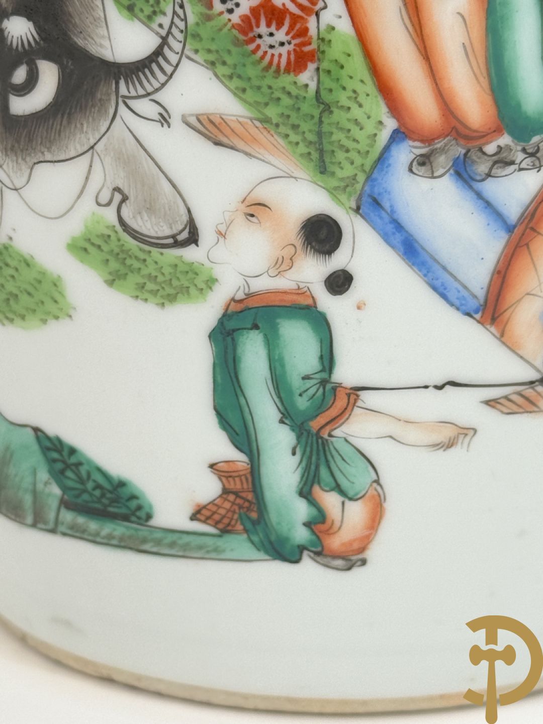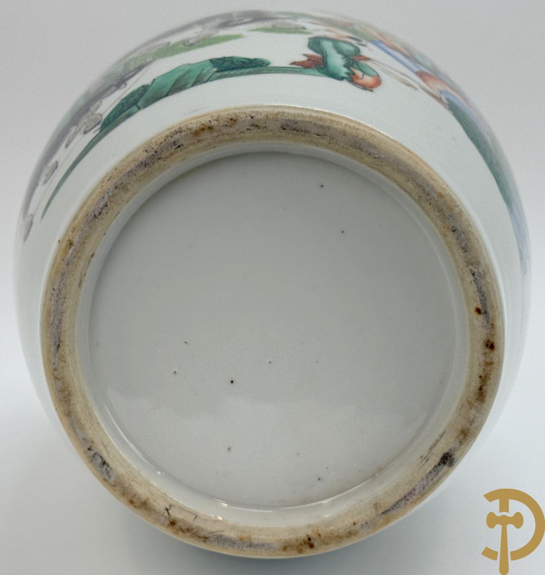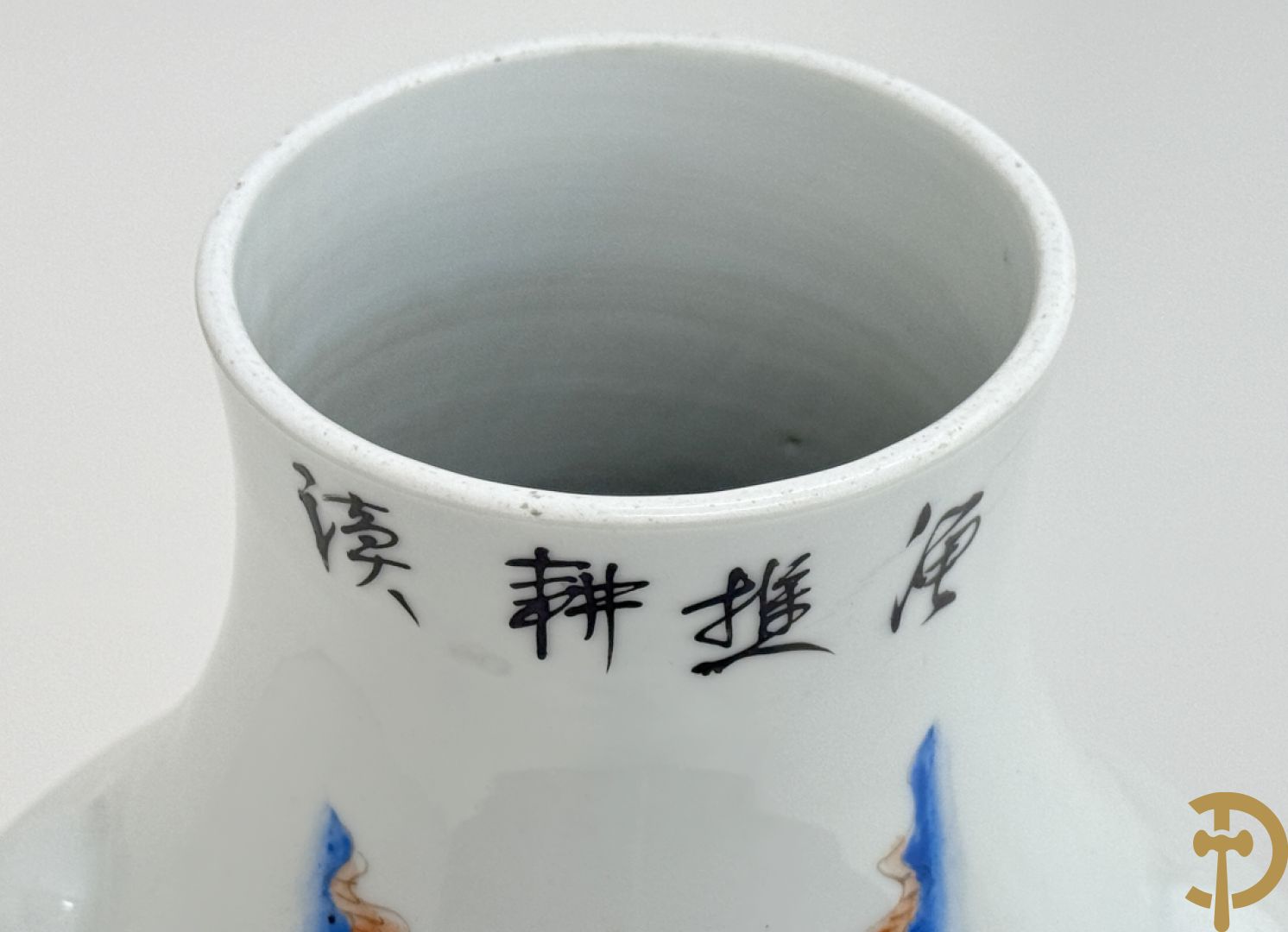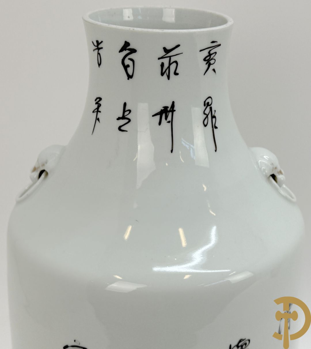 LOT 21 - Chinese porseleinen vaas met geanimeerd landschapsdecor en kind op buffel, bovenaan getekend