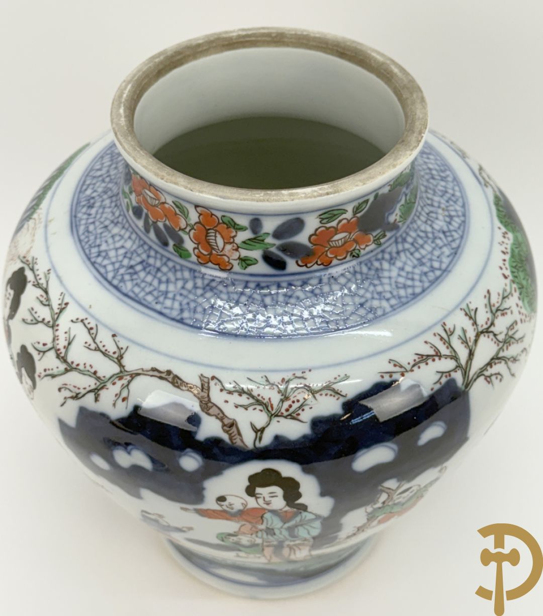LOT 52 - Porseleinen dekselpotiche met japaniserend decor en geanimeerde scènes, Samson