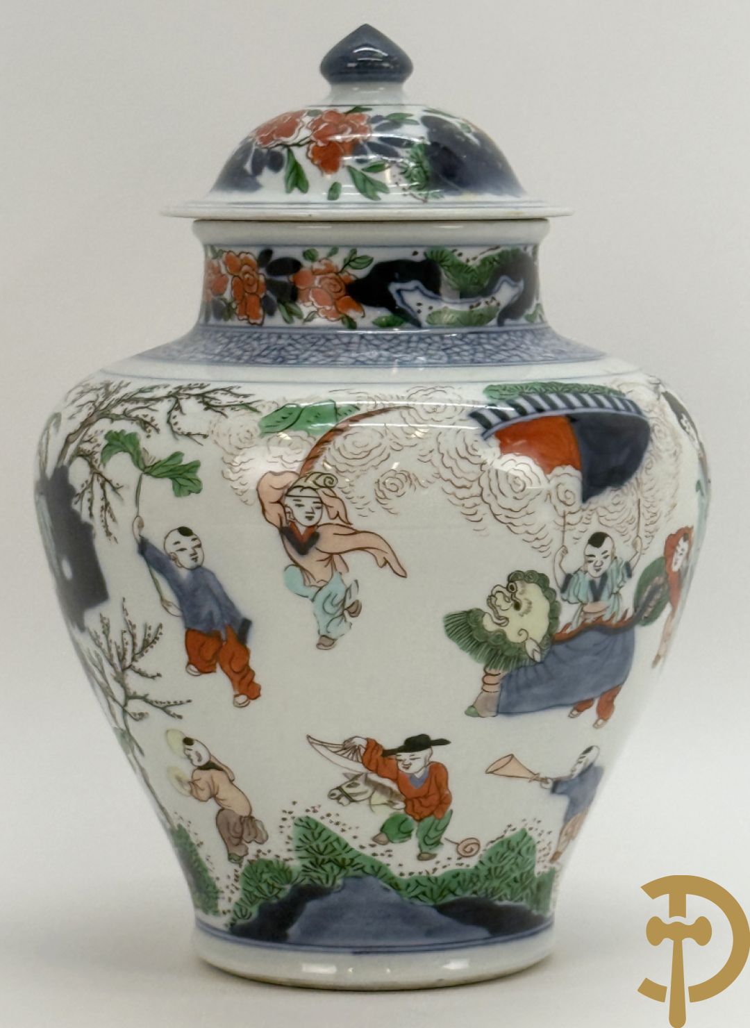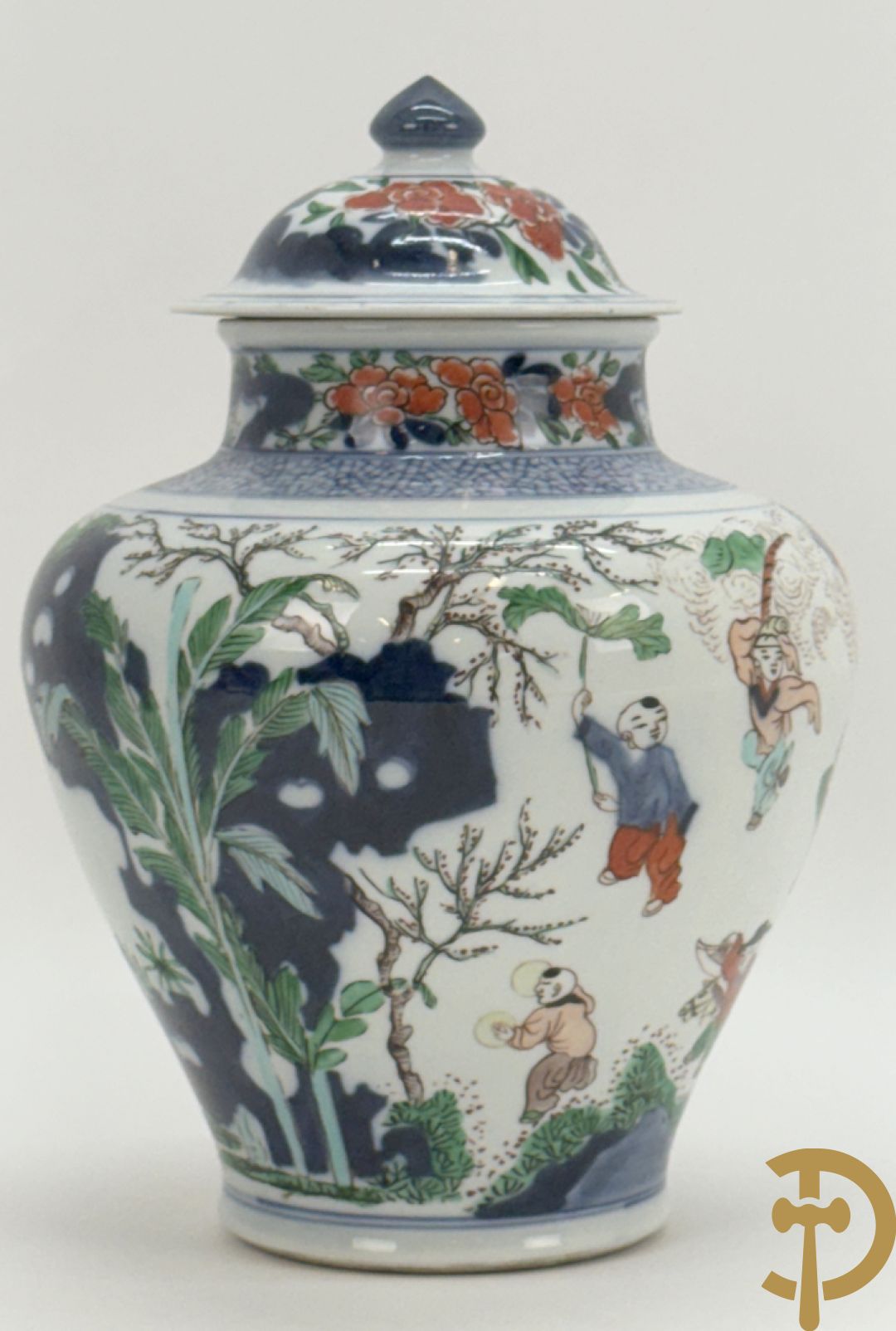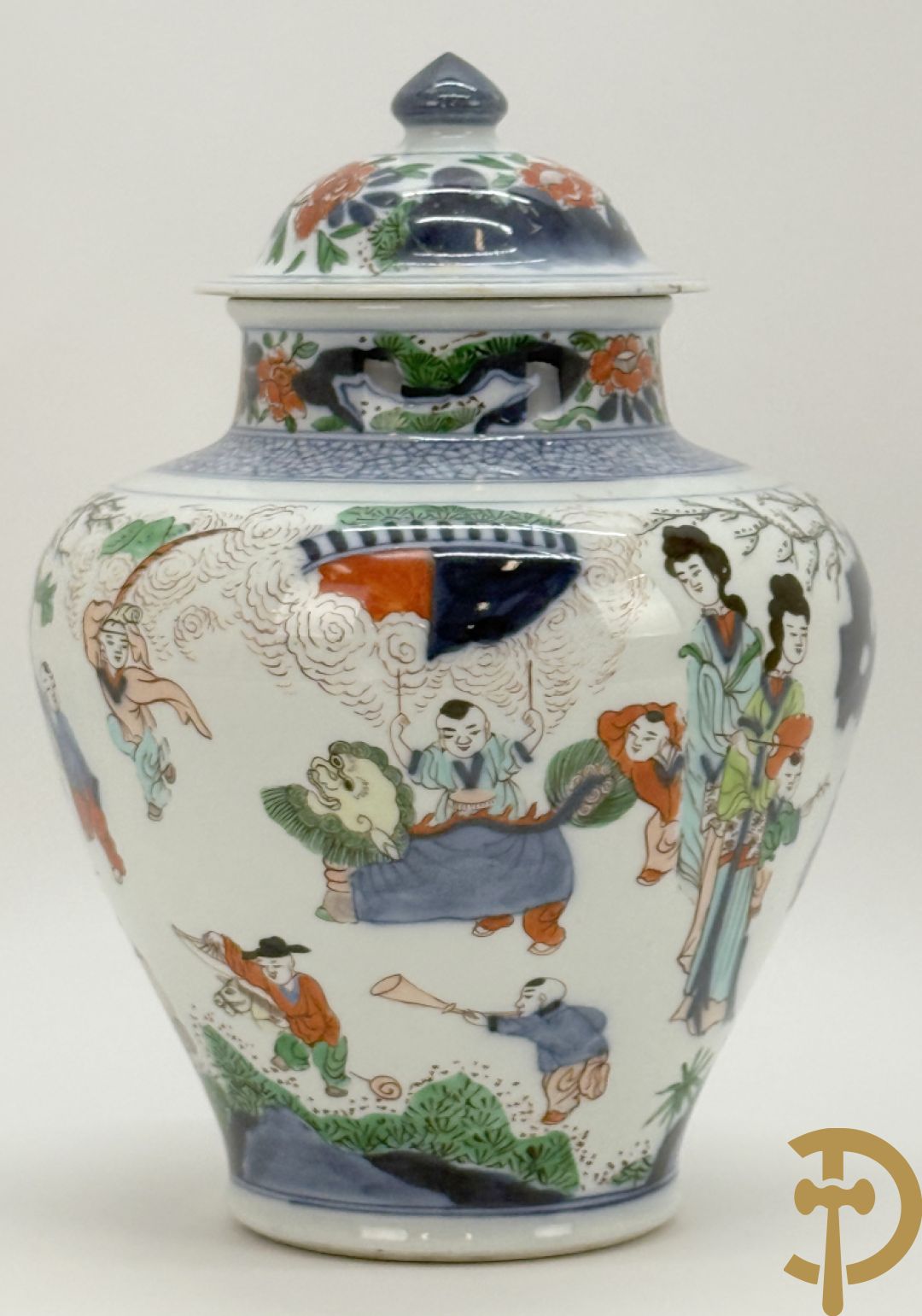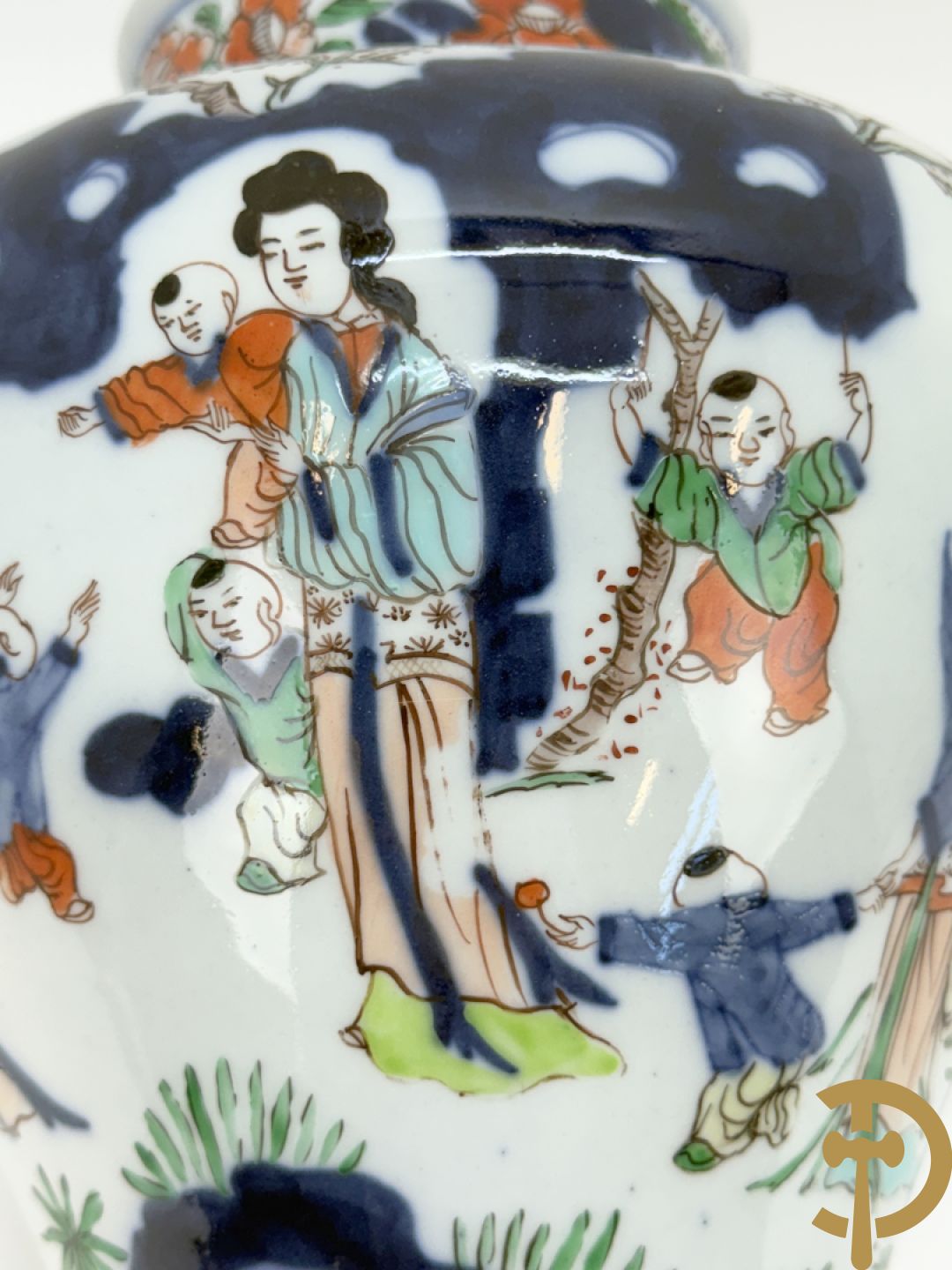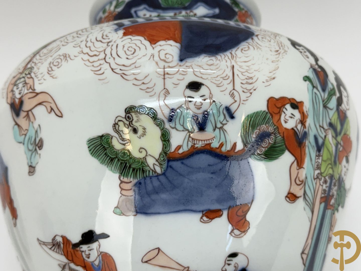 Porseleinen dekselpotiche met japaniserend decor en geanimeerde scènes, Samson