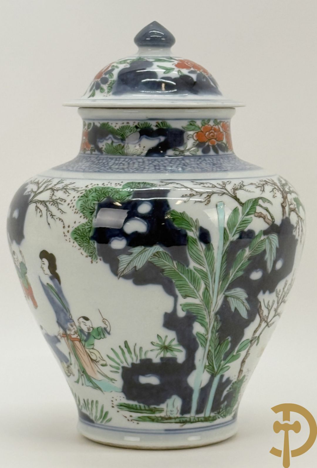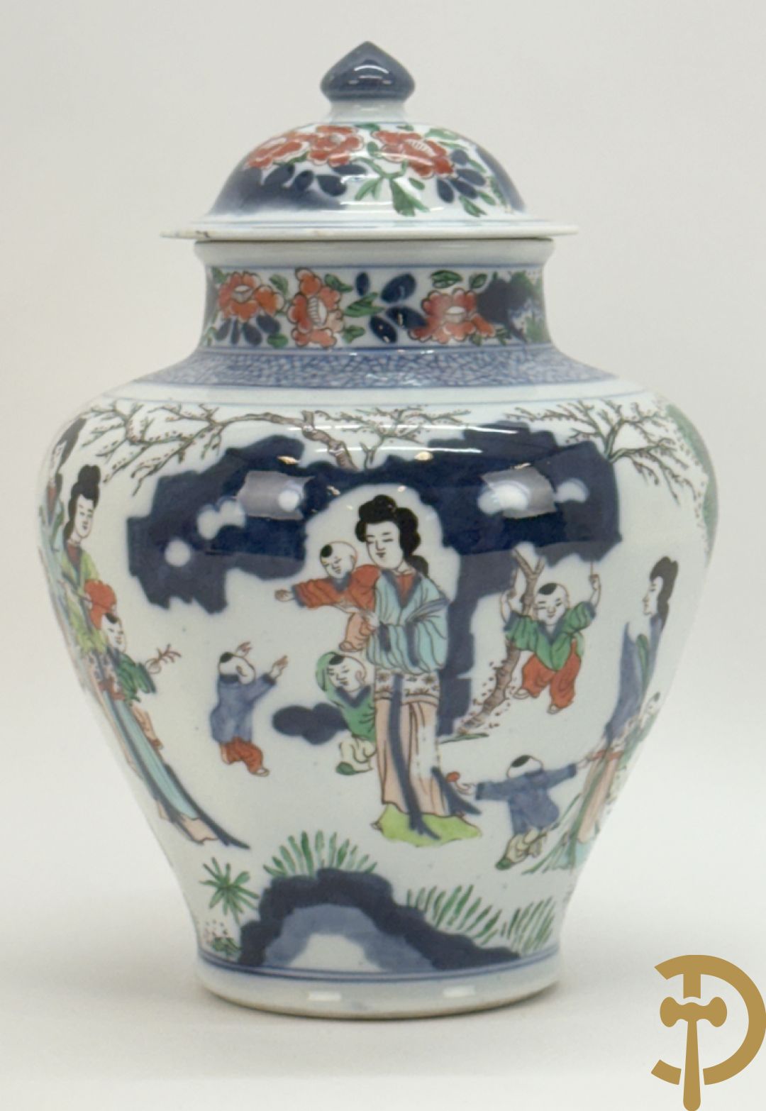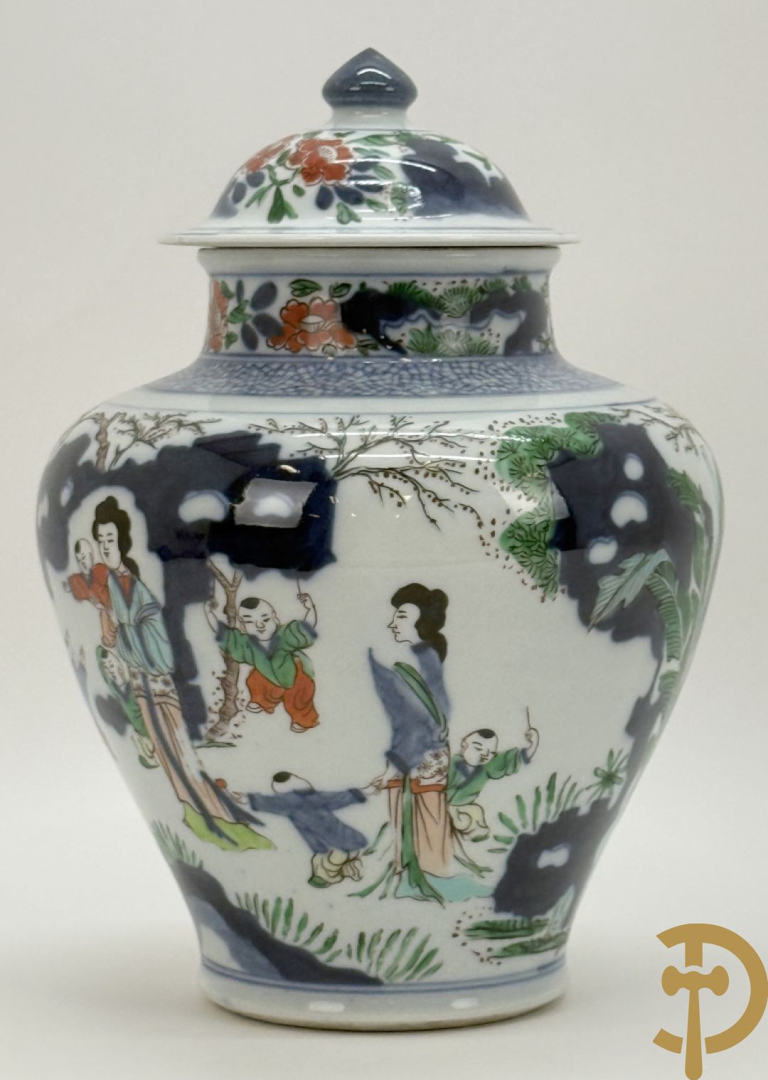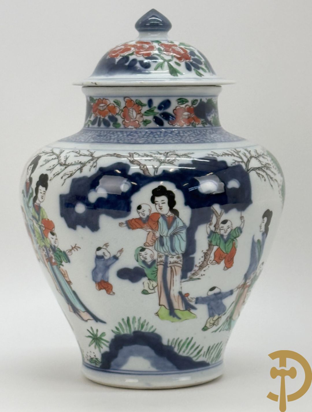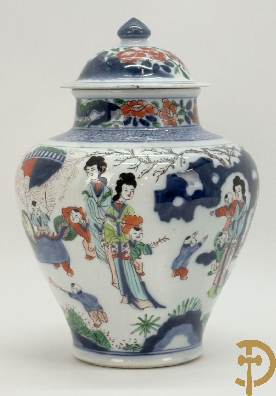 Porseleinen dekselpotiche met japaniserend decor en geanimeerde scènes, Samson