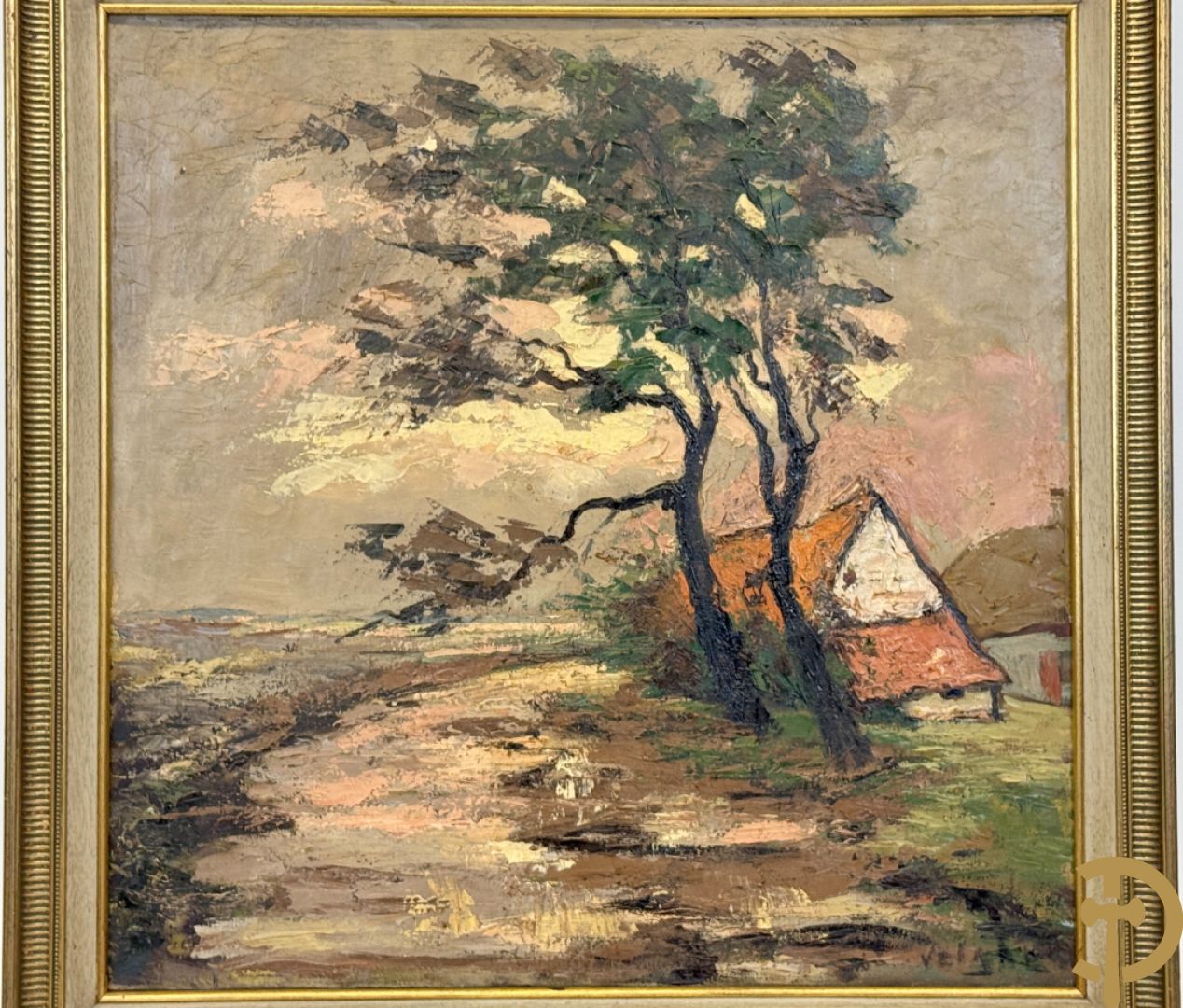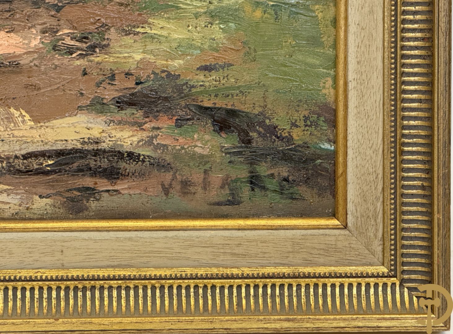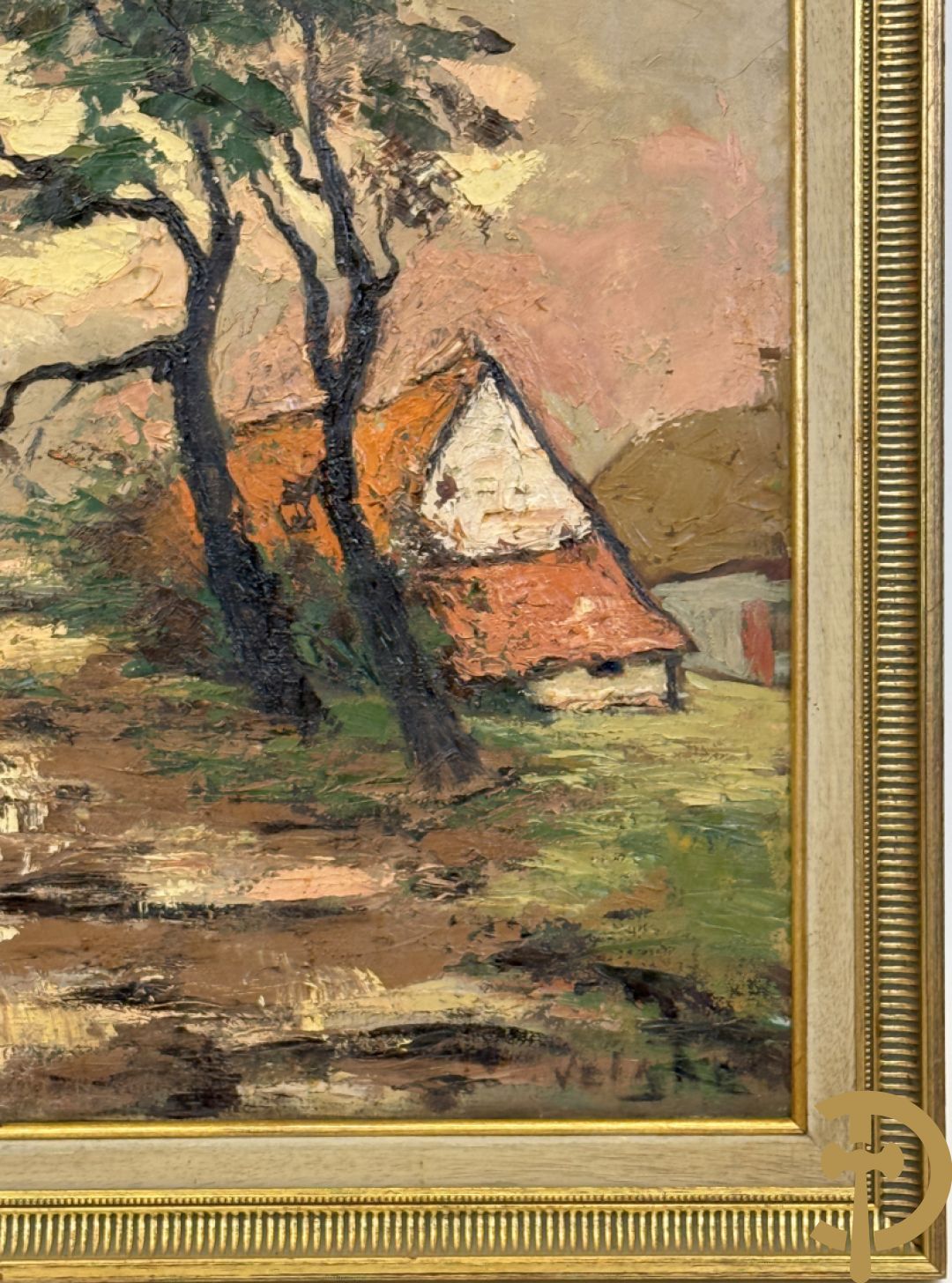 VELGHE getekend 'Rivierzicht met bomen en hoeve' olie op doek