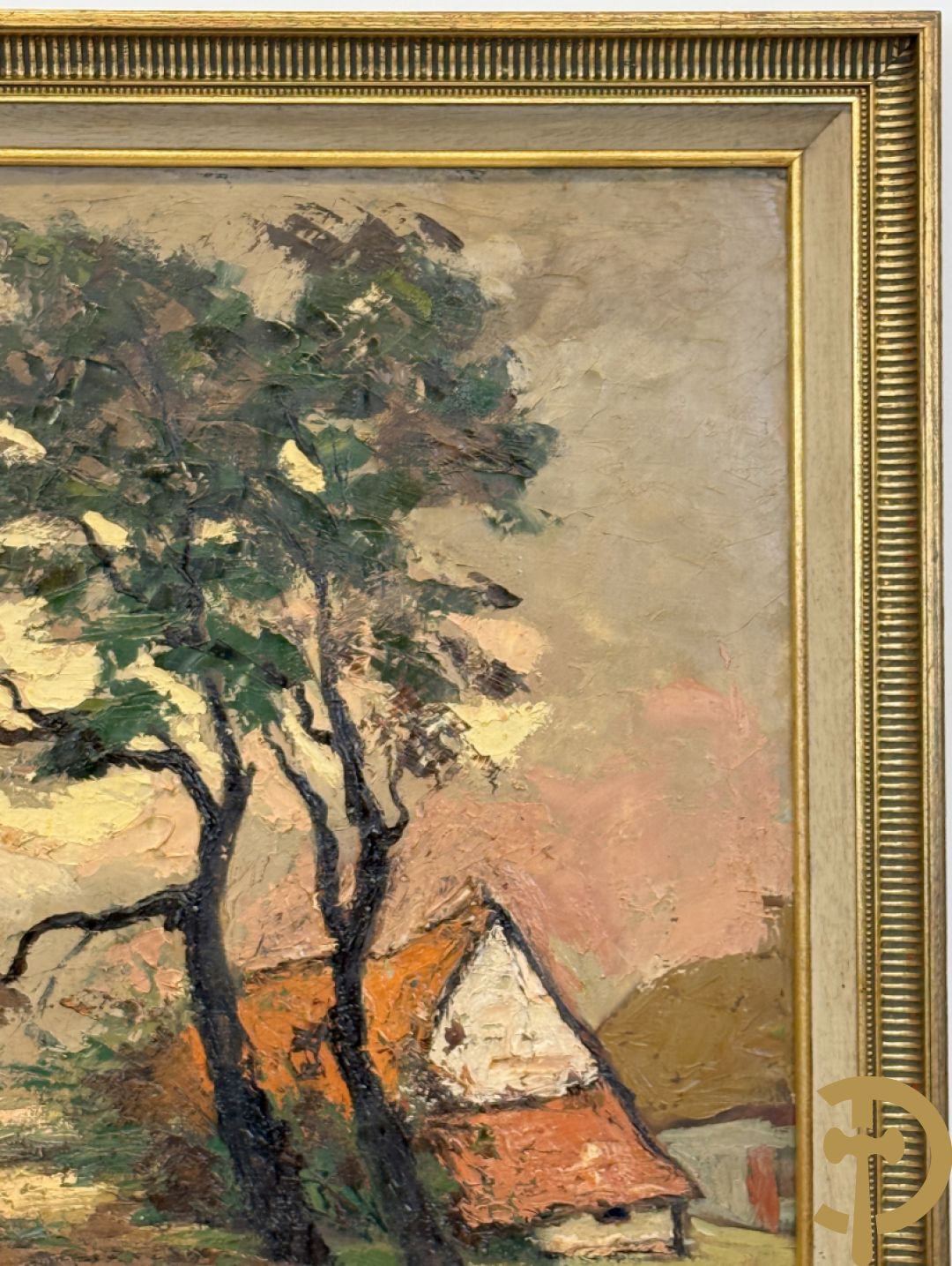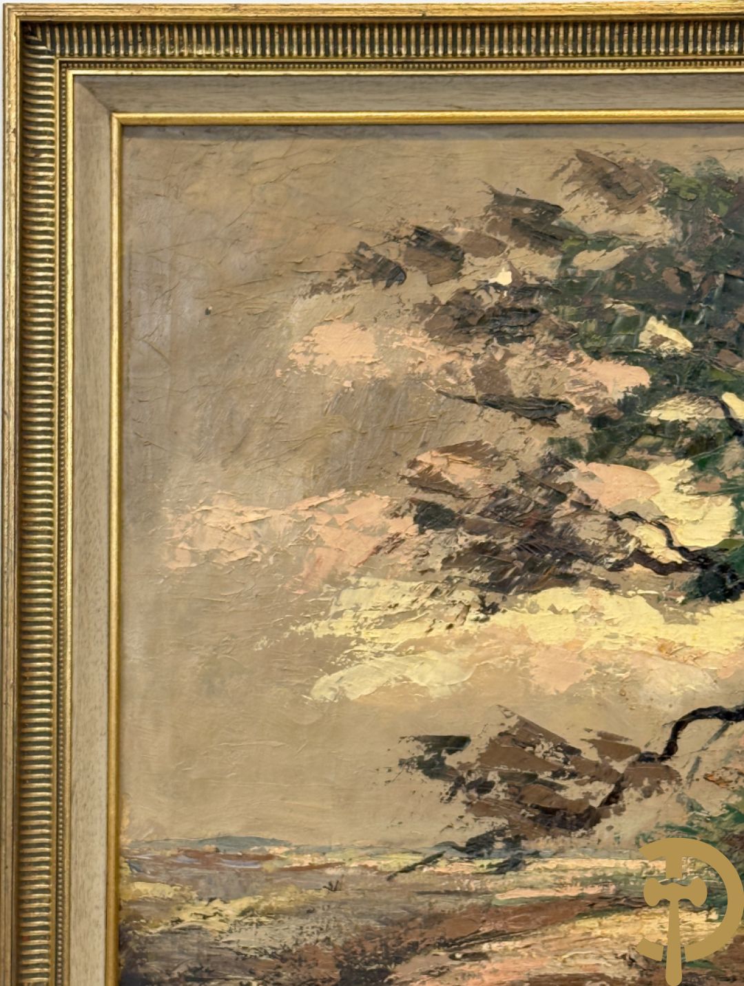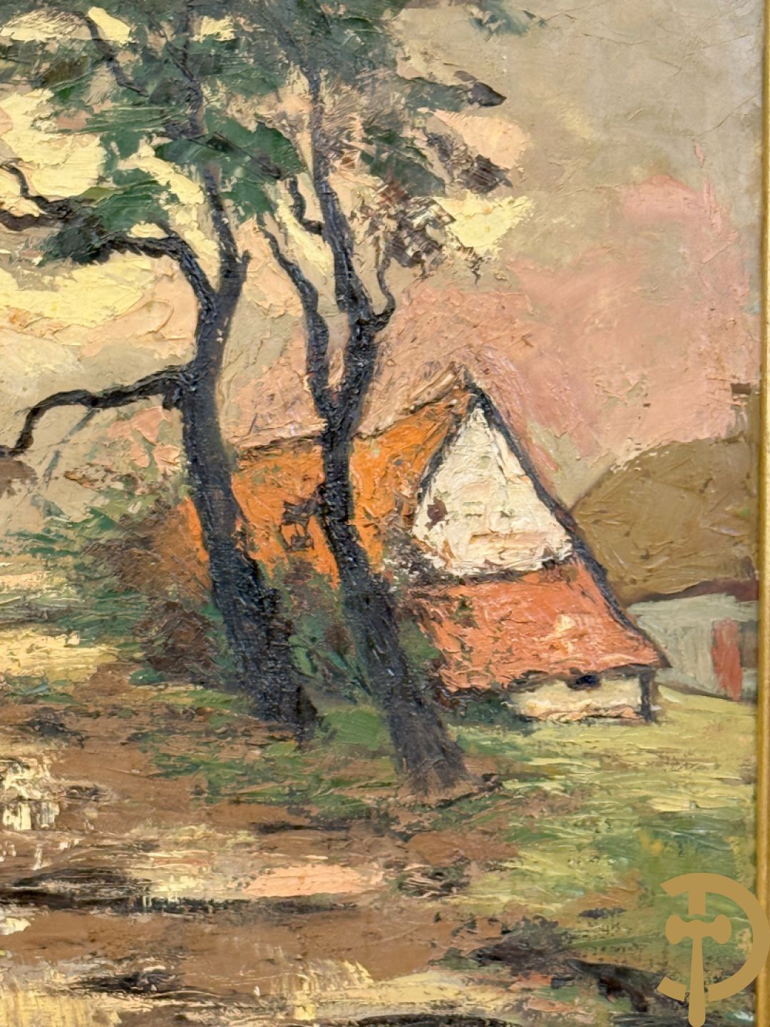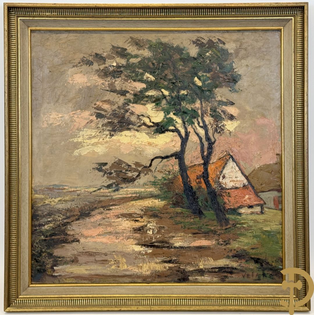 VELGHE getekend 'Rivierzicht met bomen en hoeve' olie op doek