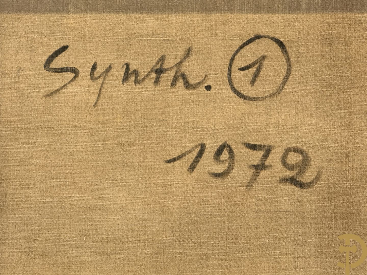 VERMEULEN Noël getekend verso 1972 'Synthese 1' Abstract kleurrijk modern werk olie op doek