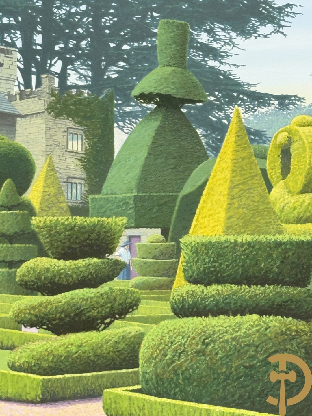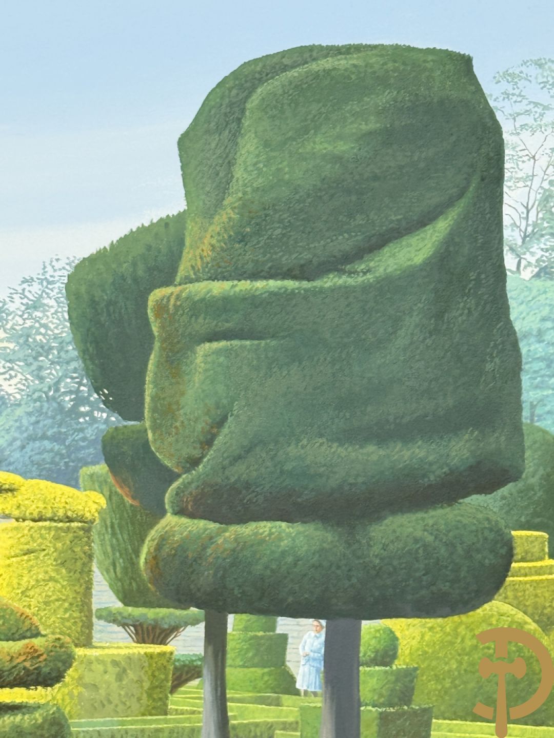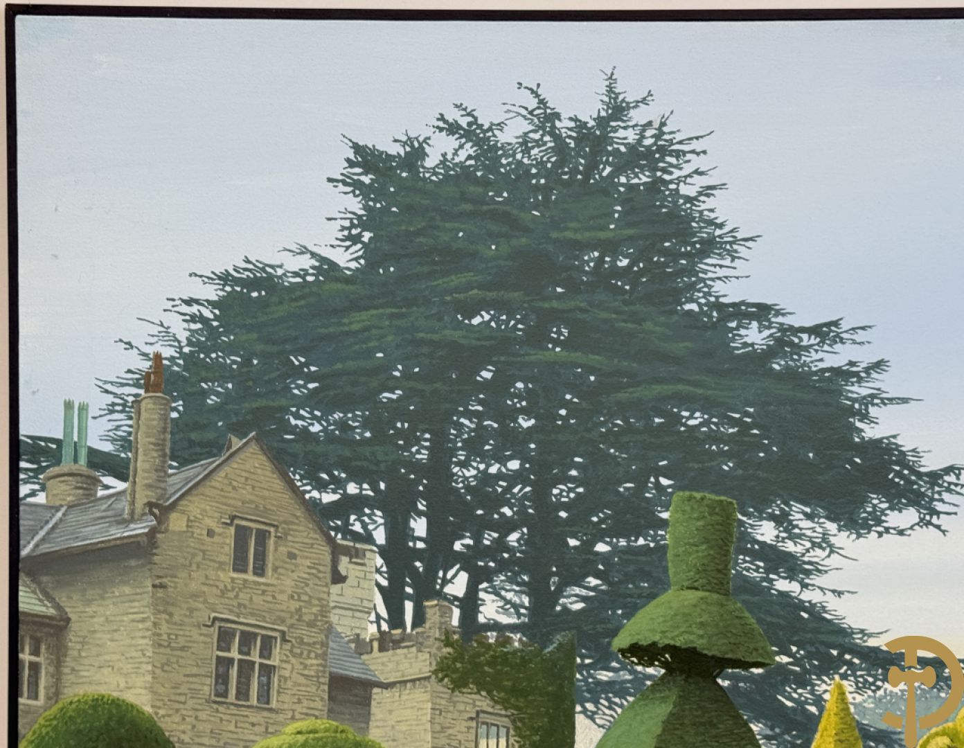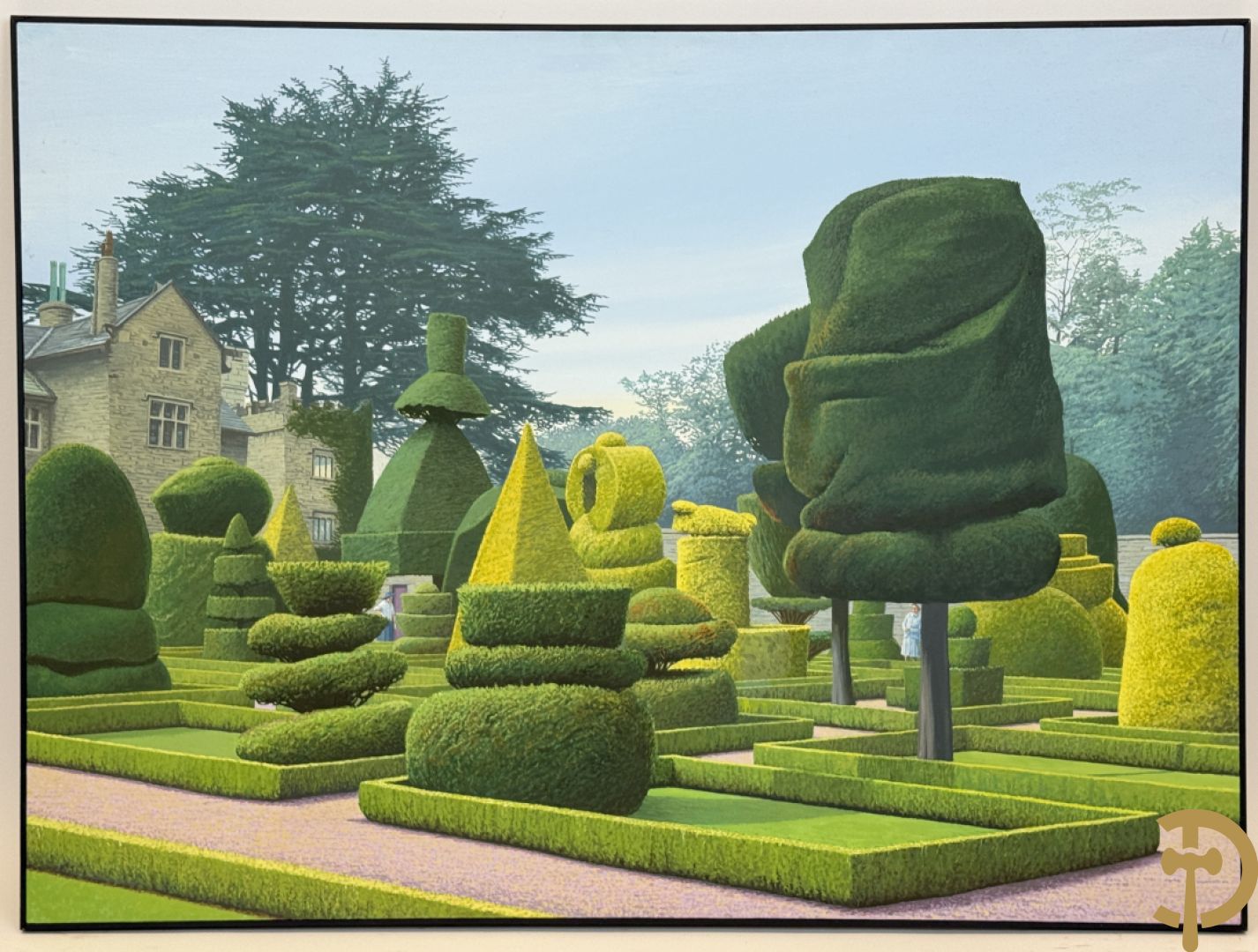 WINTER Gilles getekend '99 'Hyperrealistische Engelse tuin, Levans Hall' acryl op canvas