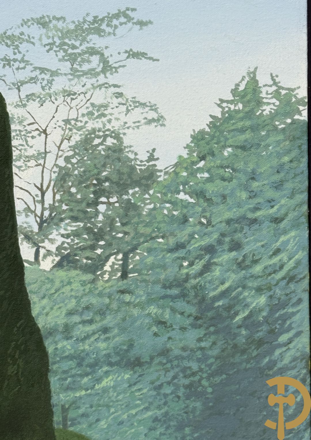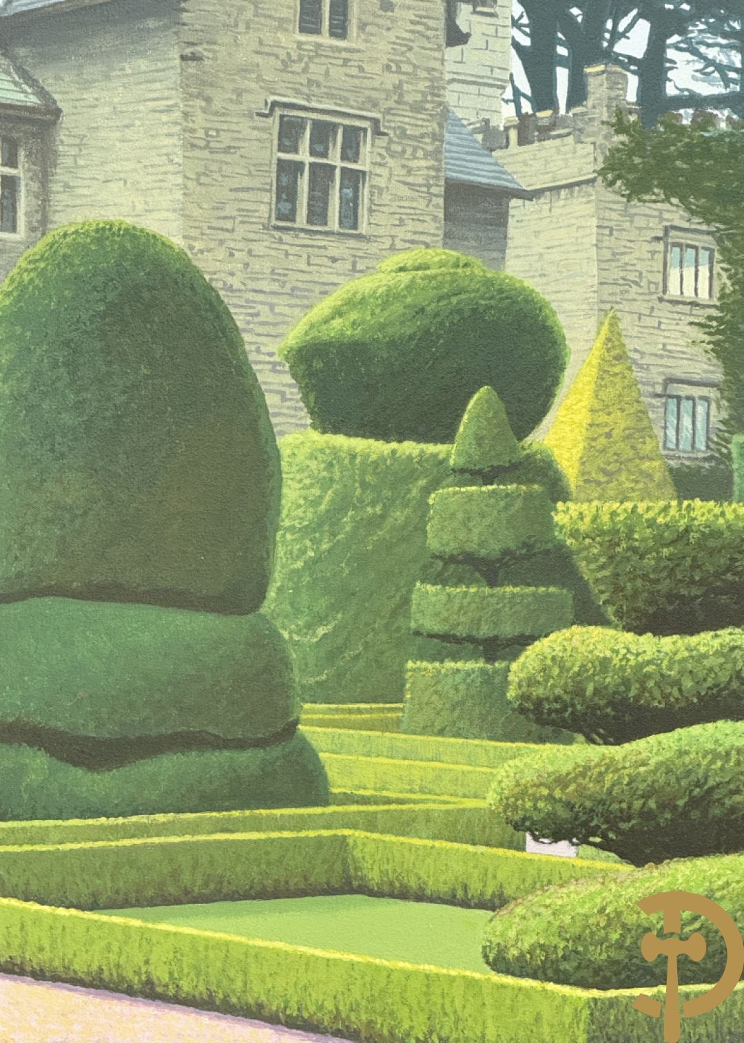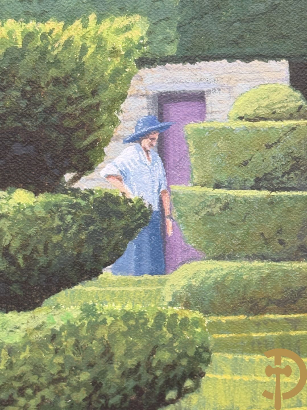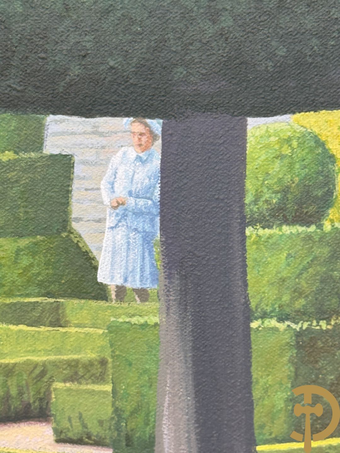 WINTER Gilles getekend '99 'Hyperrealistische Engelse tuin, Levans Hall' acryl op canvas