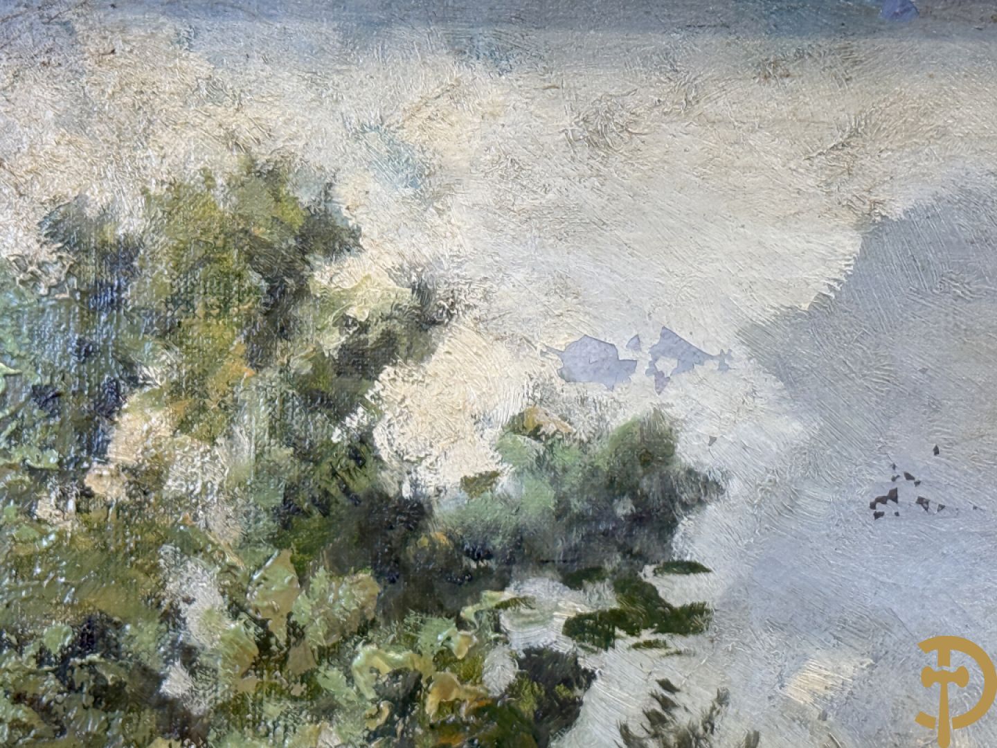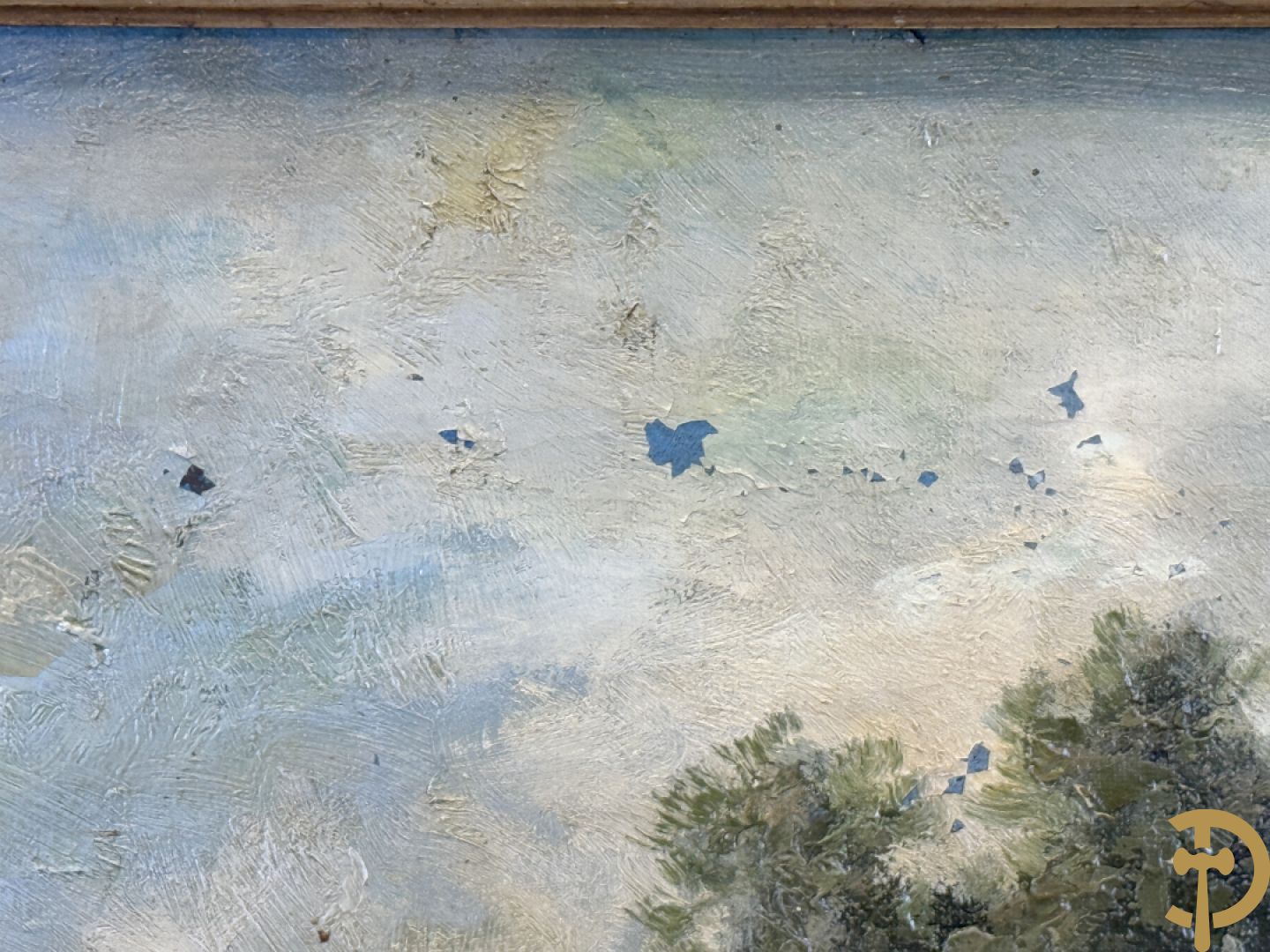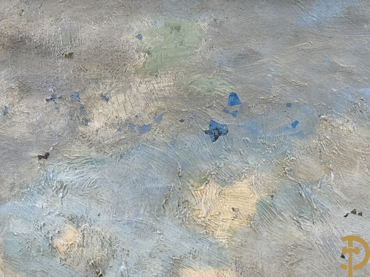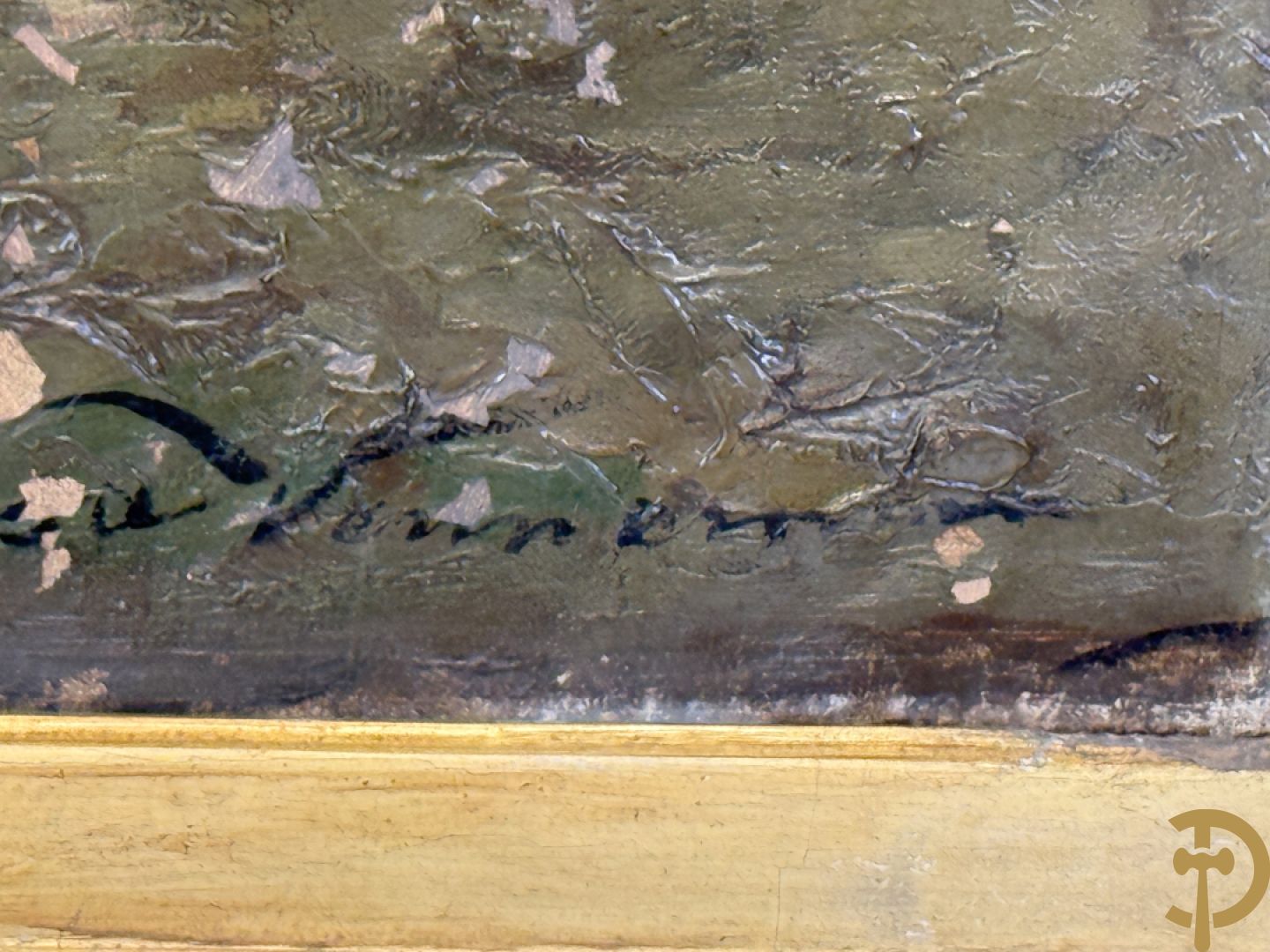 106 x 75 cm. - Afmetingen met kader 140 x 109 cm. - Enkele partijen met verfafbladdering en links boven restauratieEstimated: € 600 - 1000