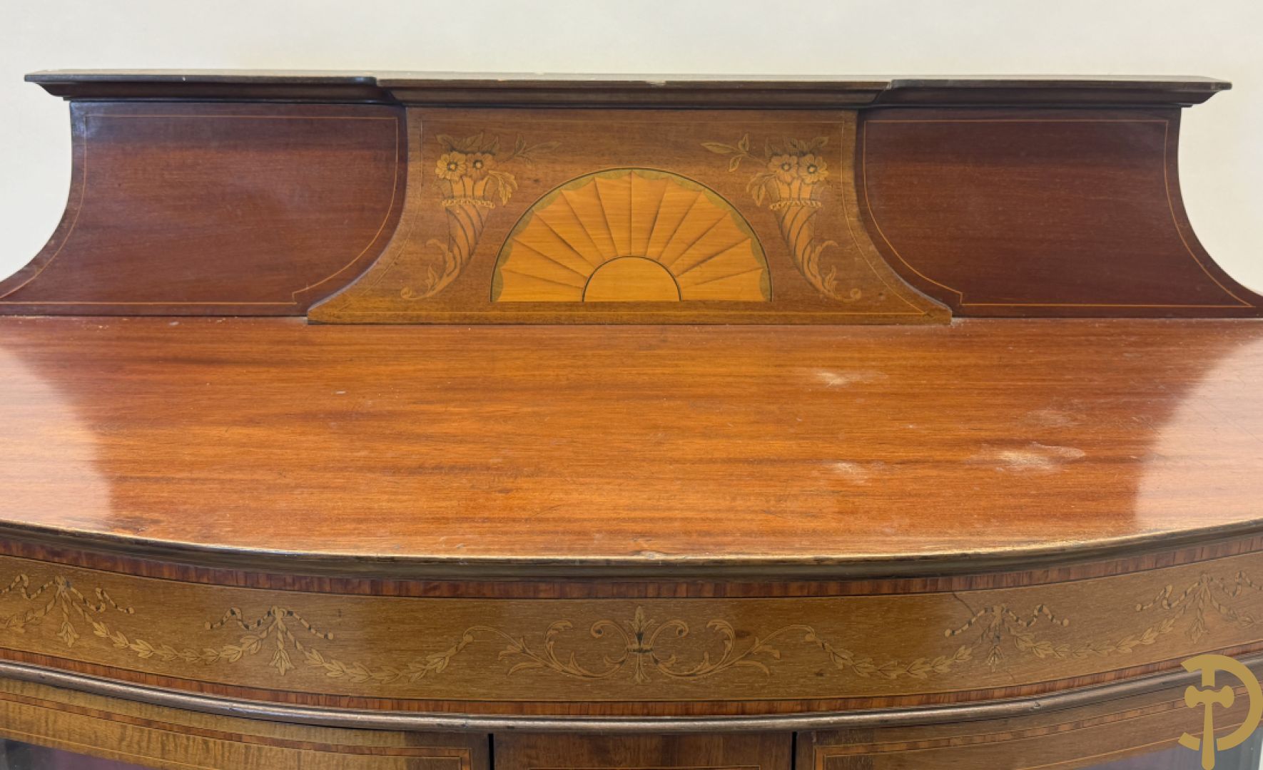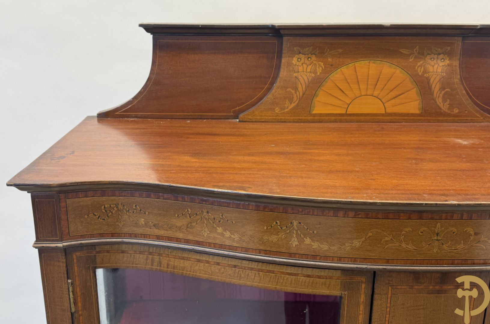 LOT 632 - Notelaren Engelse tweedeursvitrine met marqueterie van bloemenguirlandes op voluutvormige poten