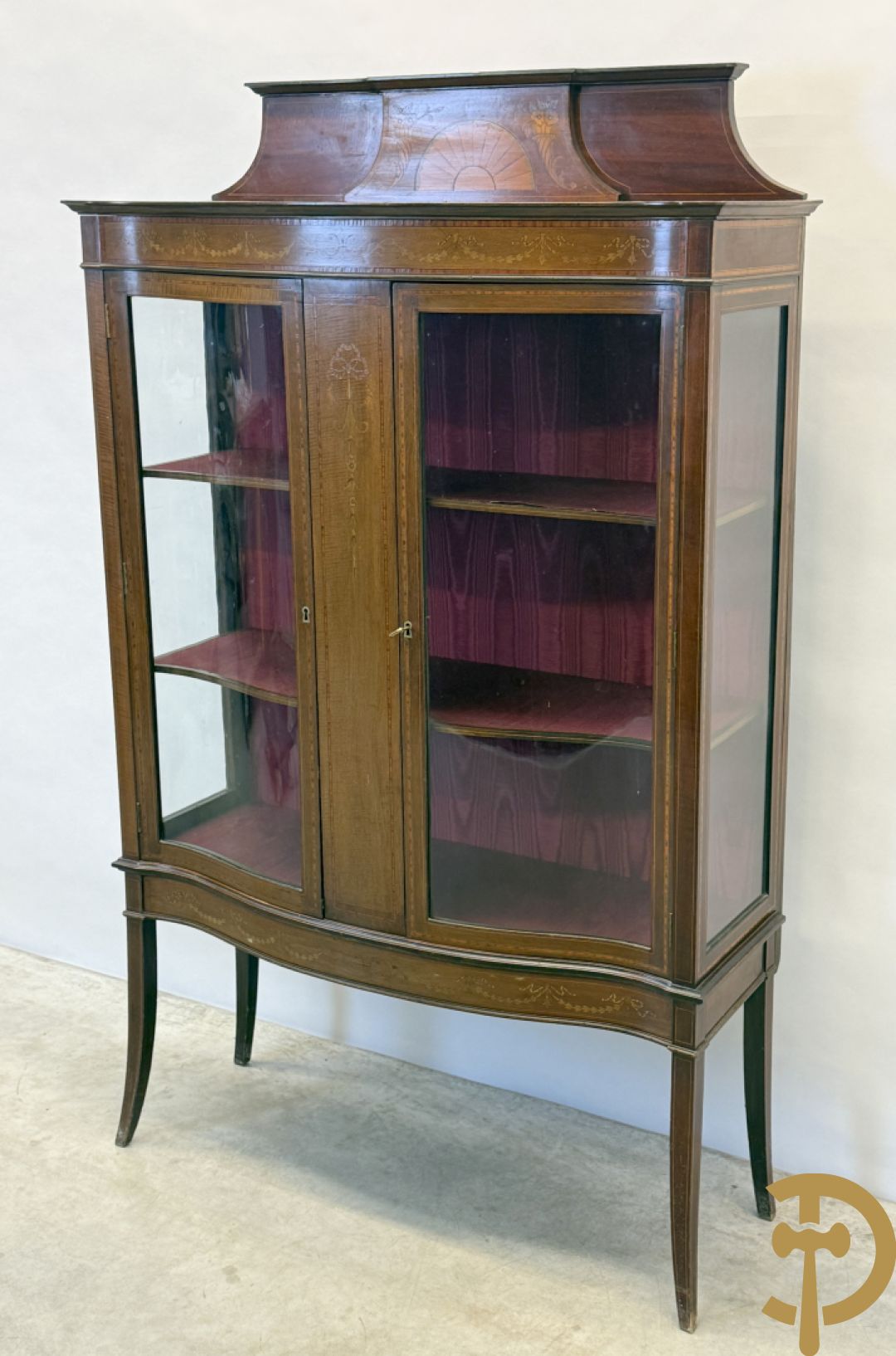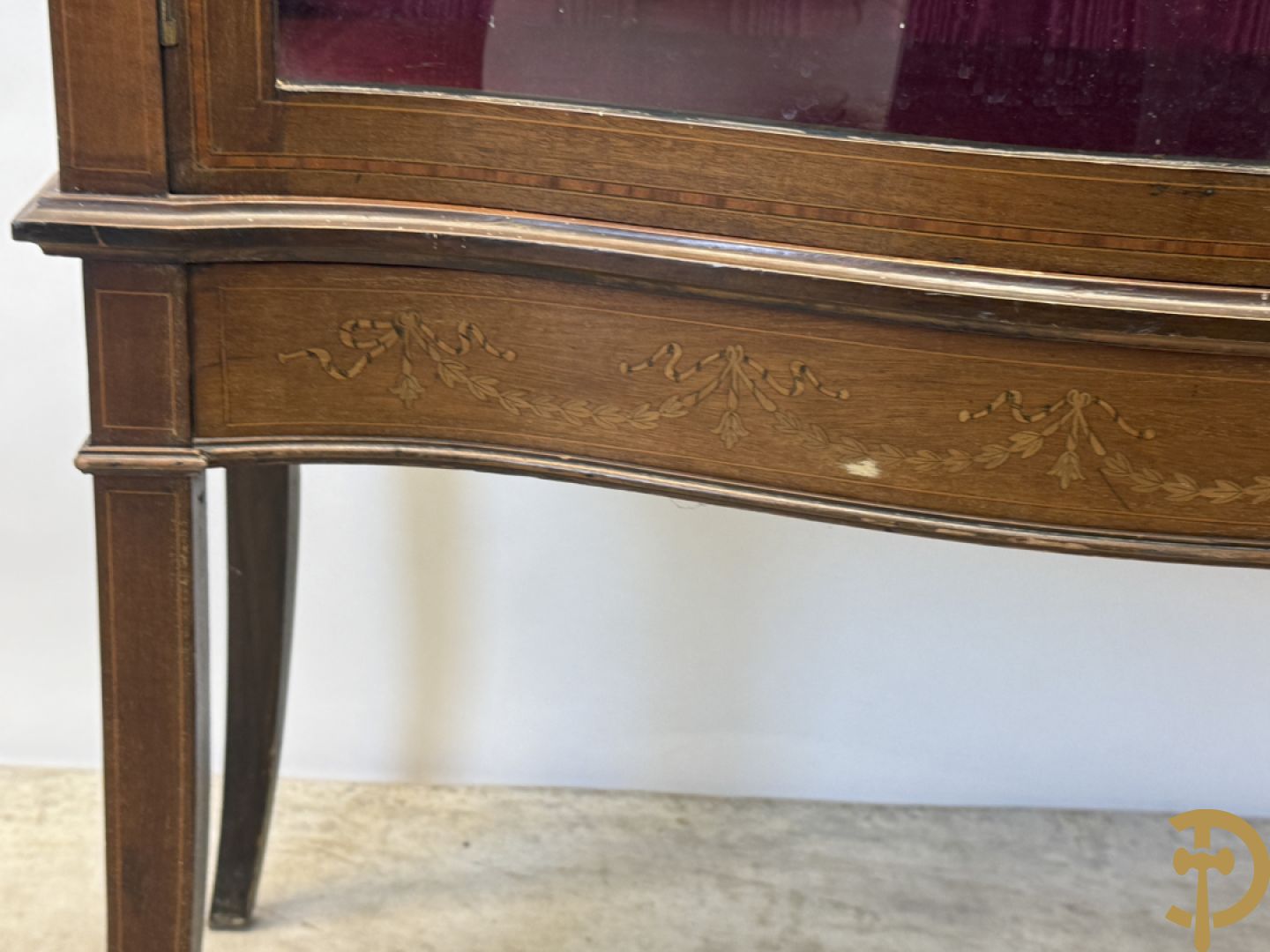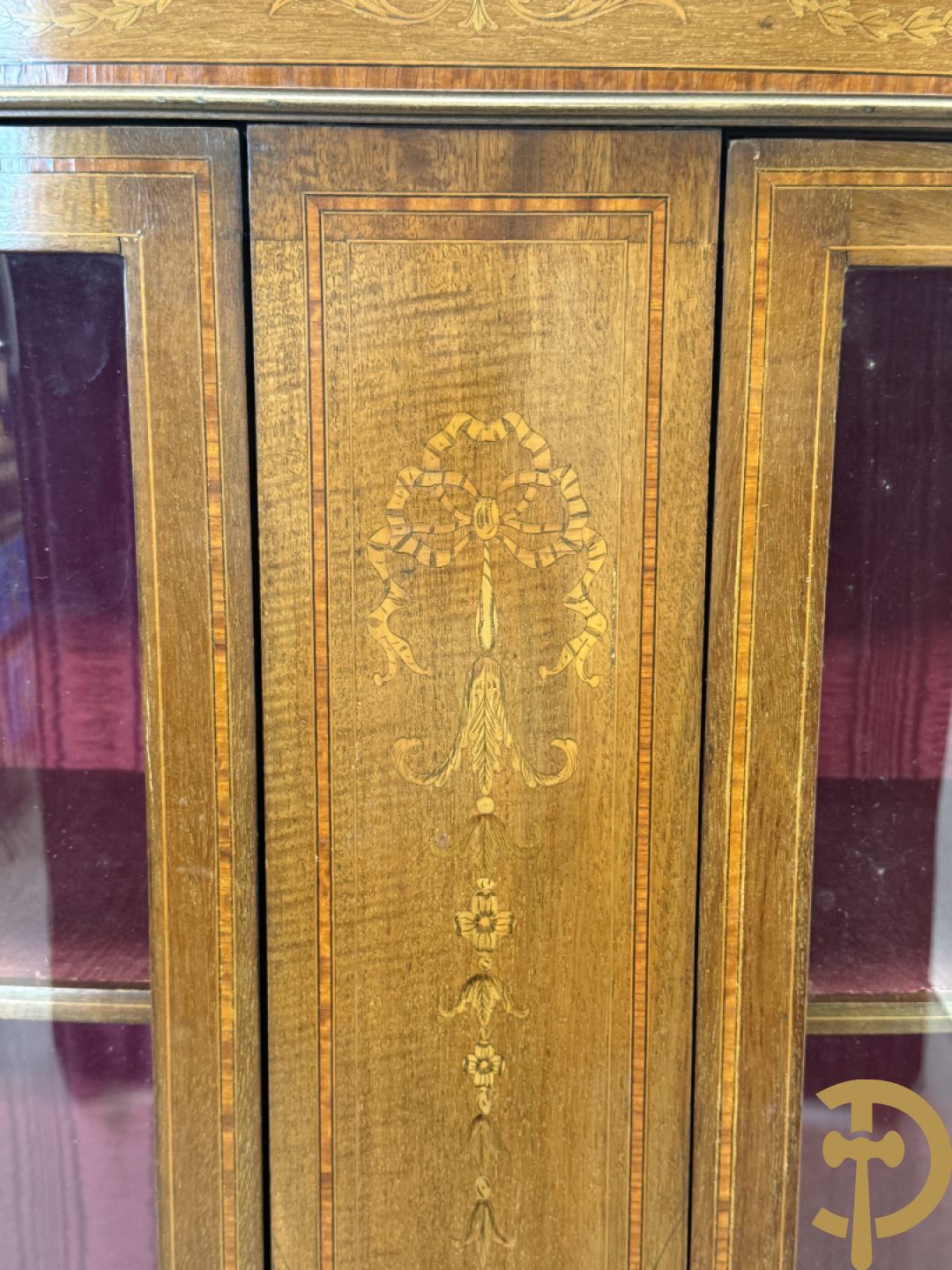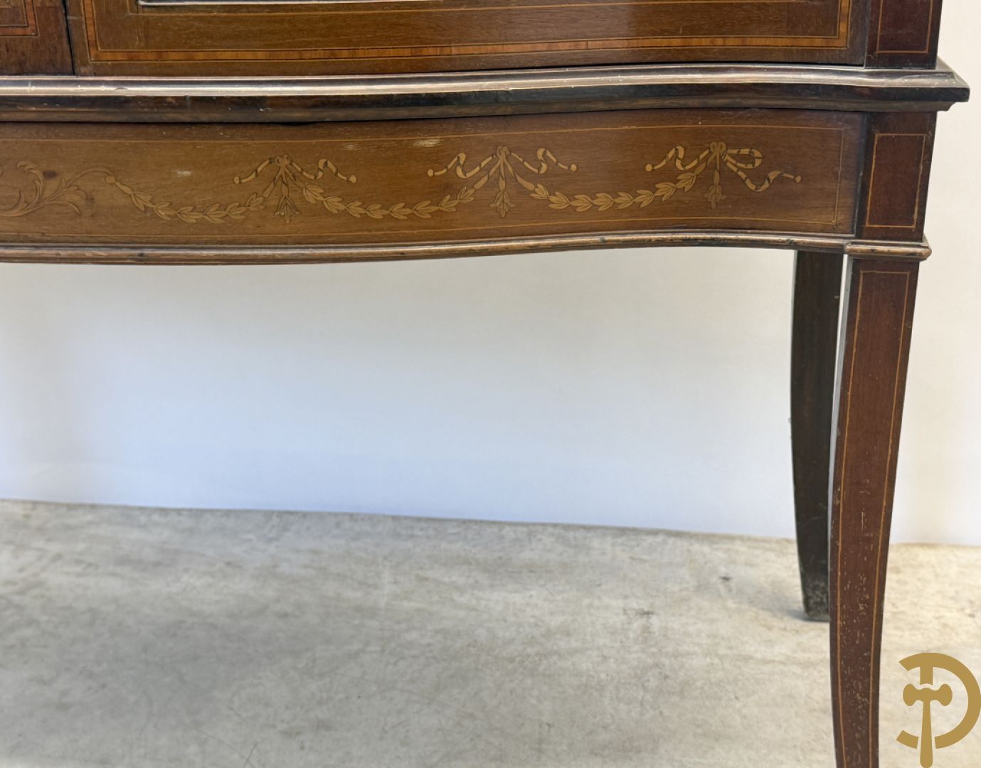 Notelaren Engelse tweedeursvitrine met marqueterie van bloemenguirlandes op voluutvormige poten