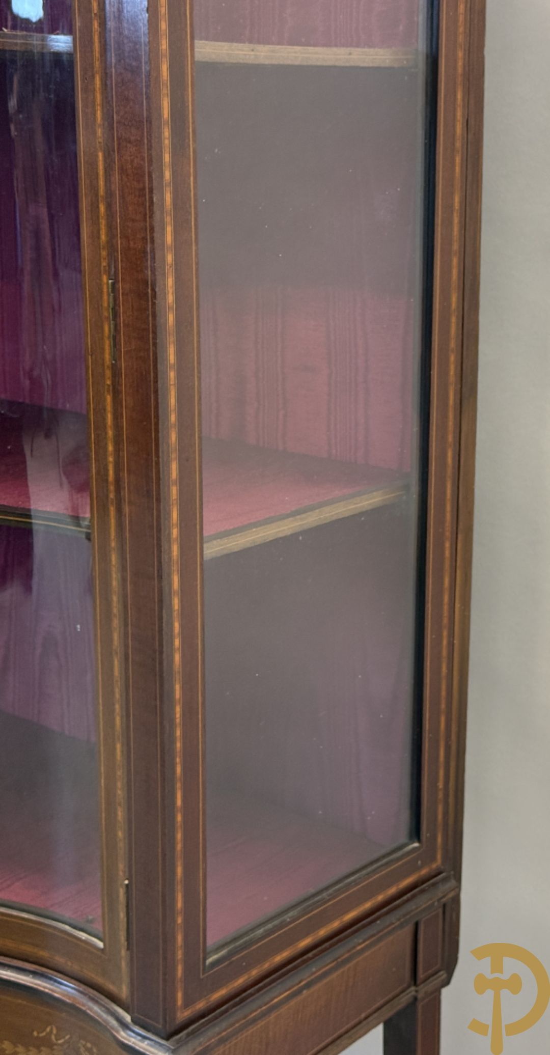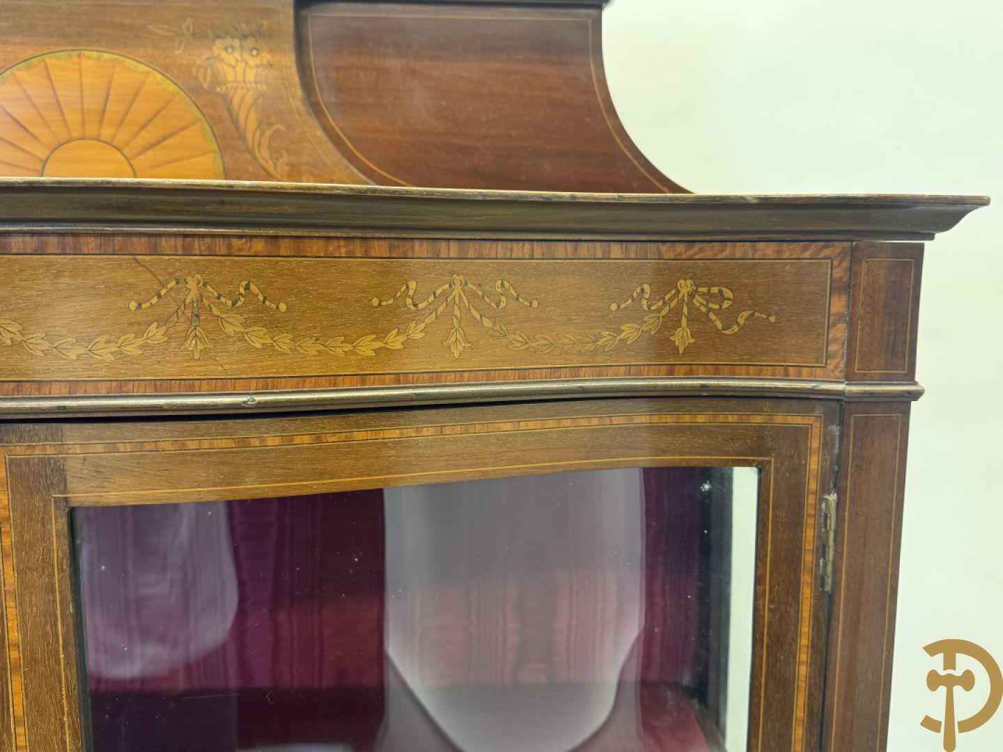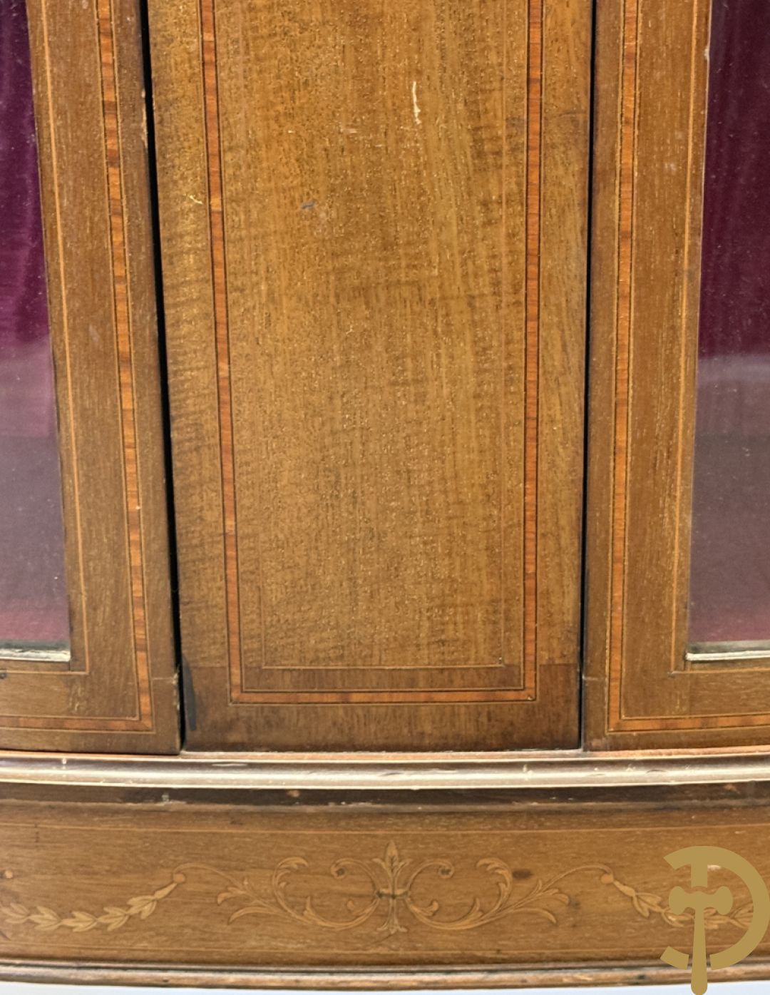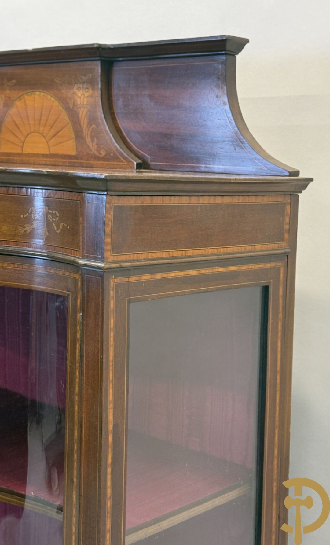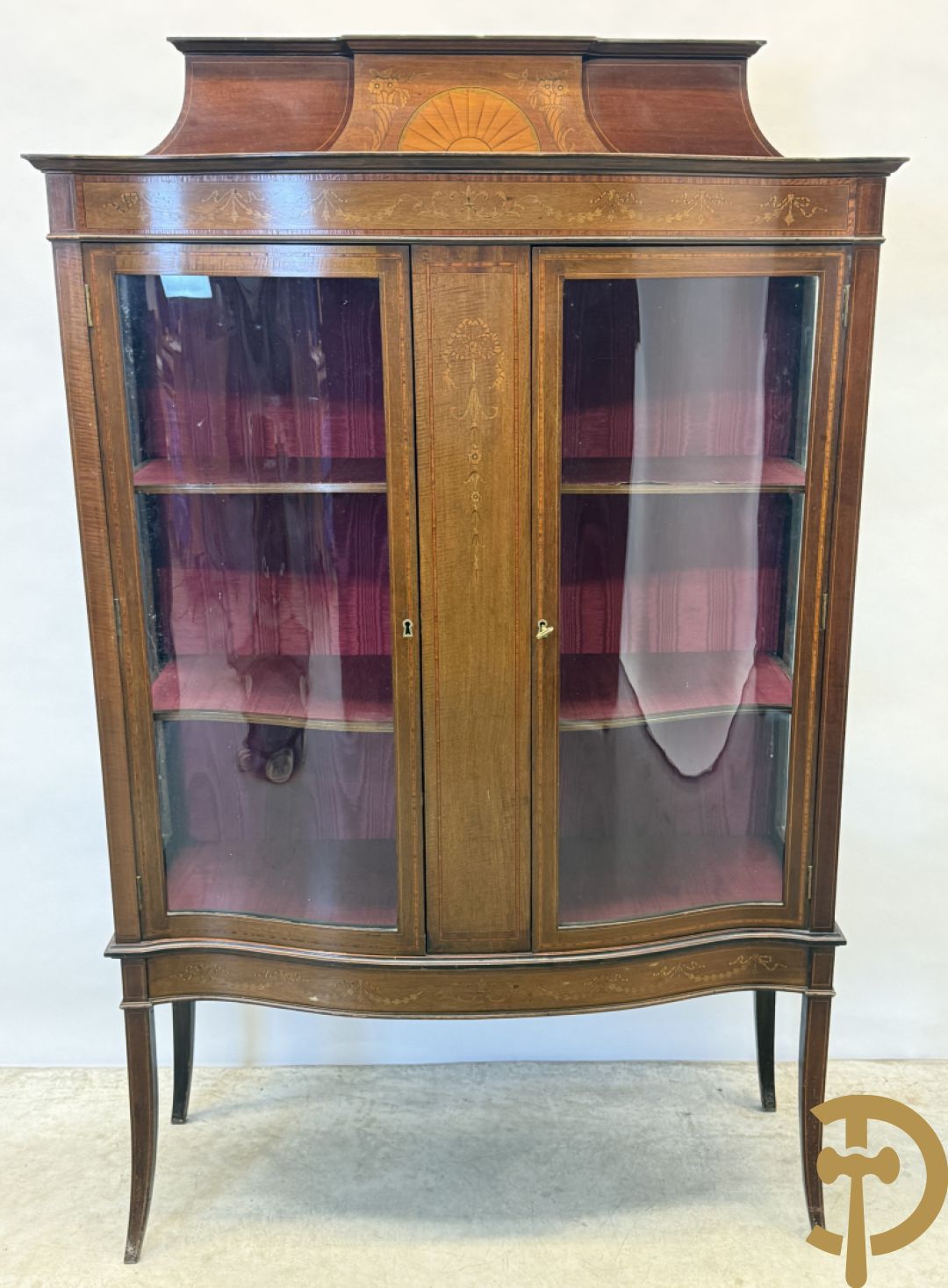 Notelaren Engelse tweedeursvitrine met marqueterie van bloemenguirlandes op voluutvormige poten